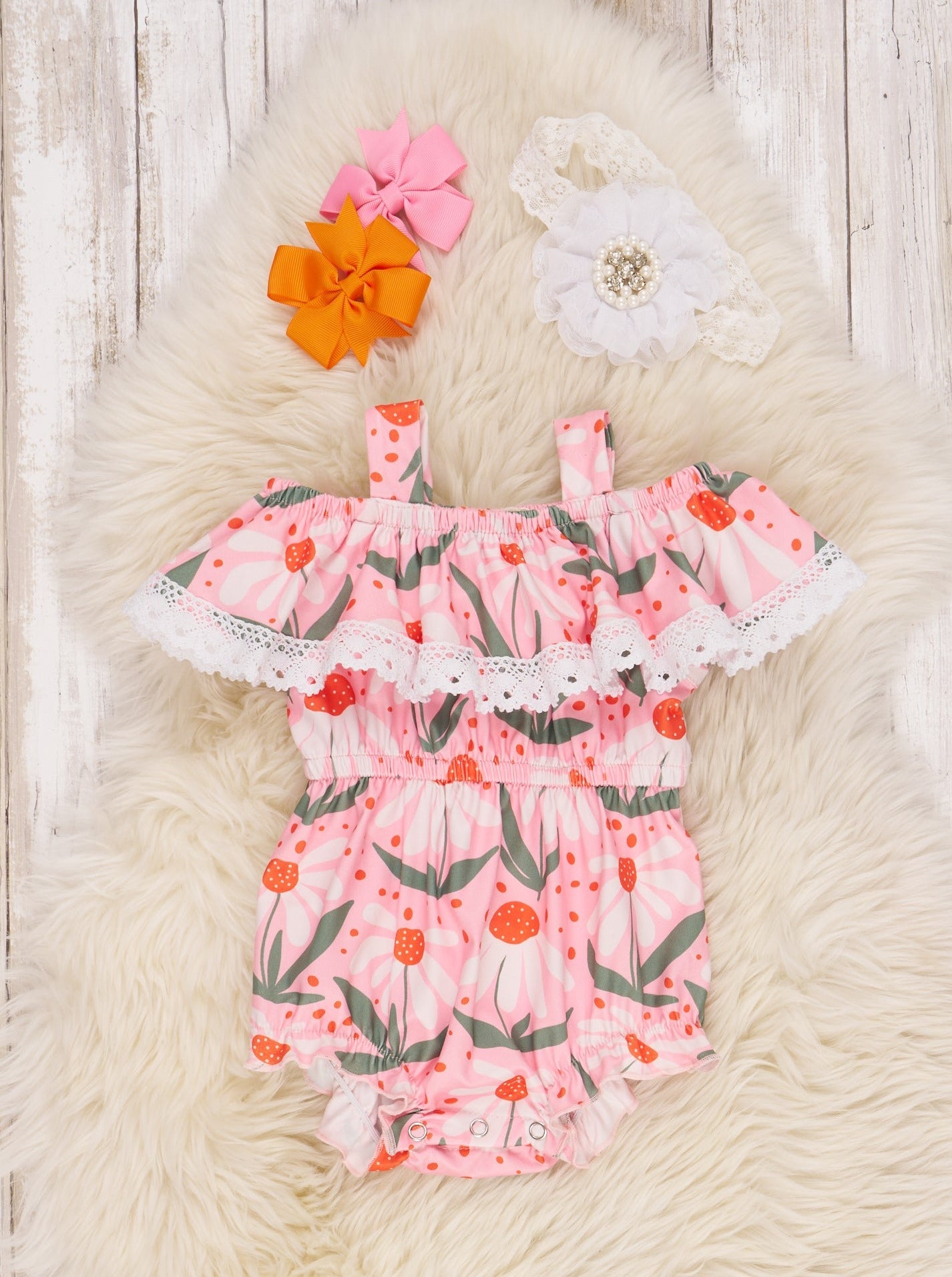 Pink Summer Daisy Ruffle Romper