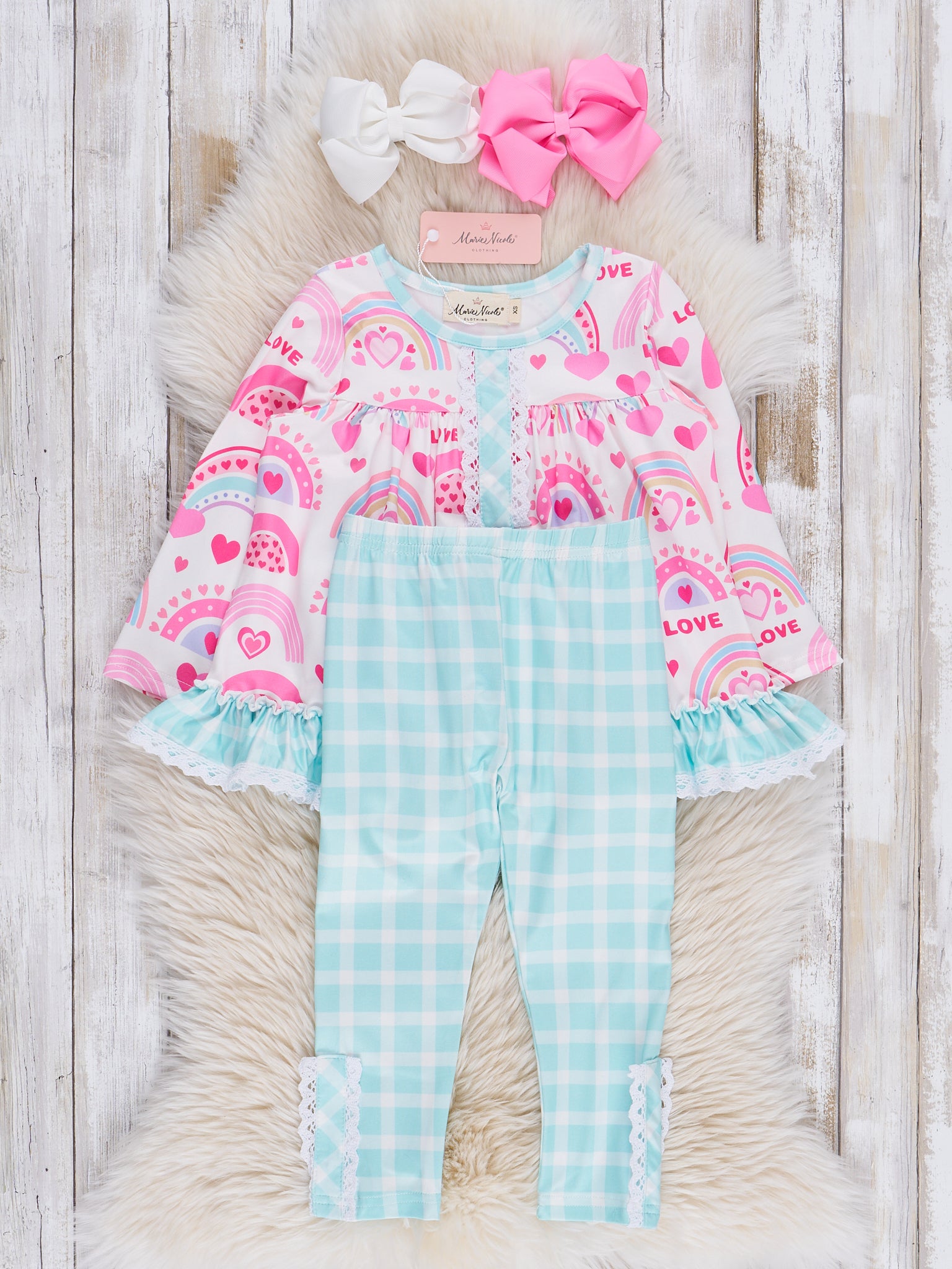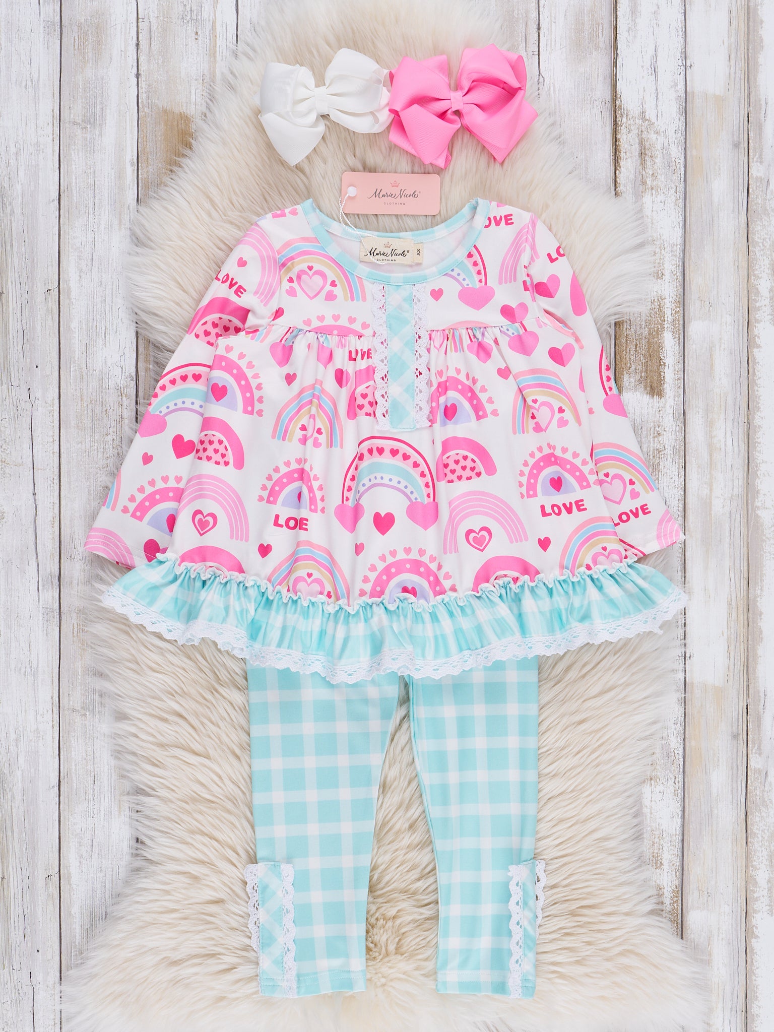 Pink & Turquoise Rainbow Hearts Ruffle Outfit
