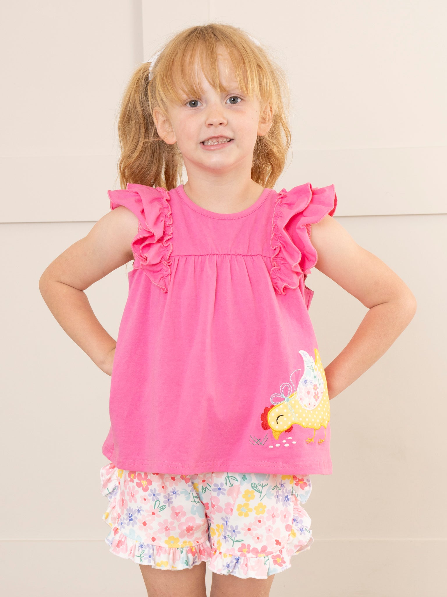 Pink & Yellow Embroidered Pecking Hen Outfit