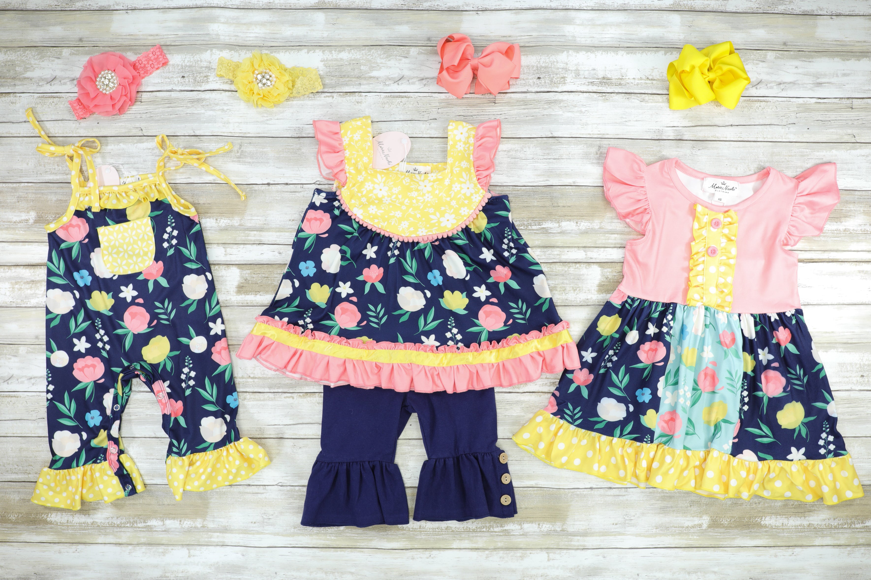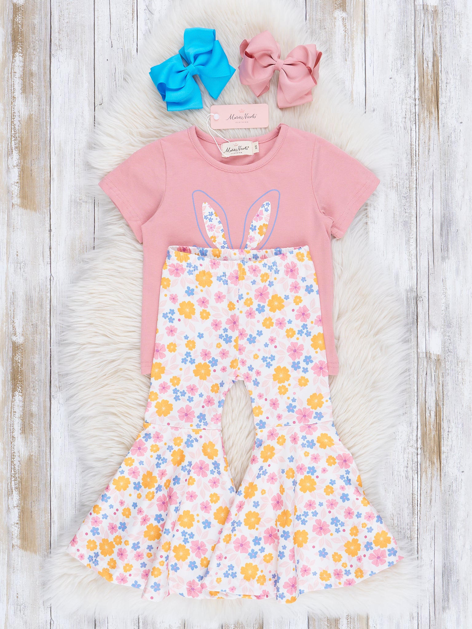 Pink & Yellow Florals Bunny Bell Bottom Outfit