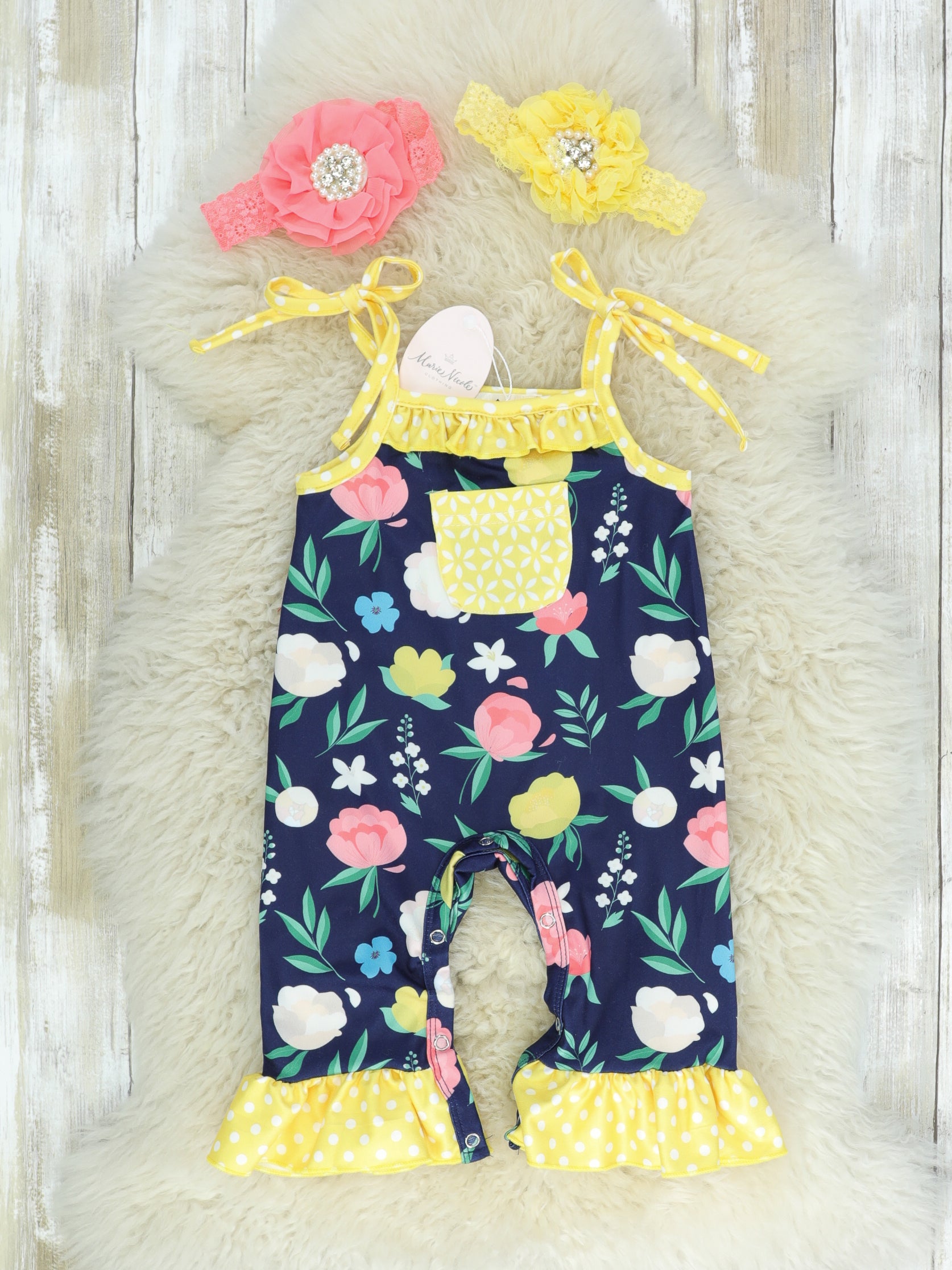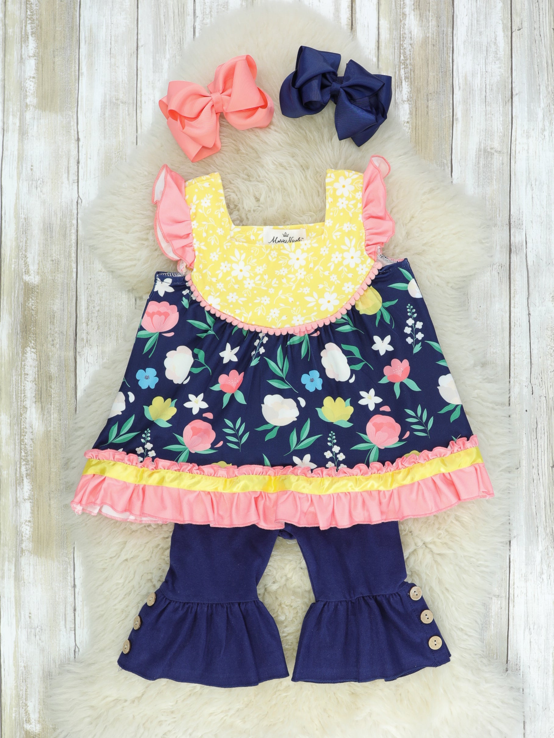 Pink & Yellow Floral Tank Ruffle Capri Outfit