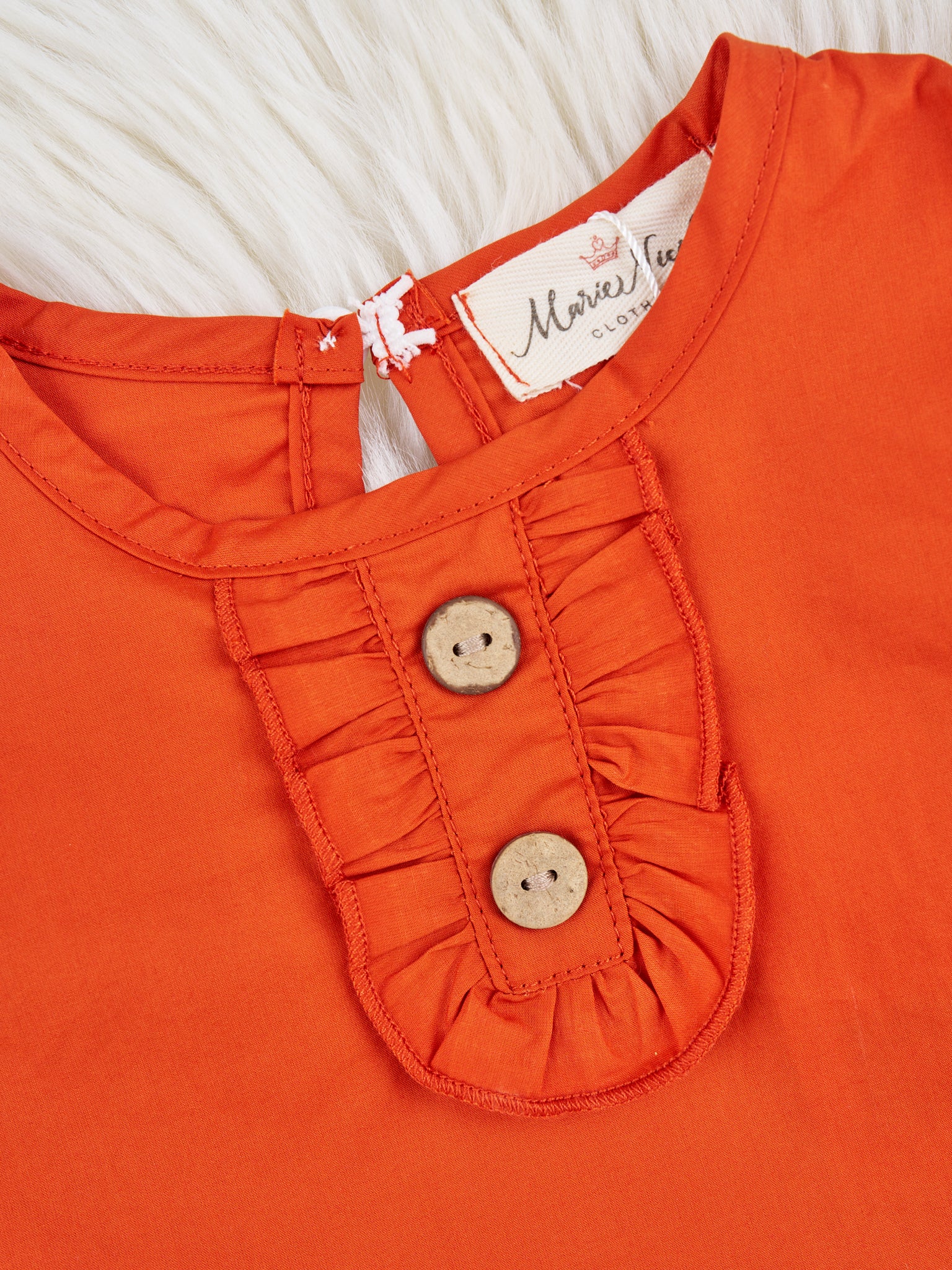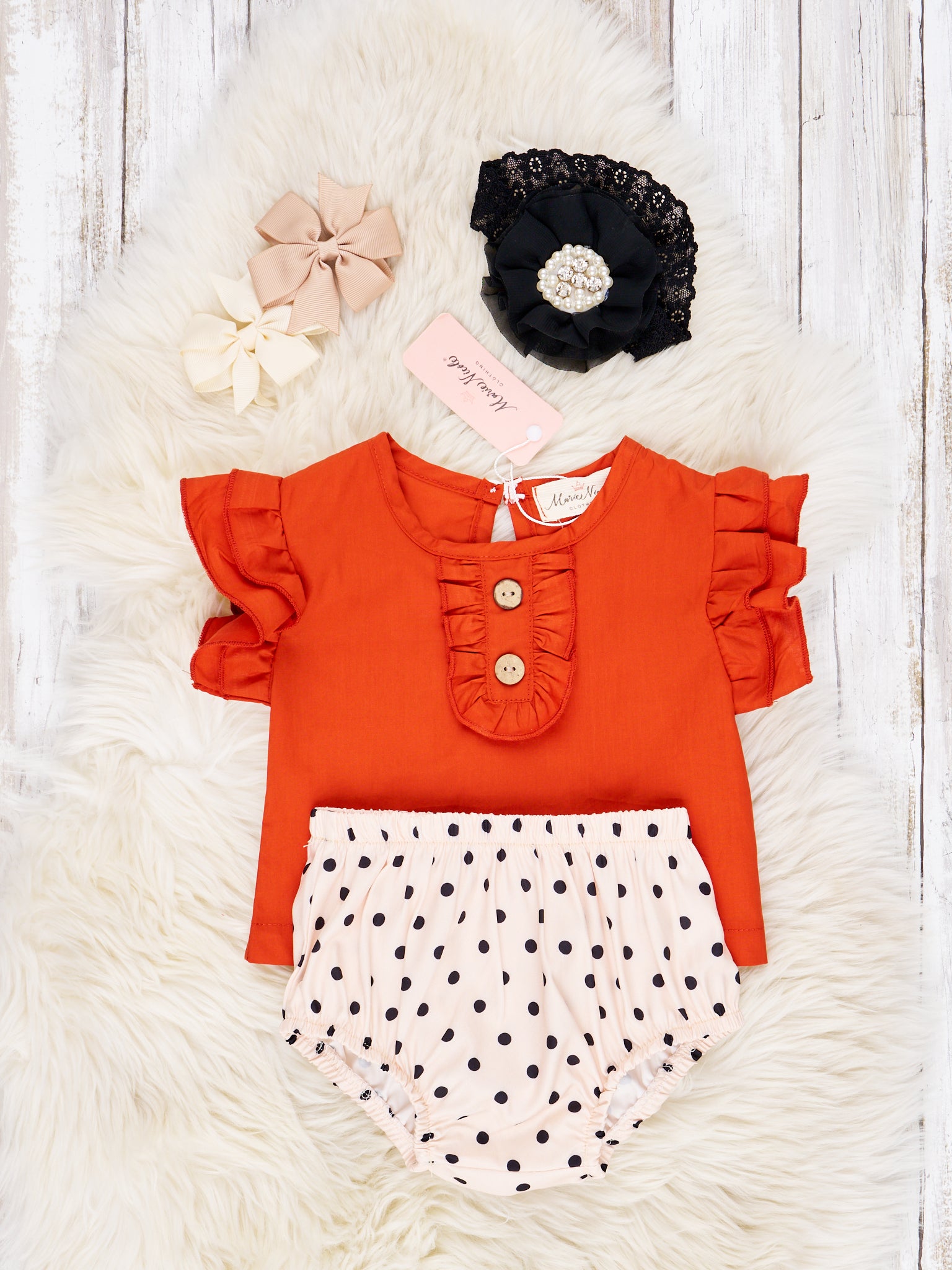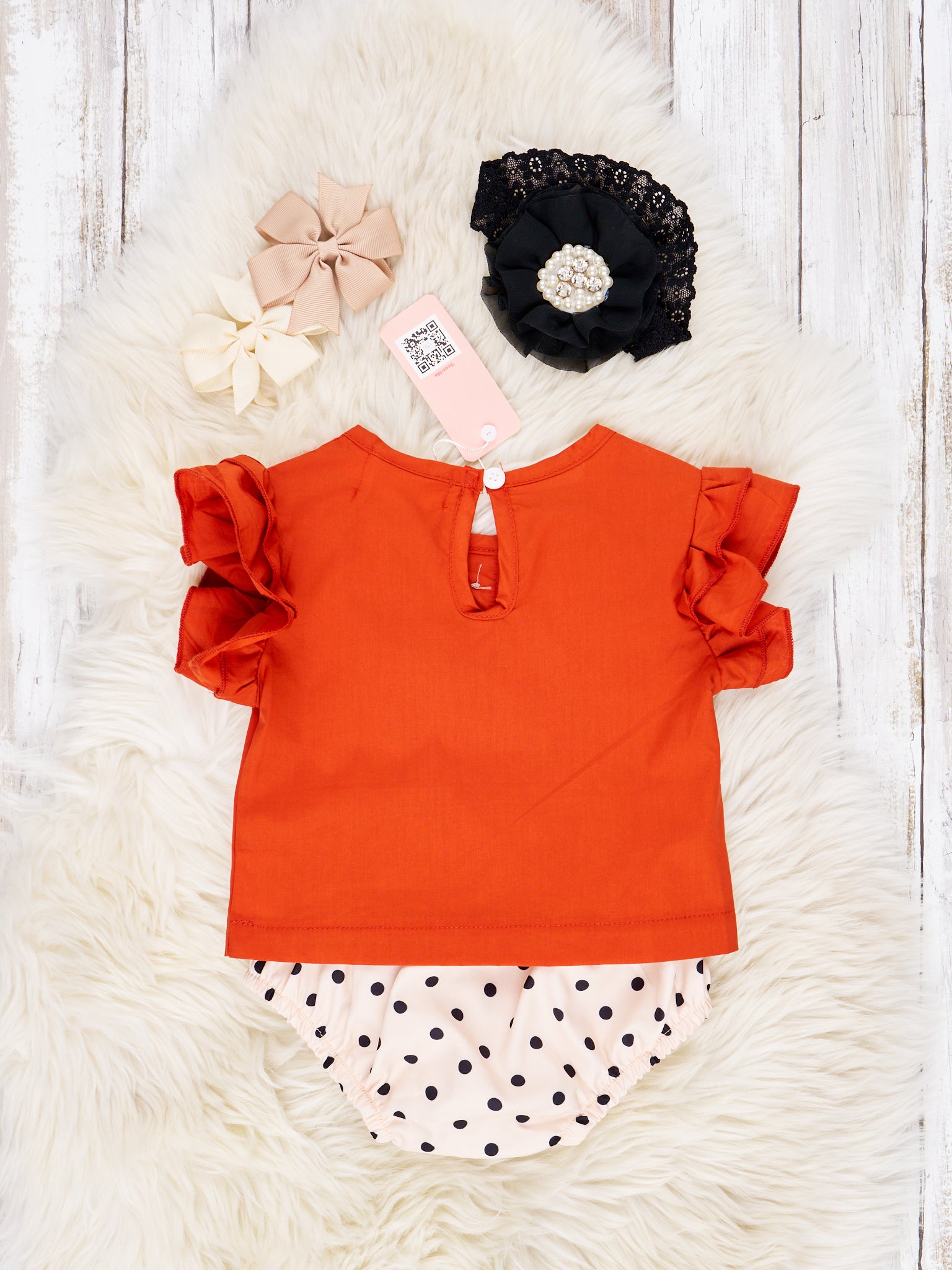 Burnt Orange Ruffle Top & Polka Dot Bloomers Outfit