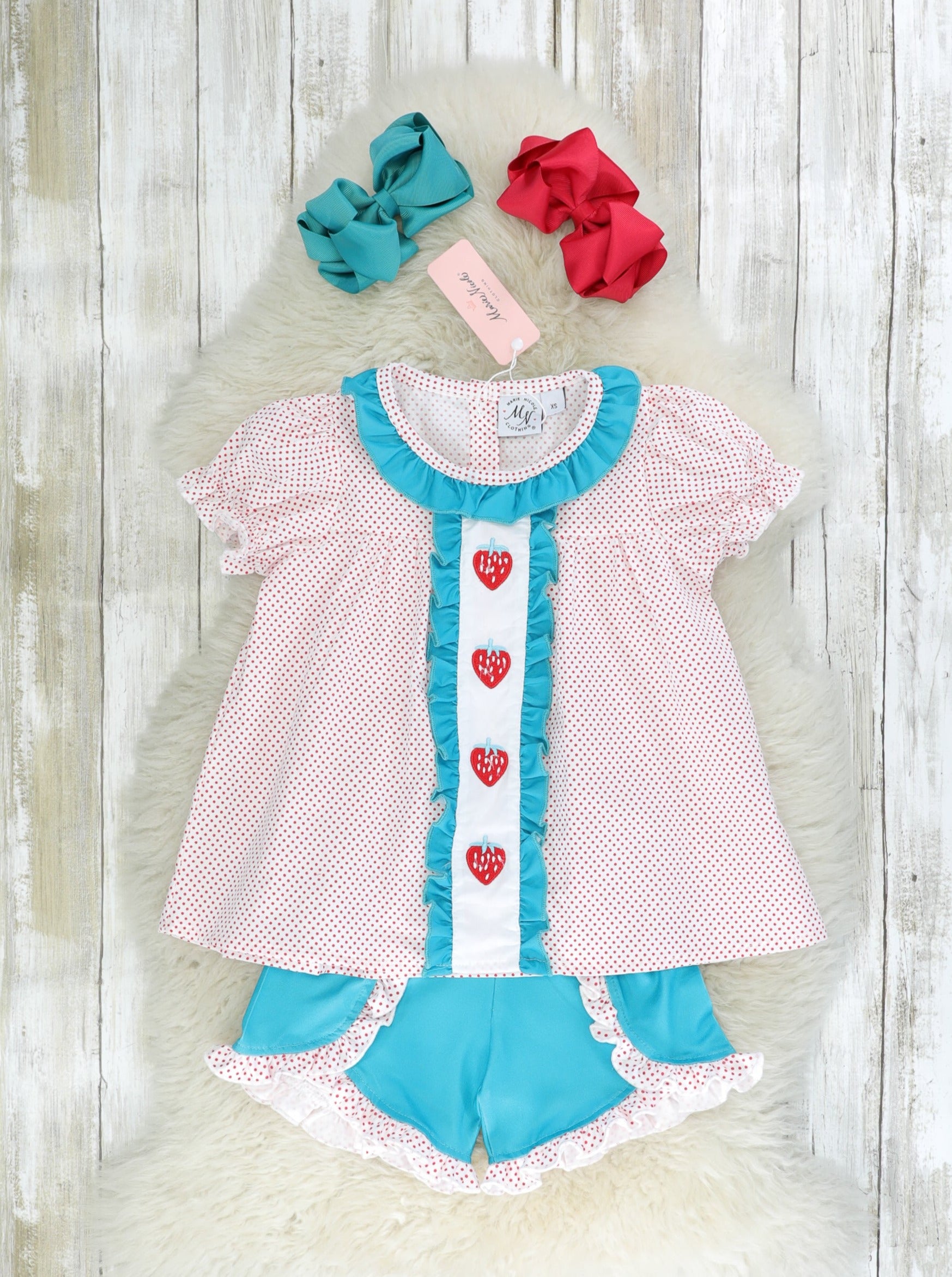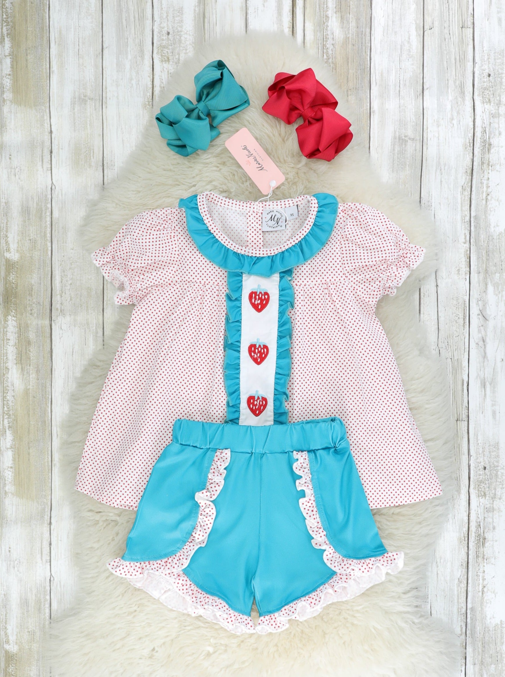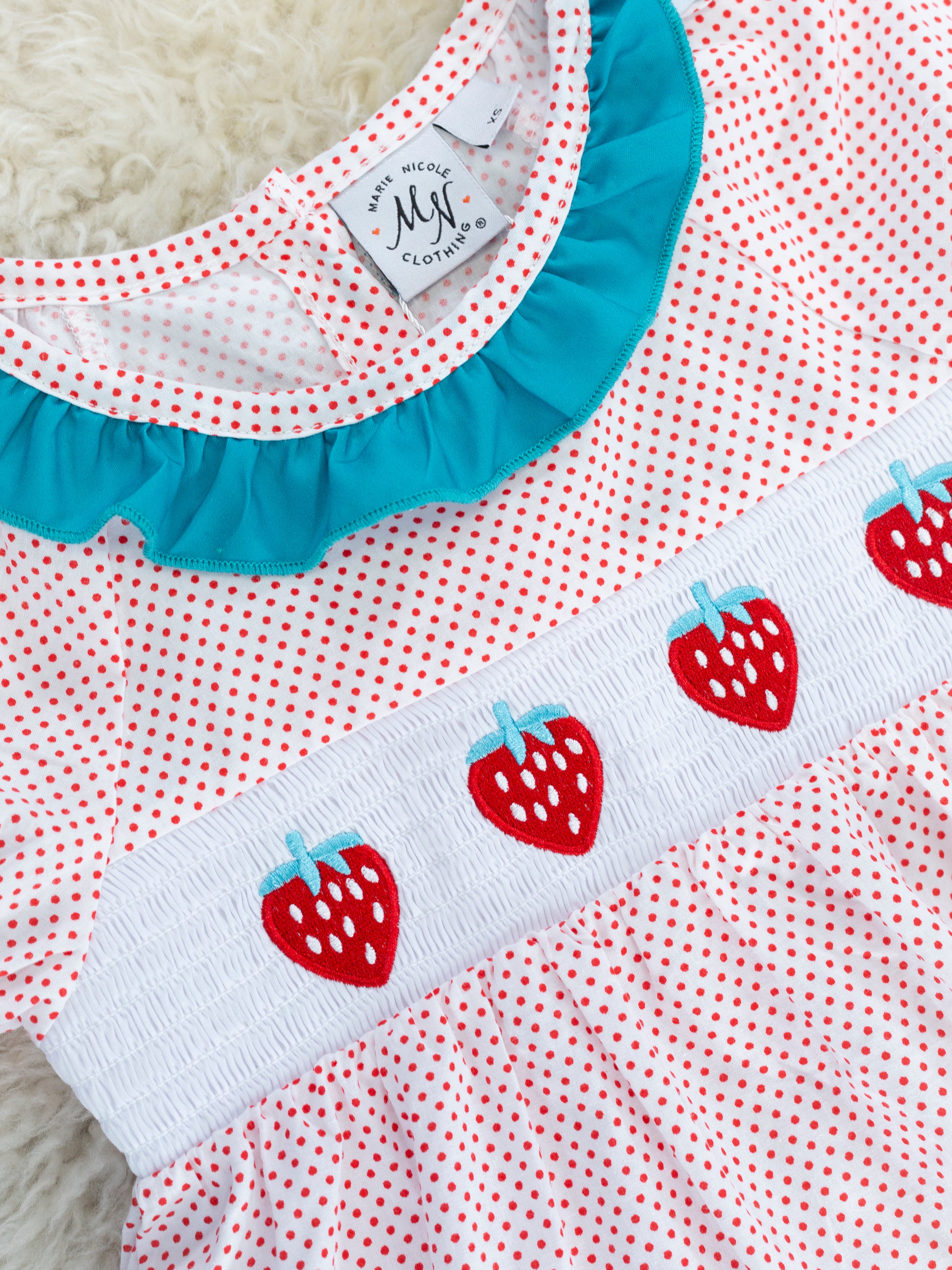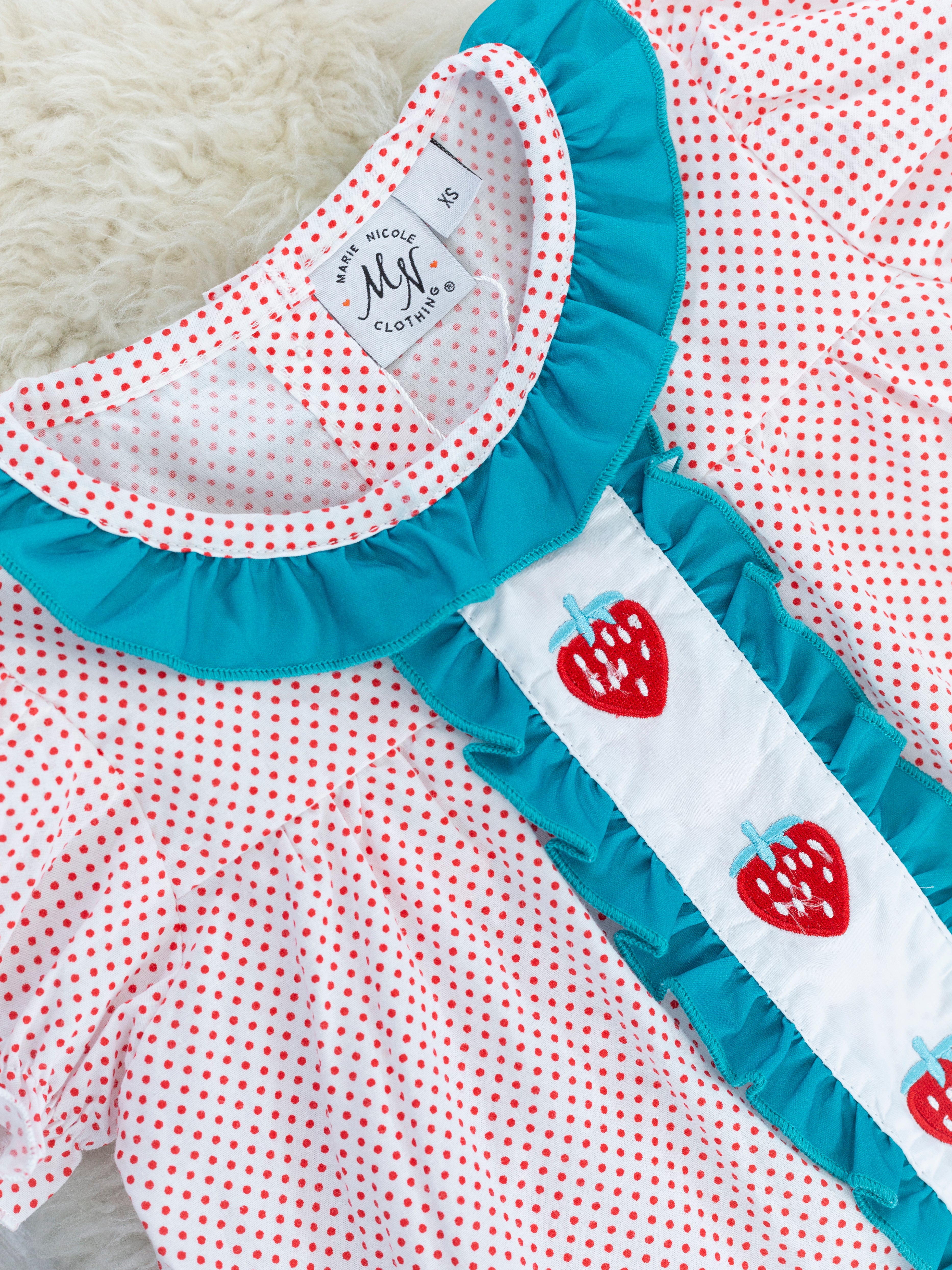 Polka Dot Smocked Strawberry Ruffle Outfit