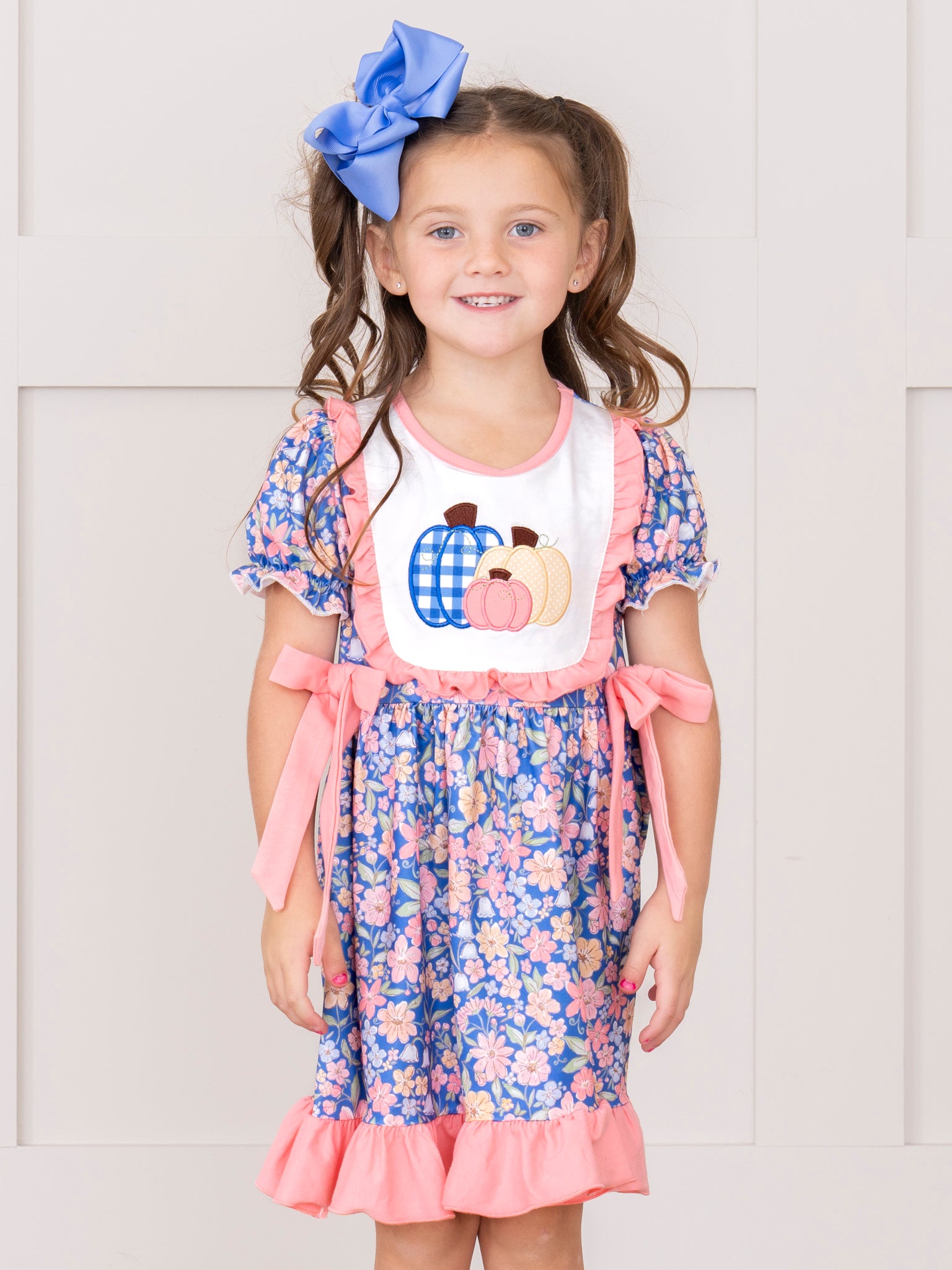 Pumpkin Botanicals Embroidered Bow Ruffle Dress