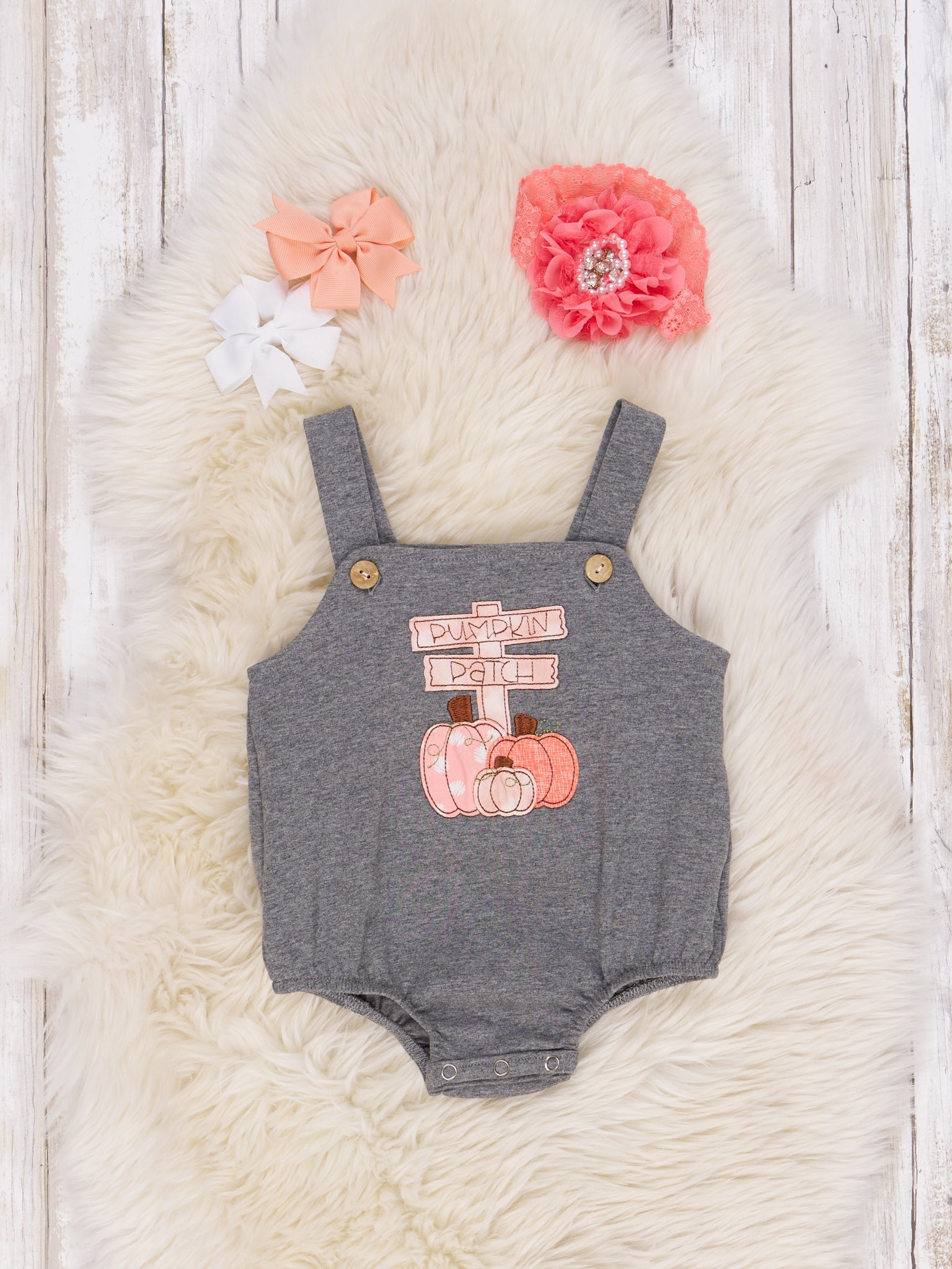Orange & Grey Pumpkin Patch Bubble Overall Set