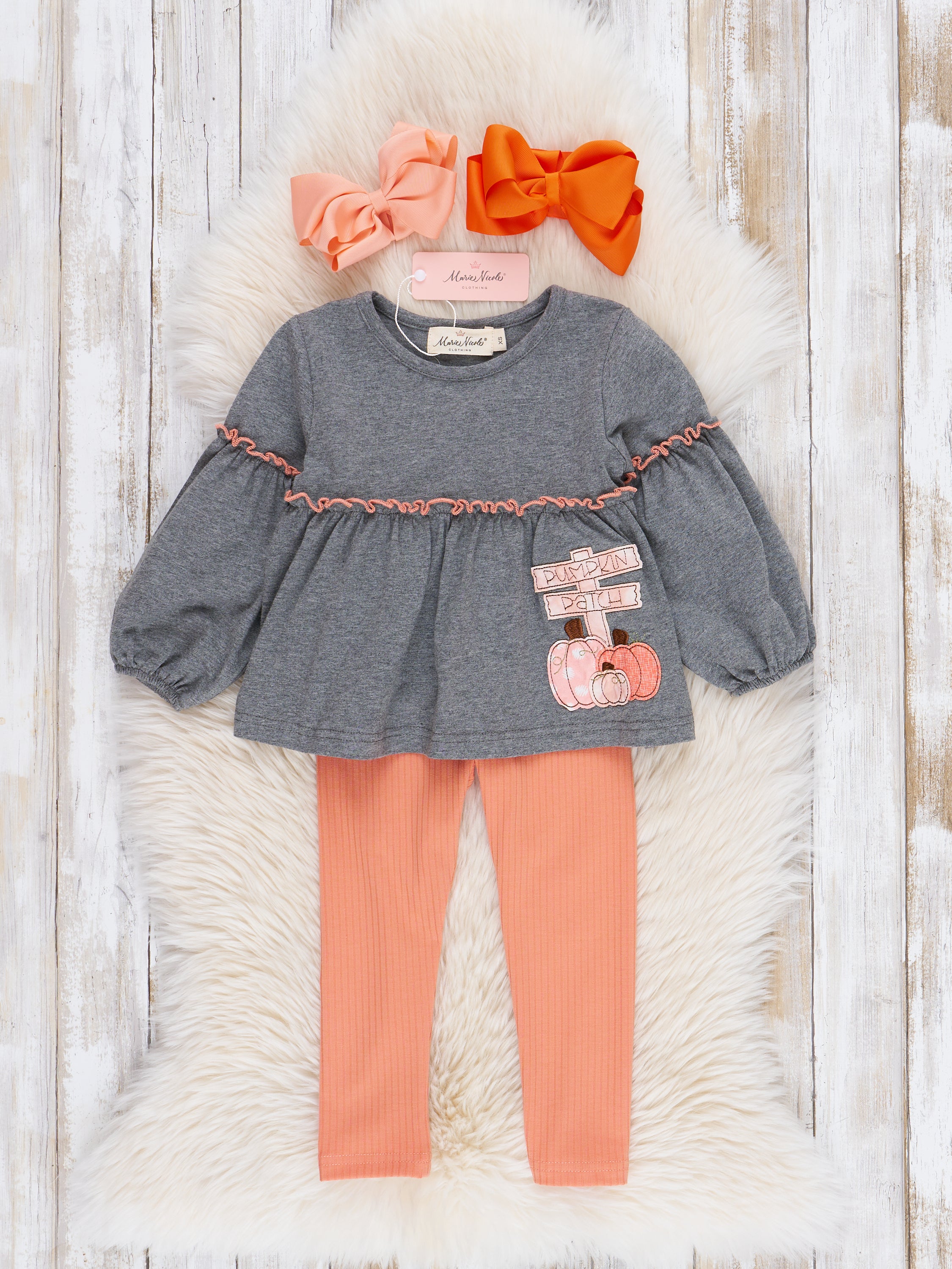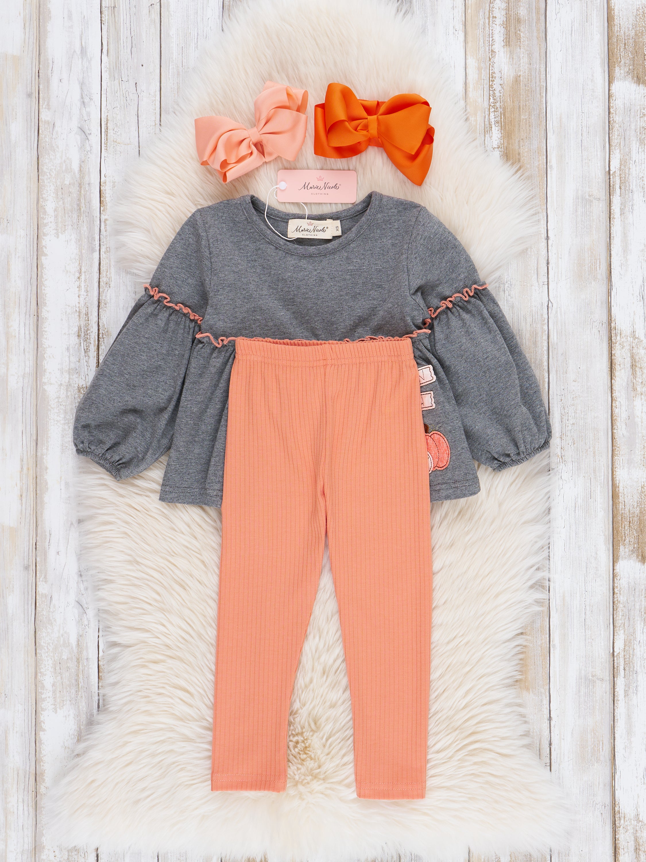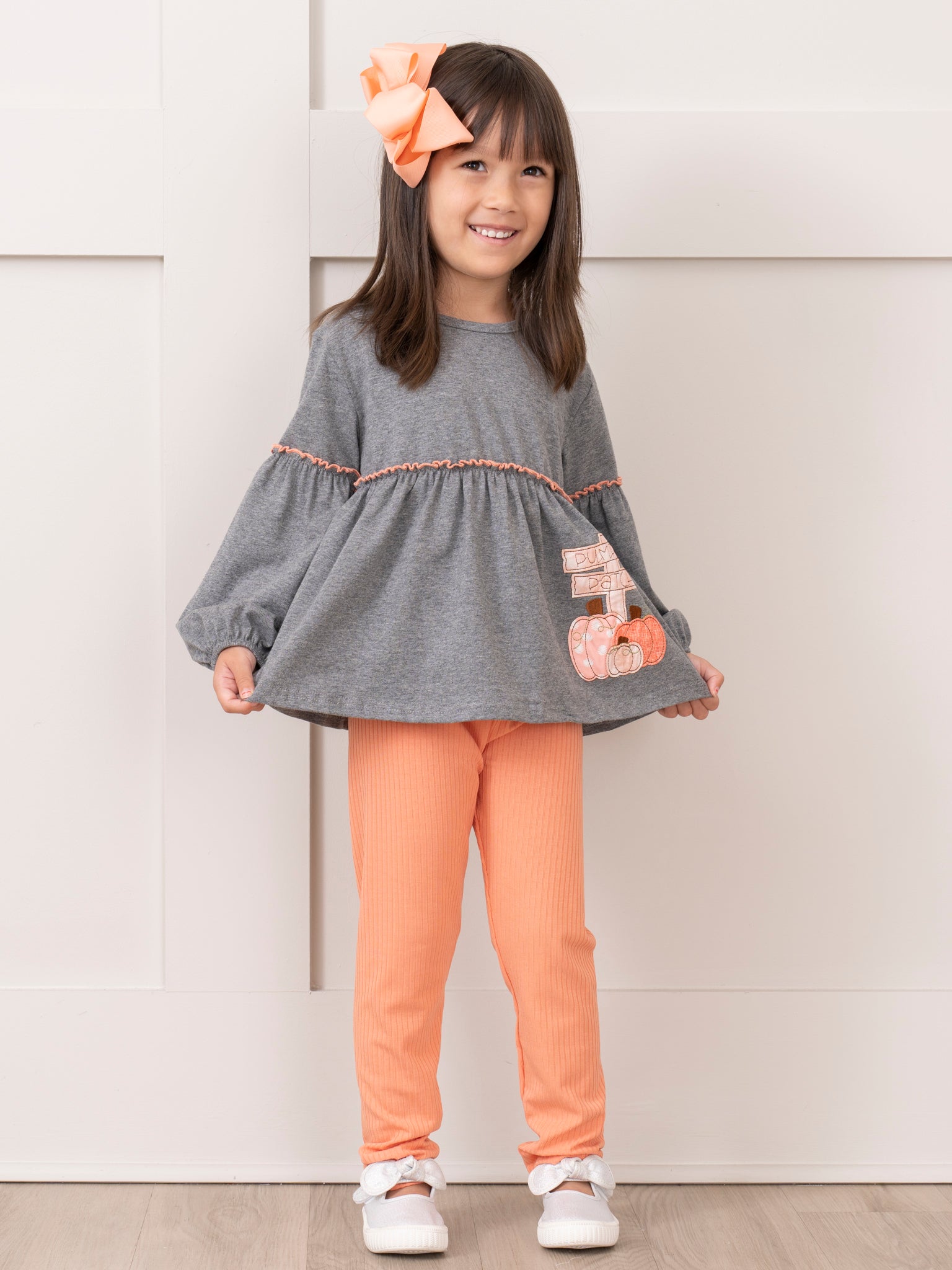 Orange & Grey Pumpkin Patch Bubble Sleeve Outfit