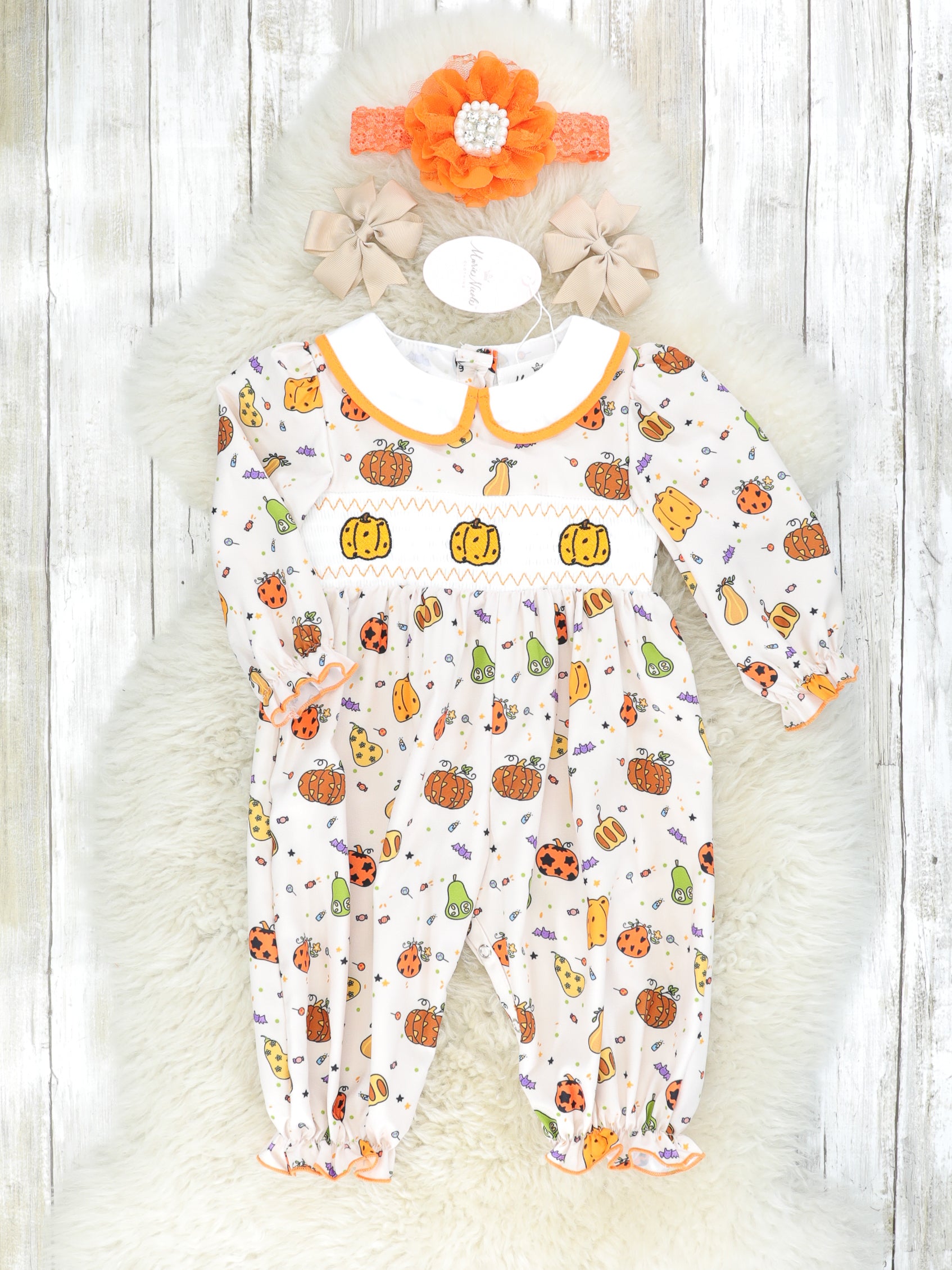 Pumpkin Spice & Spooky Nights Smocked Romper
