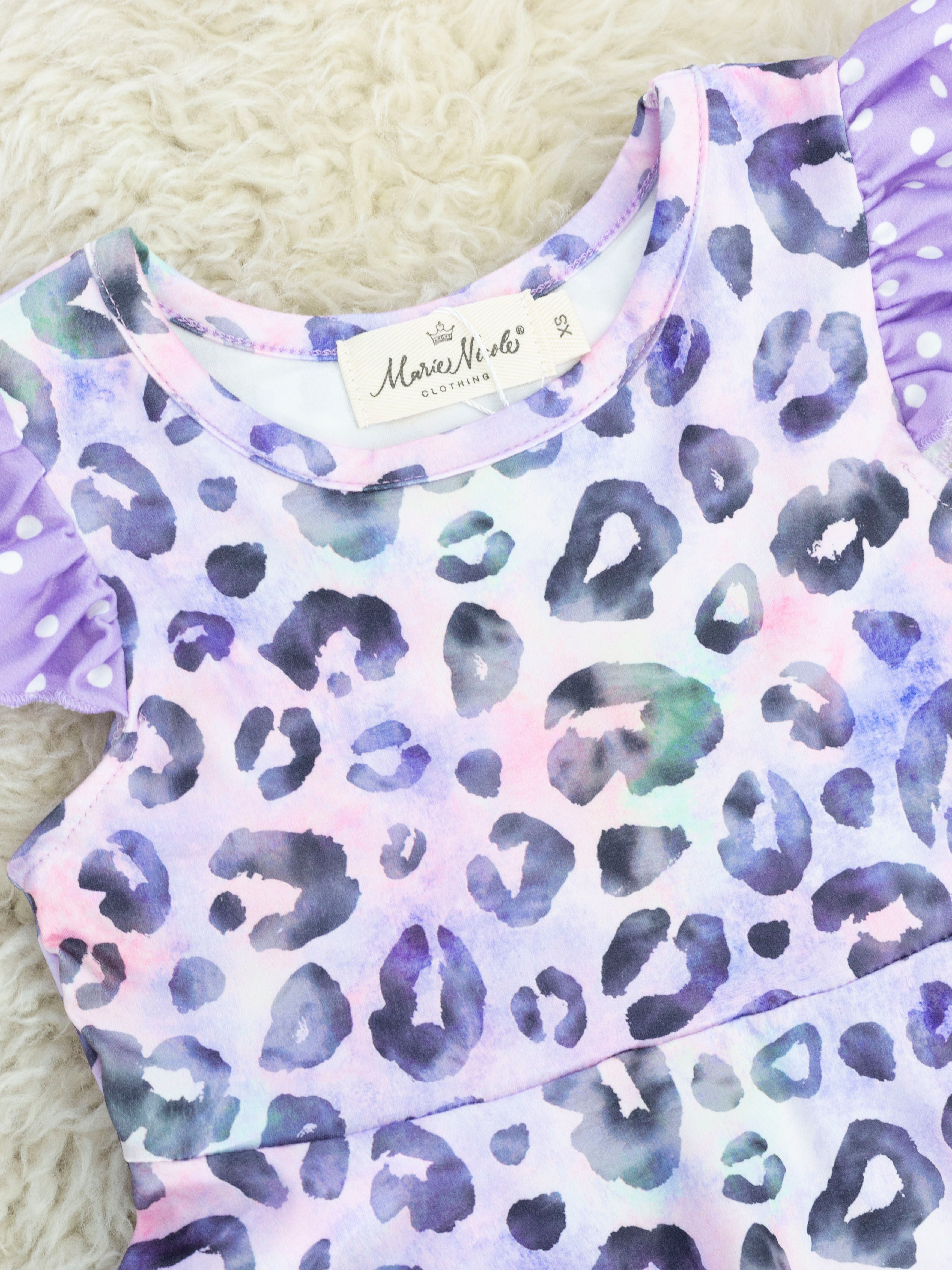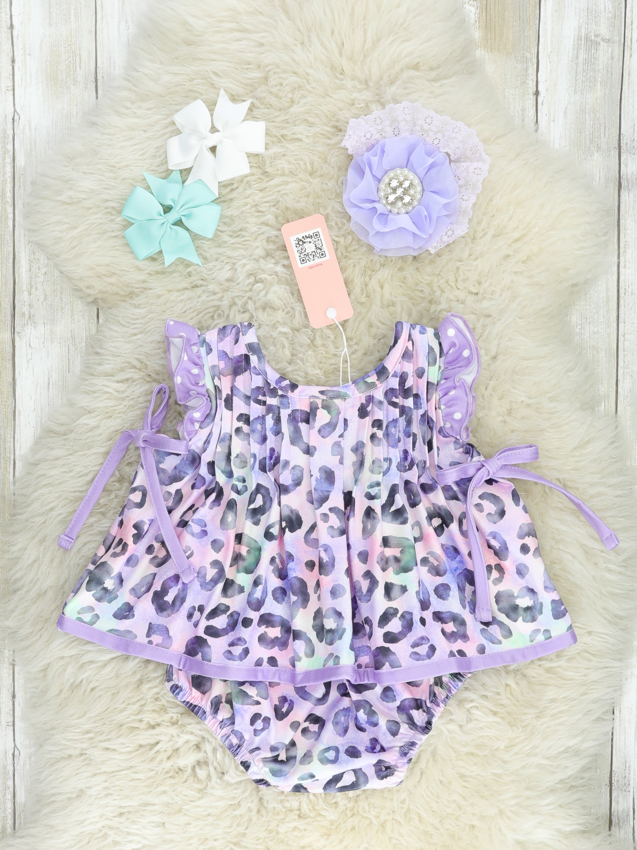 Purple Leopard Flutter Sleeve Bloomers Outfit