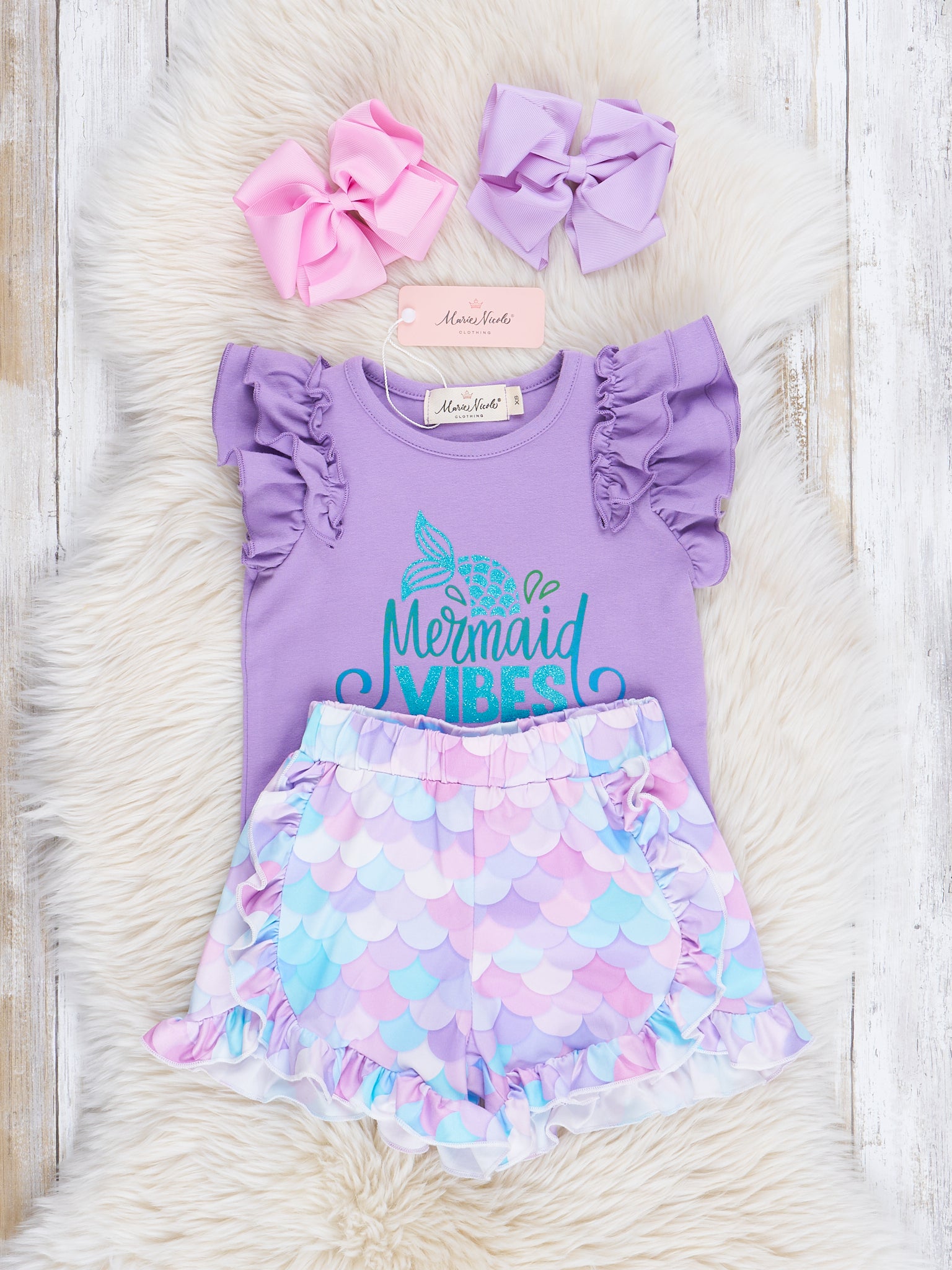Purple Rainbow Mermaid Vibes Ruffle Outfit