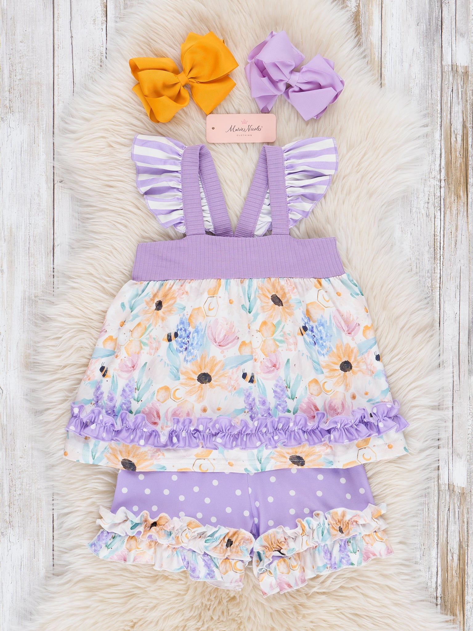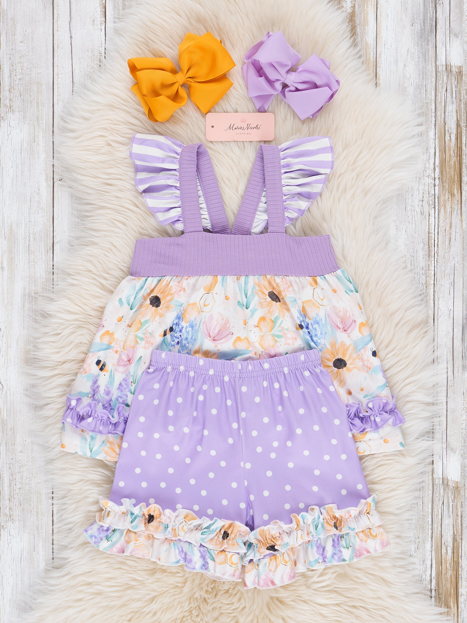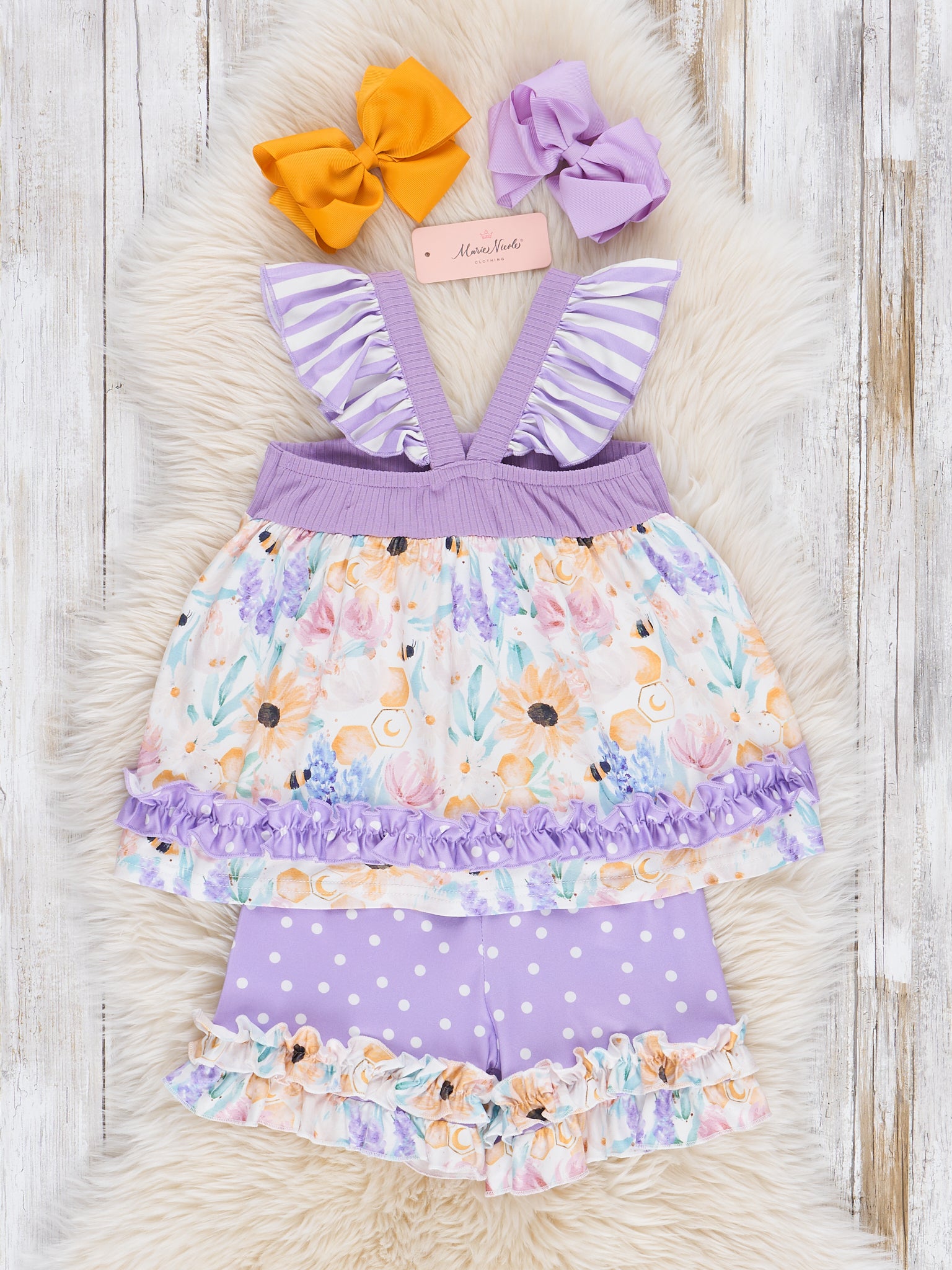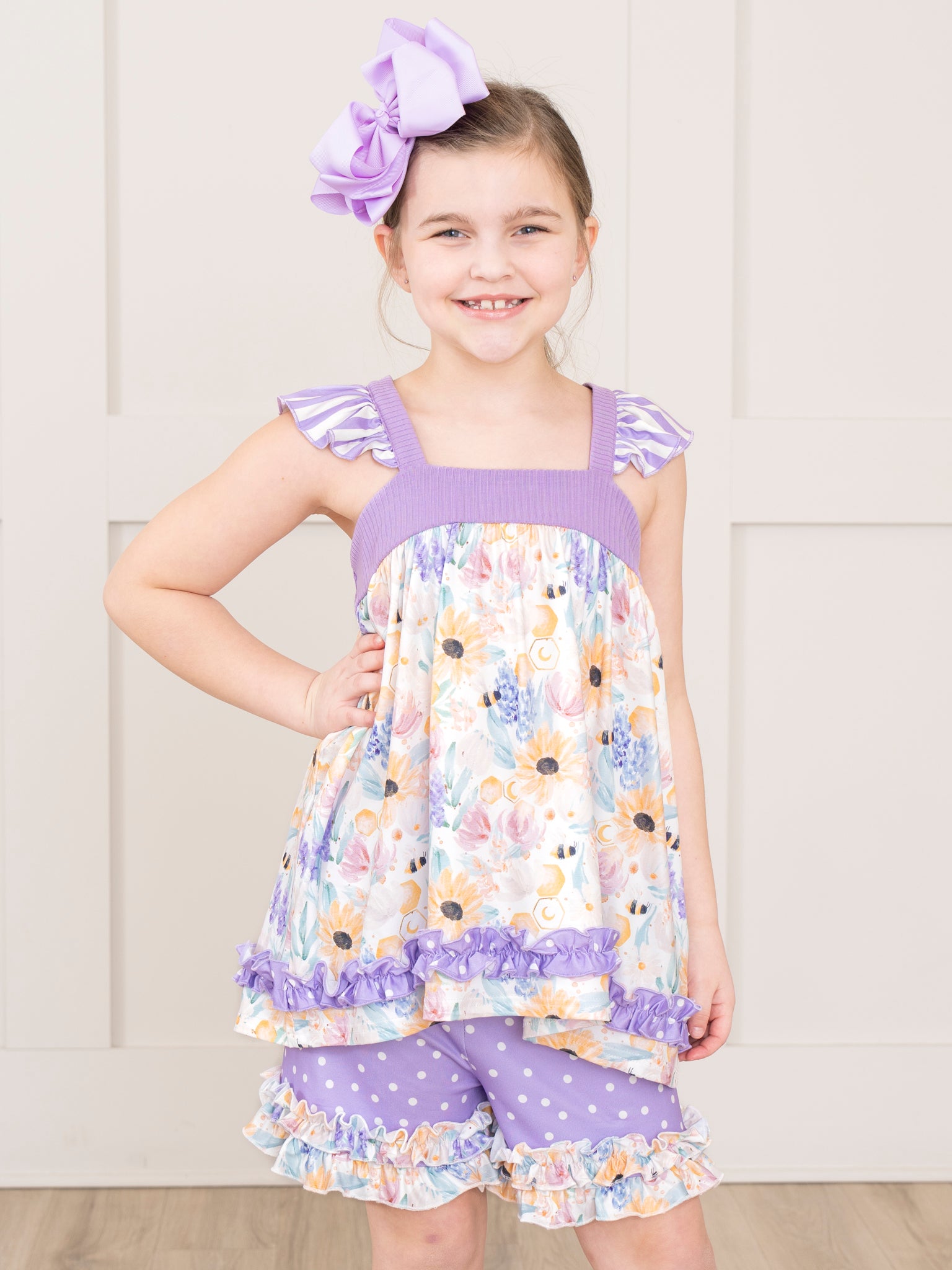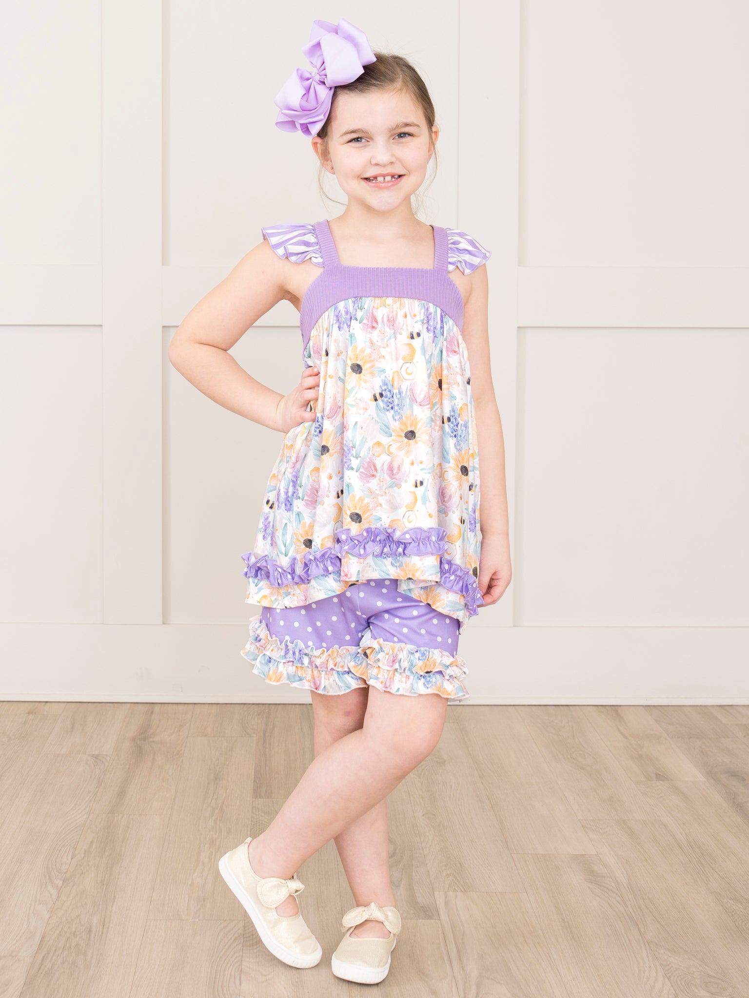 Purple & Yellow Watercolor Wildflowers Ruffle Outfit
