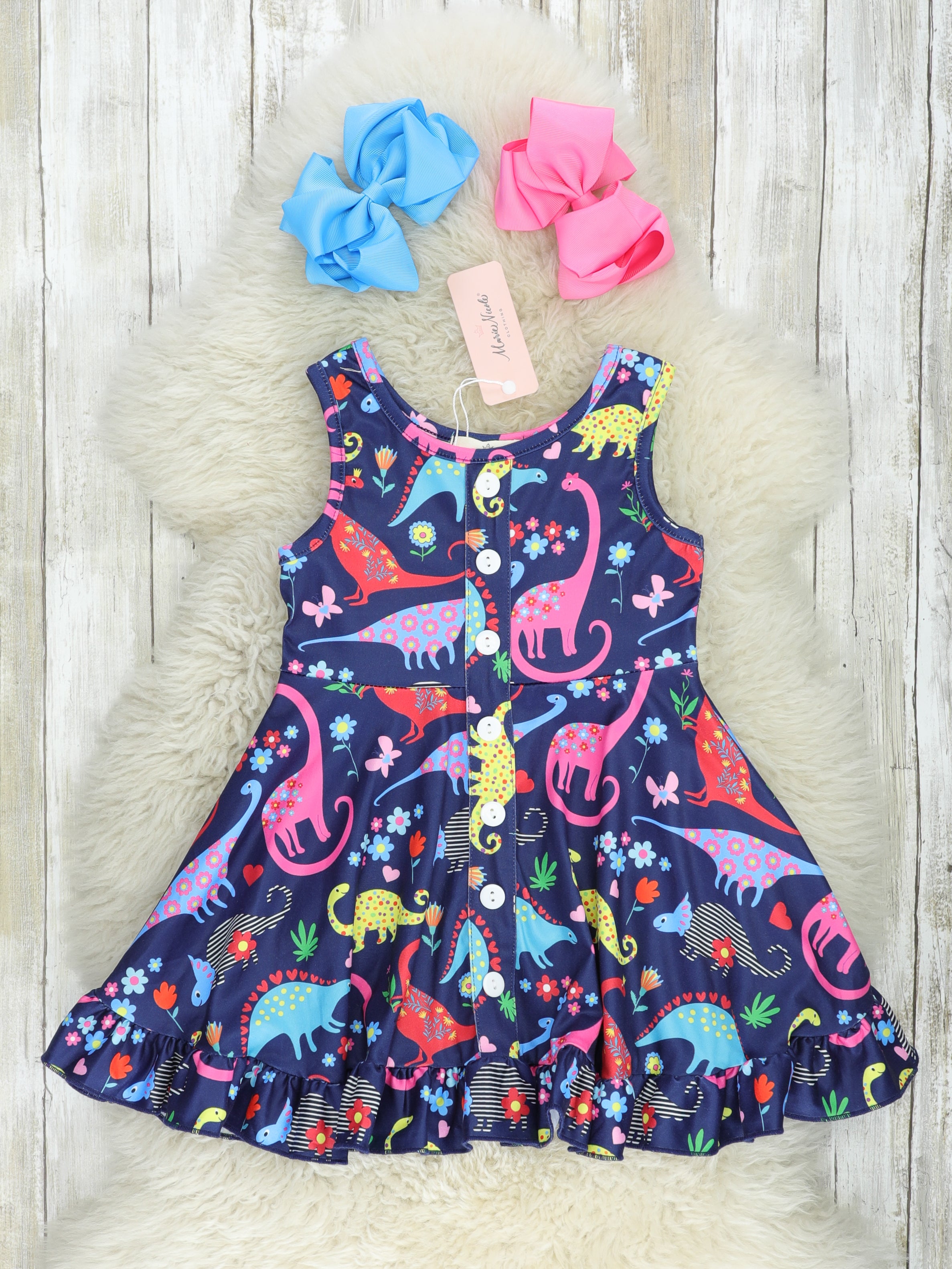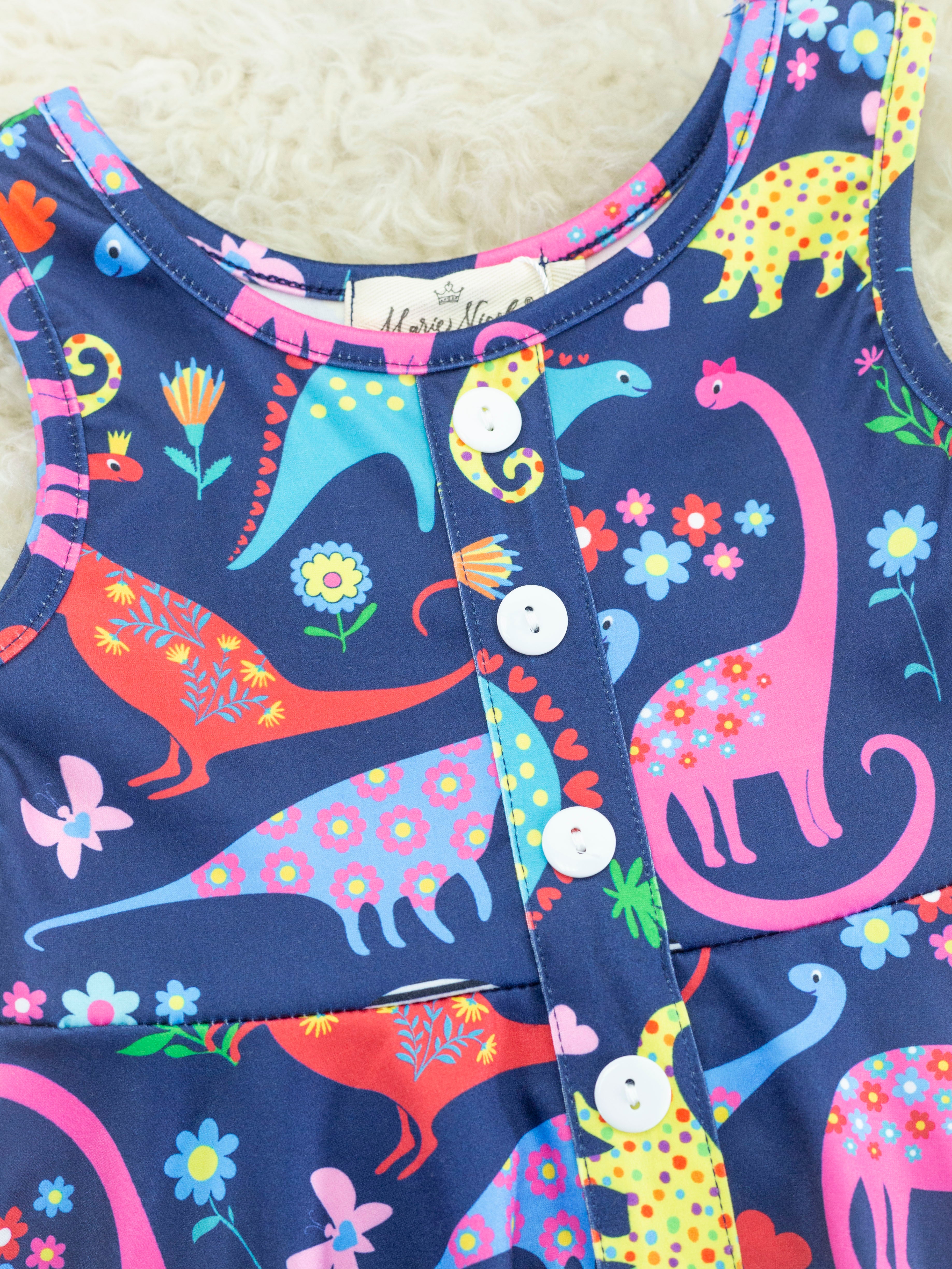 Rainbow Dinosaur Ruffle Tank Dress