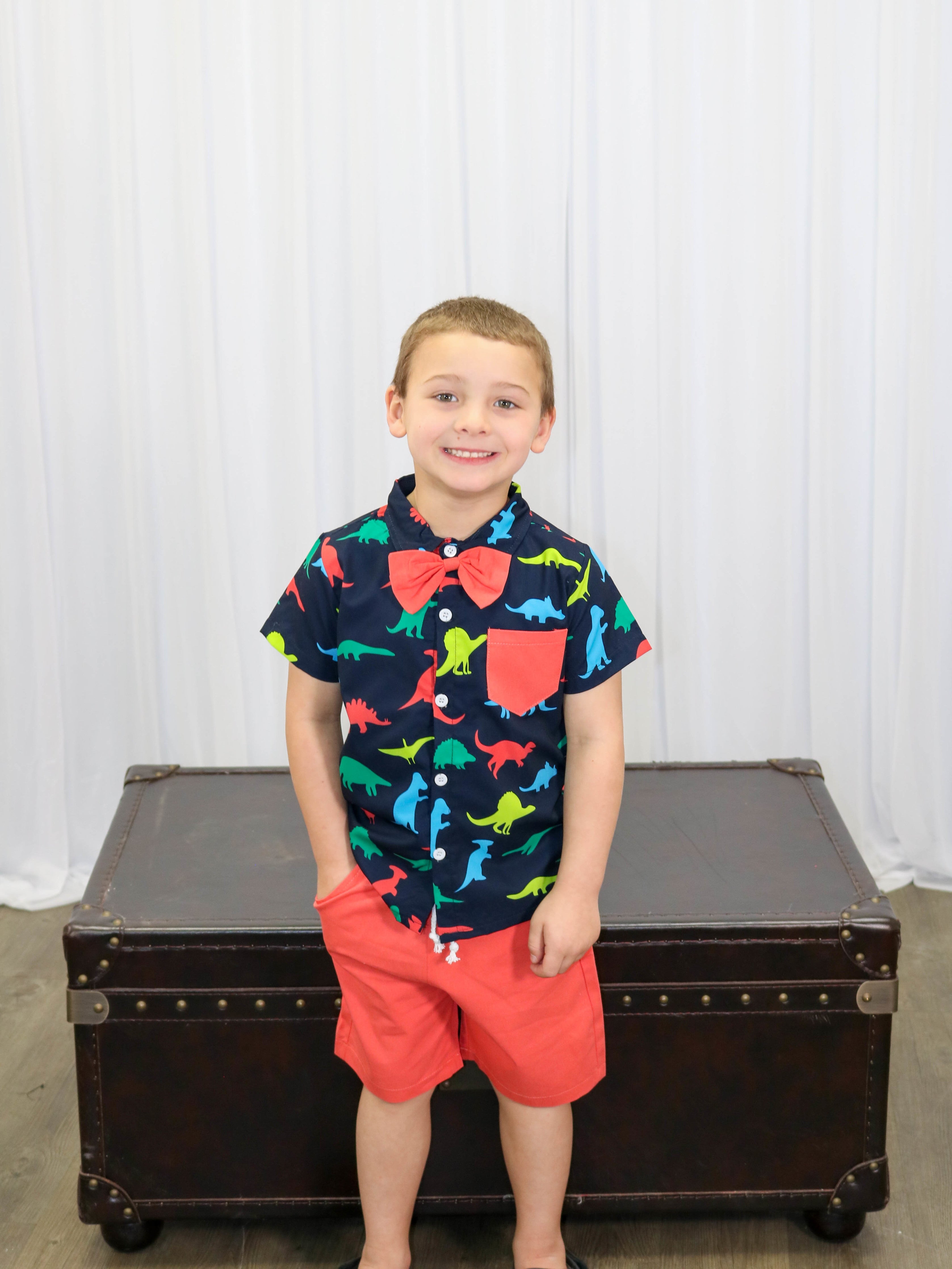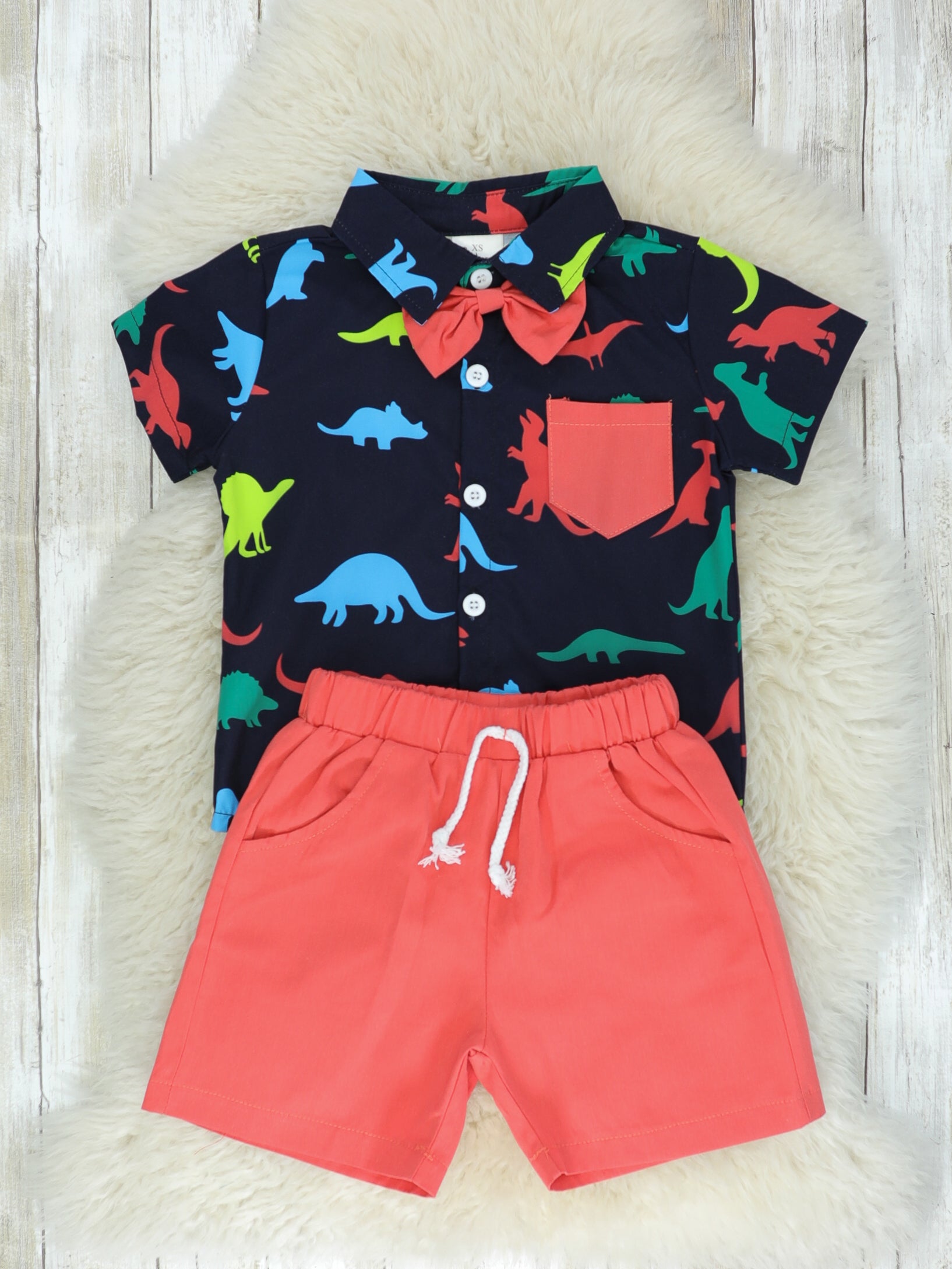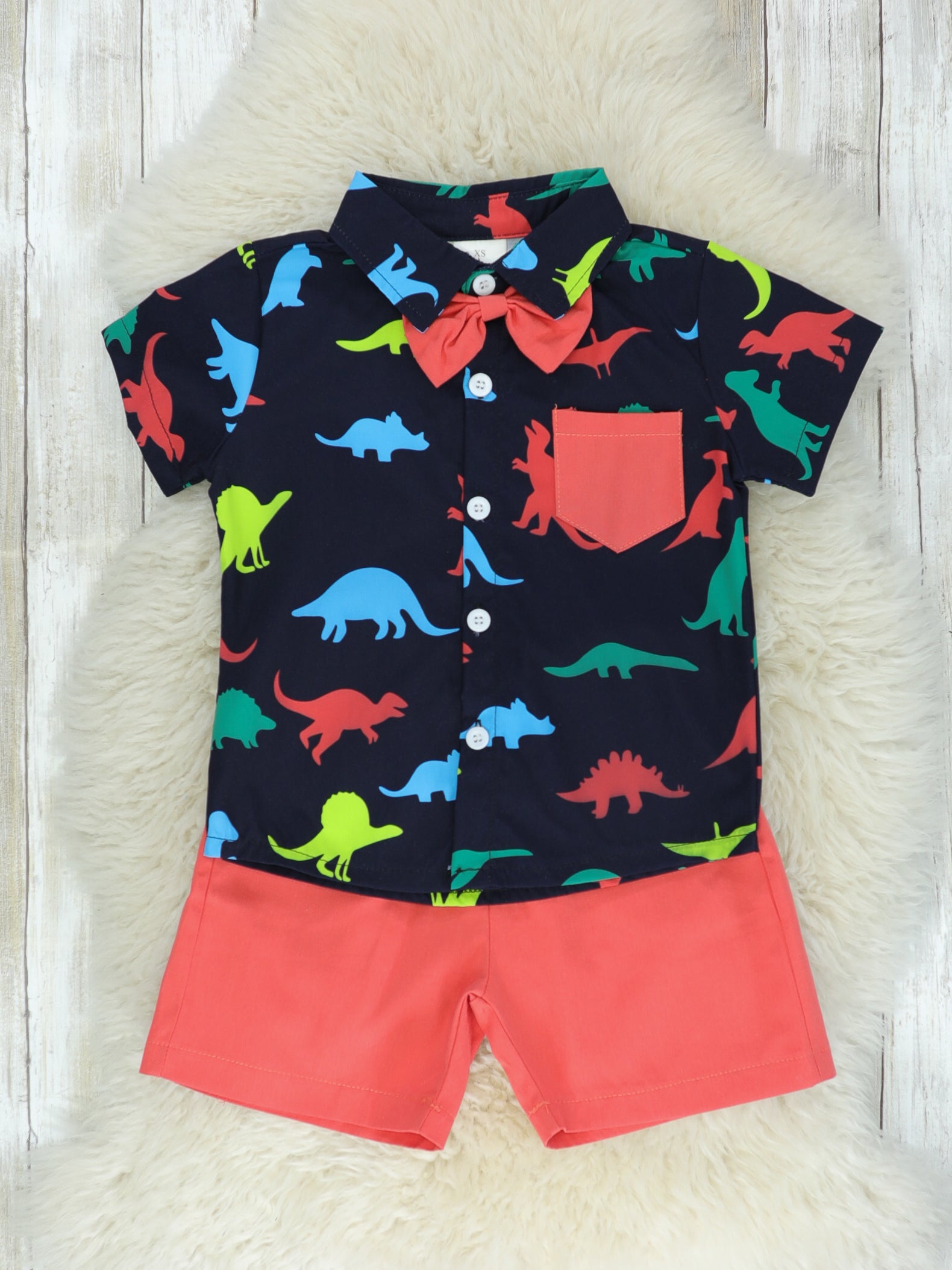 Rainbow Dinosaur Button Down & Shorts Outfit