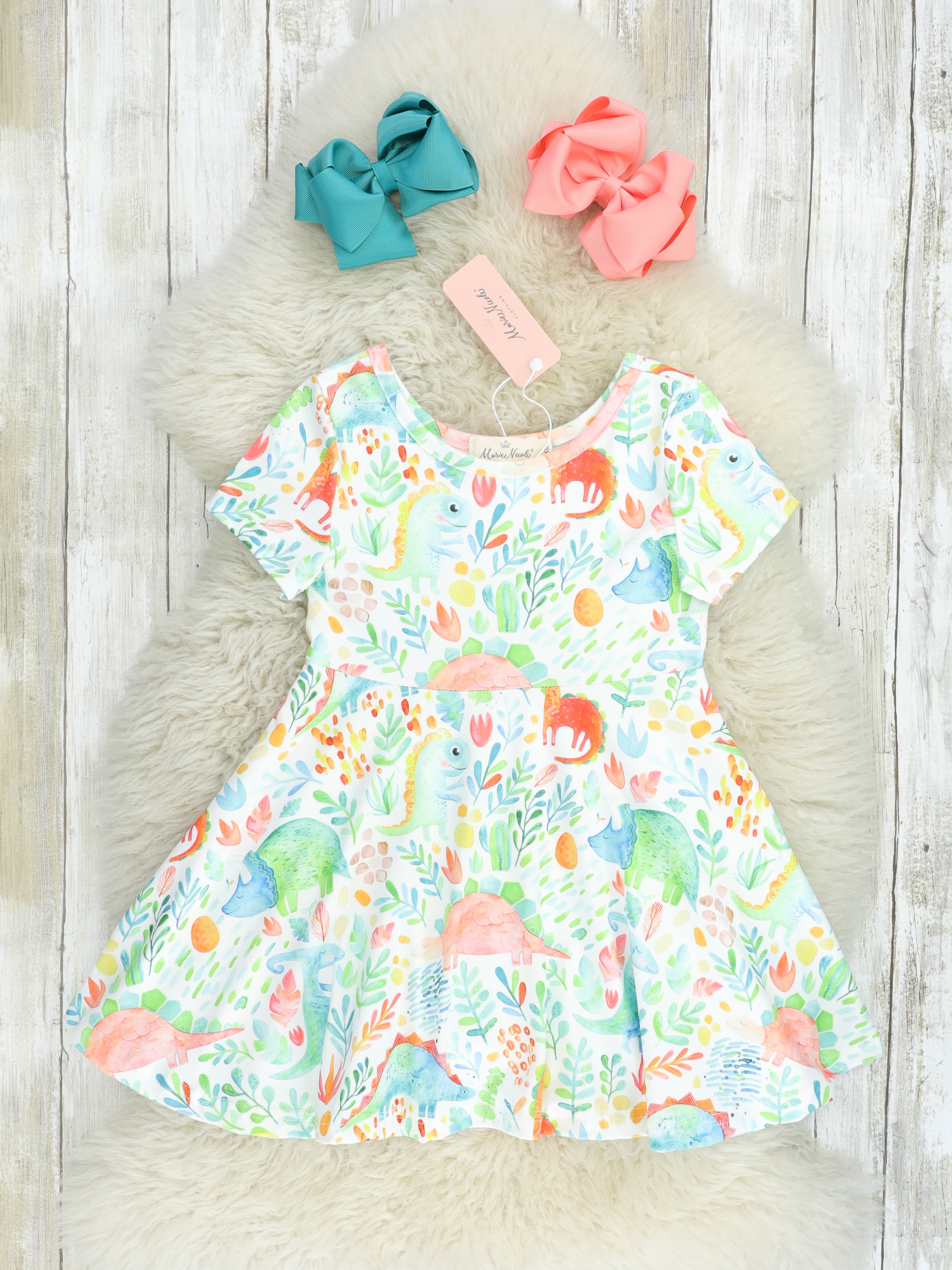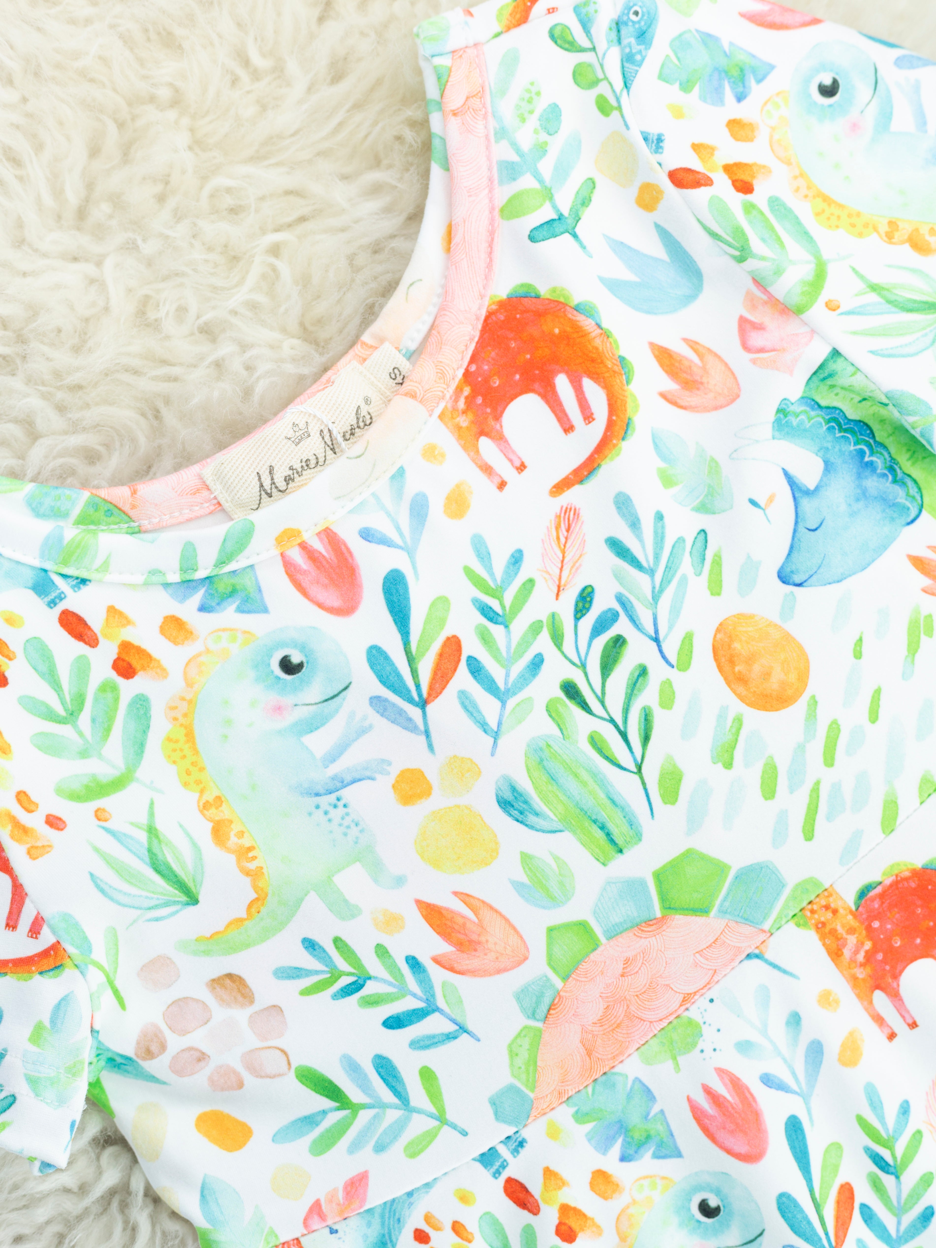 Bold Rainbow Dinosaur Swing Dress
