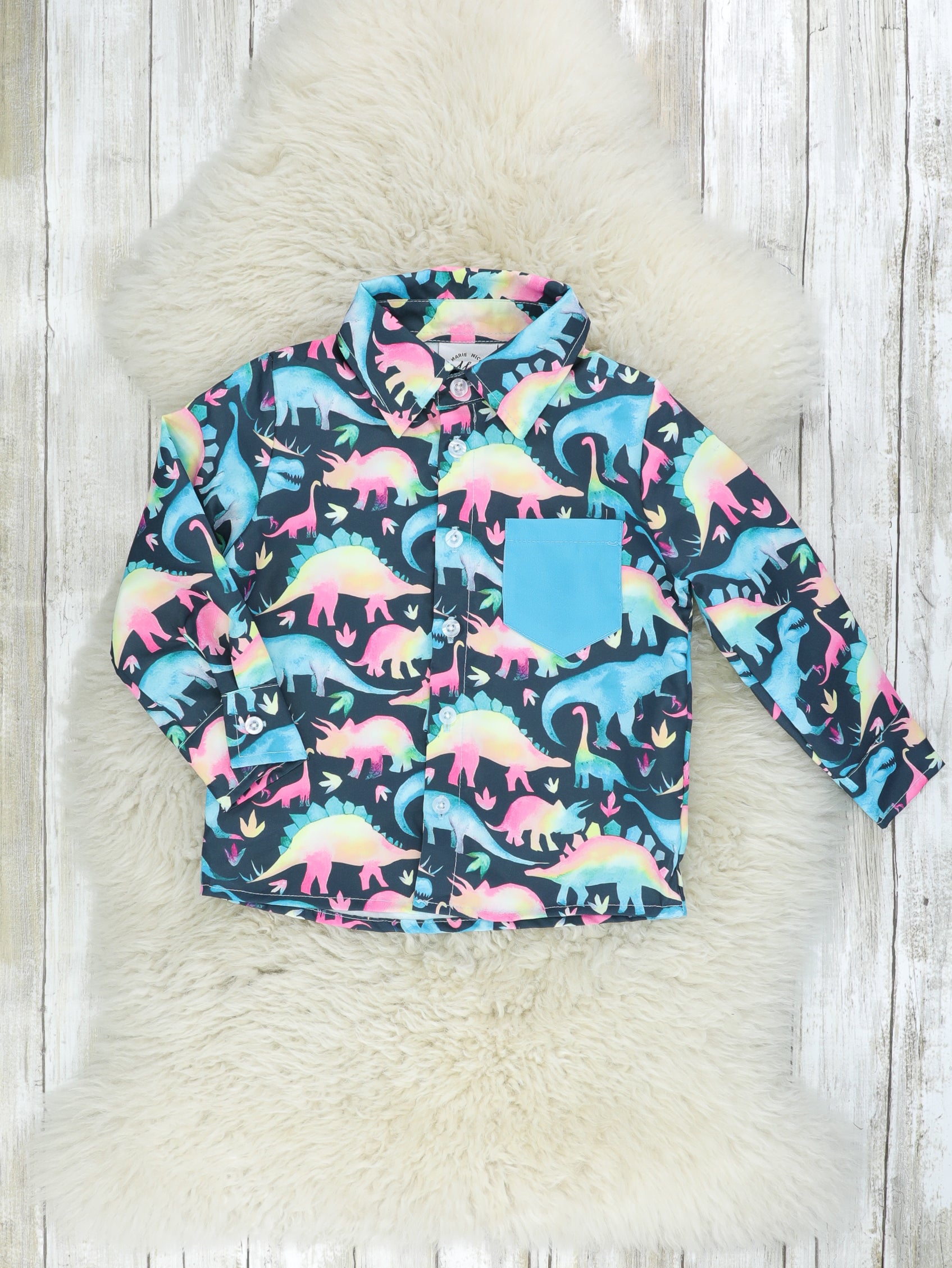 Rainbow Dinosaur Button-Up Shirt