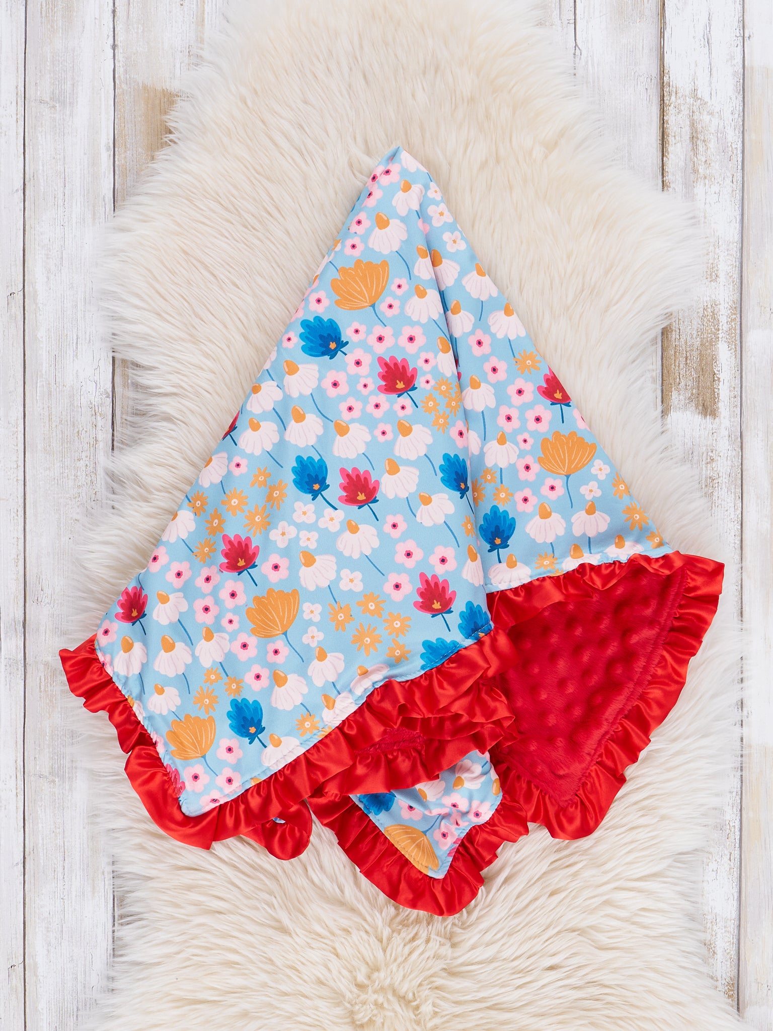 Red & Blue Little Daisies Ruffle Minky Blanket