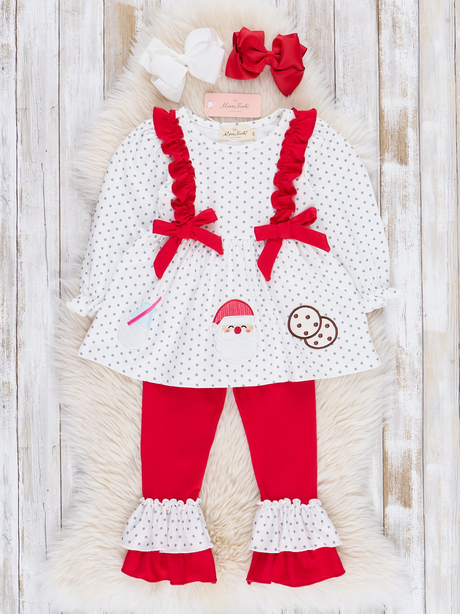 Embroidered Santa's Milk & Cookies Ruffle Outfit