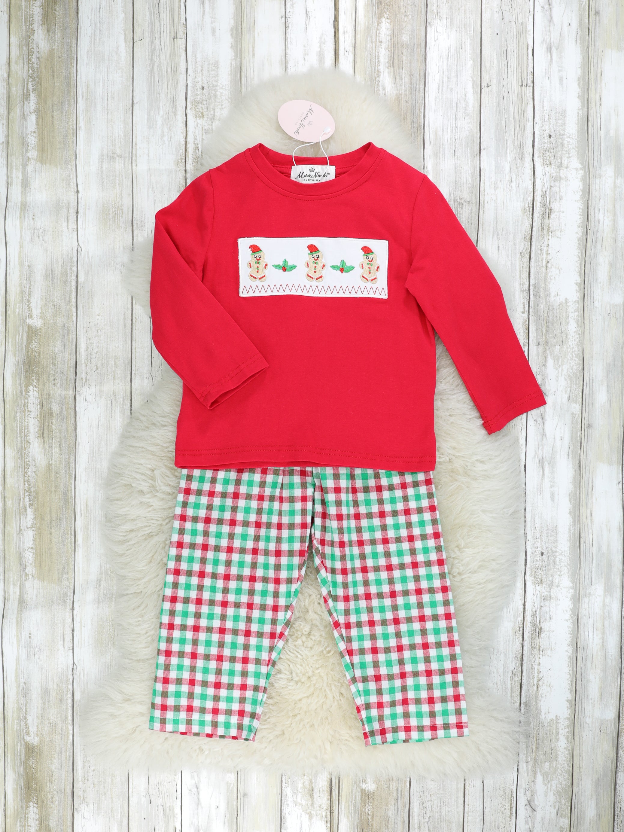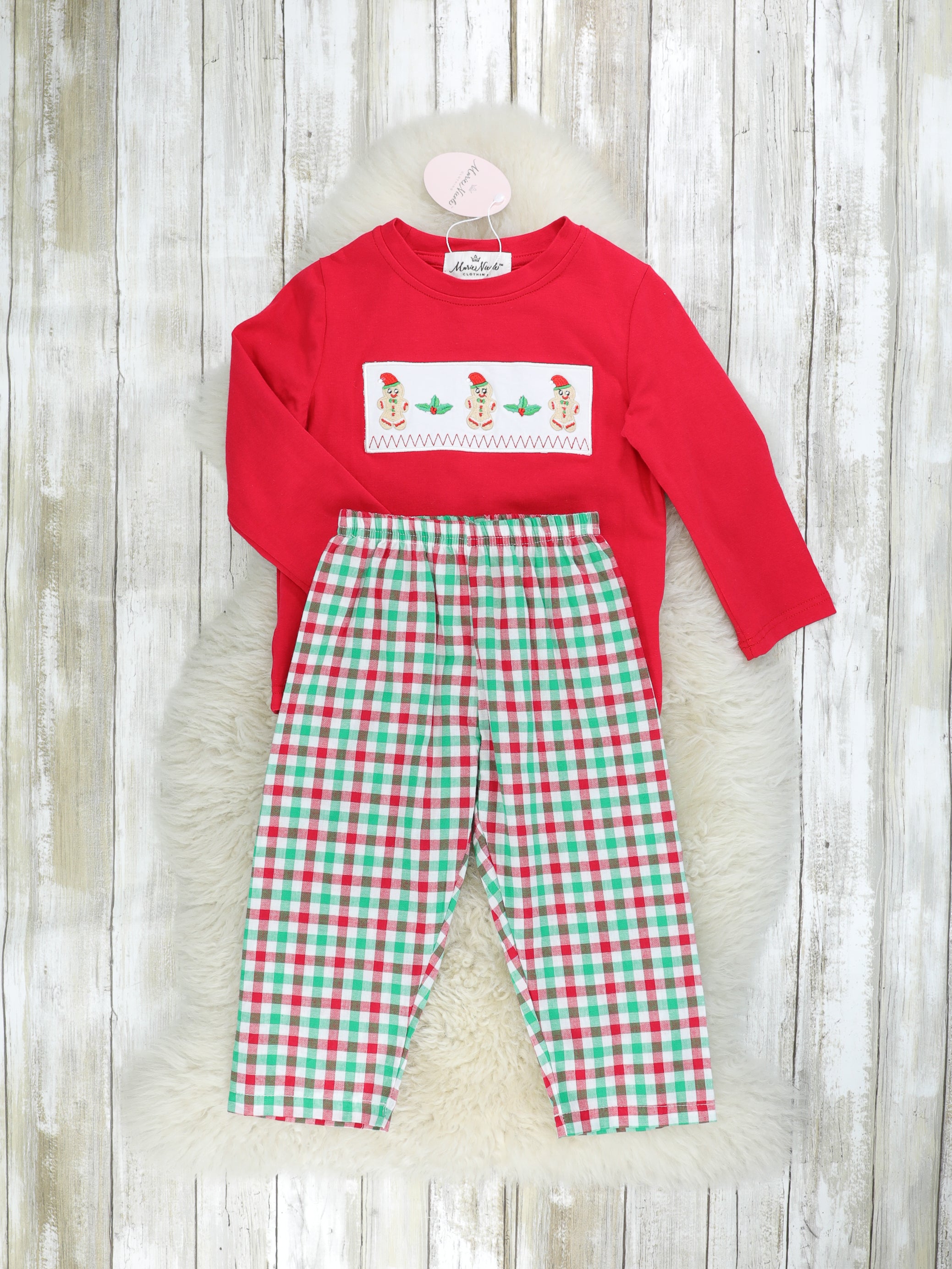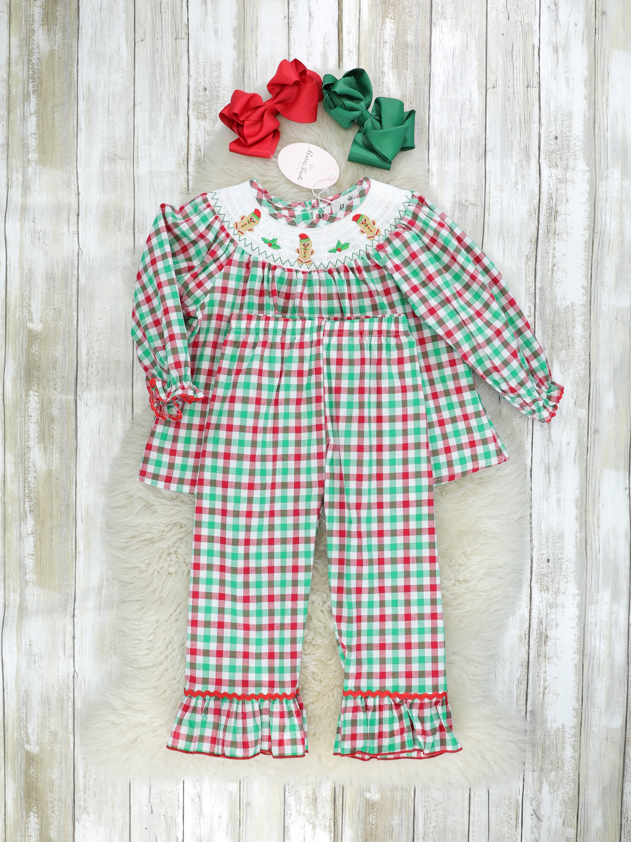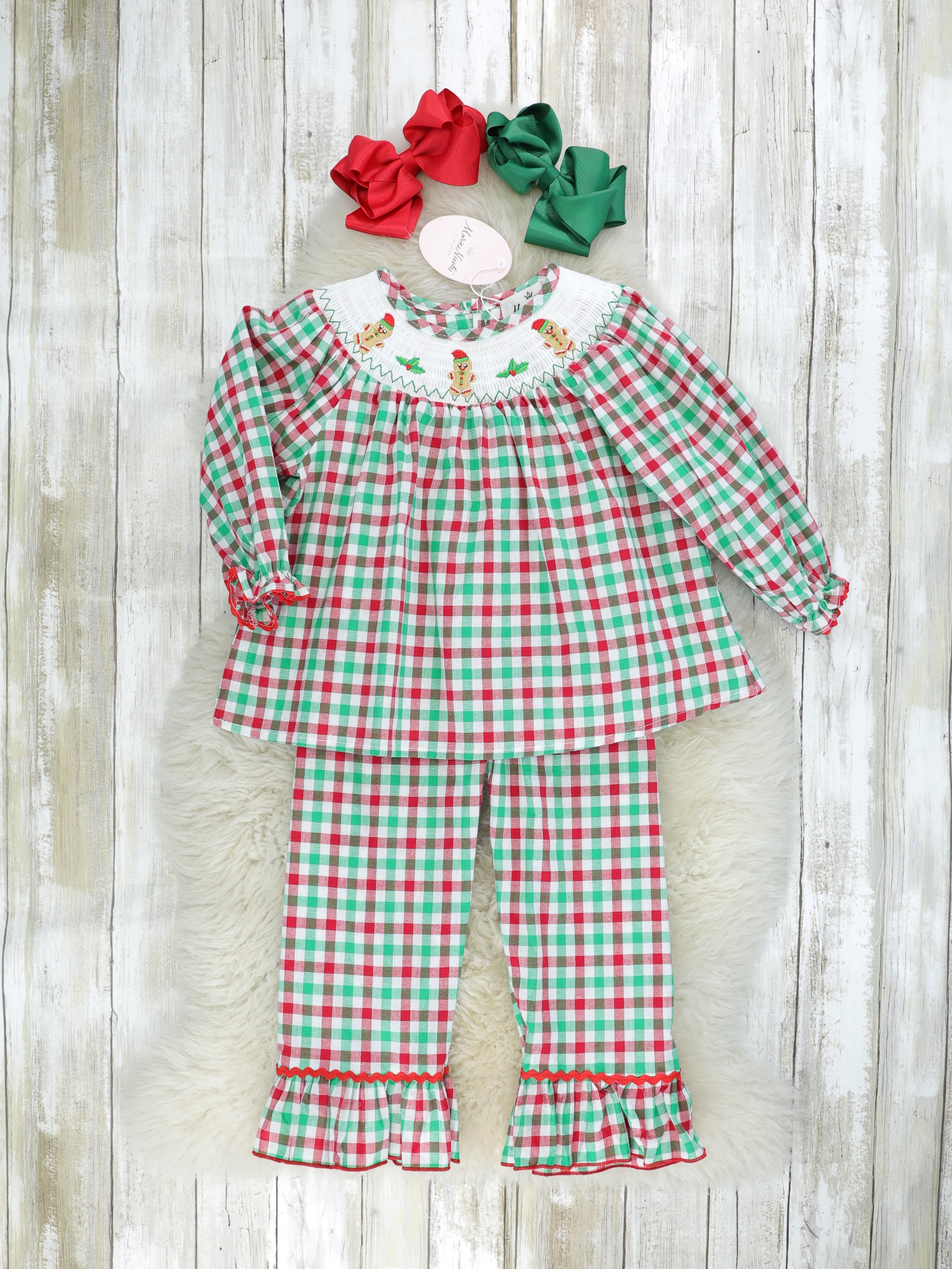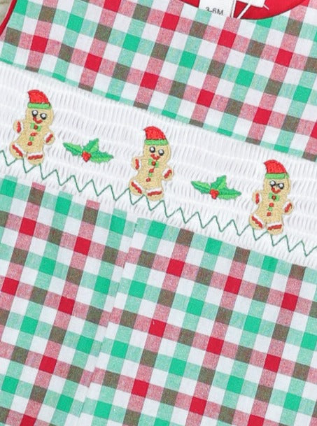 Red & Green Gingerbread Smocked Ruffle Outfit