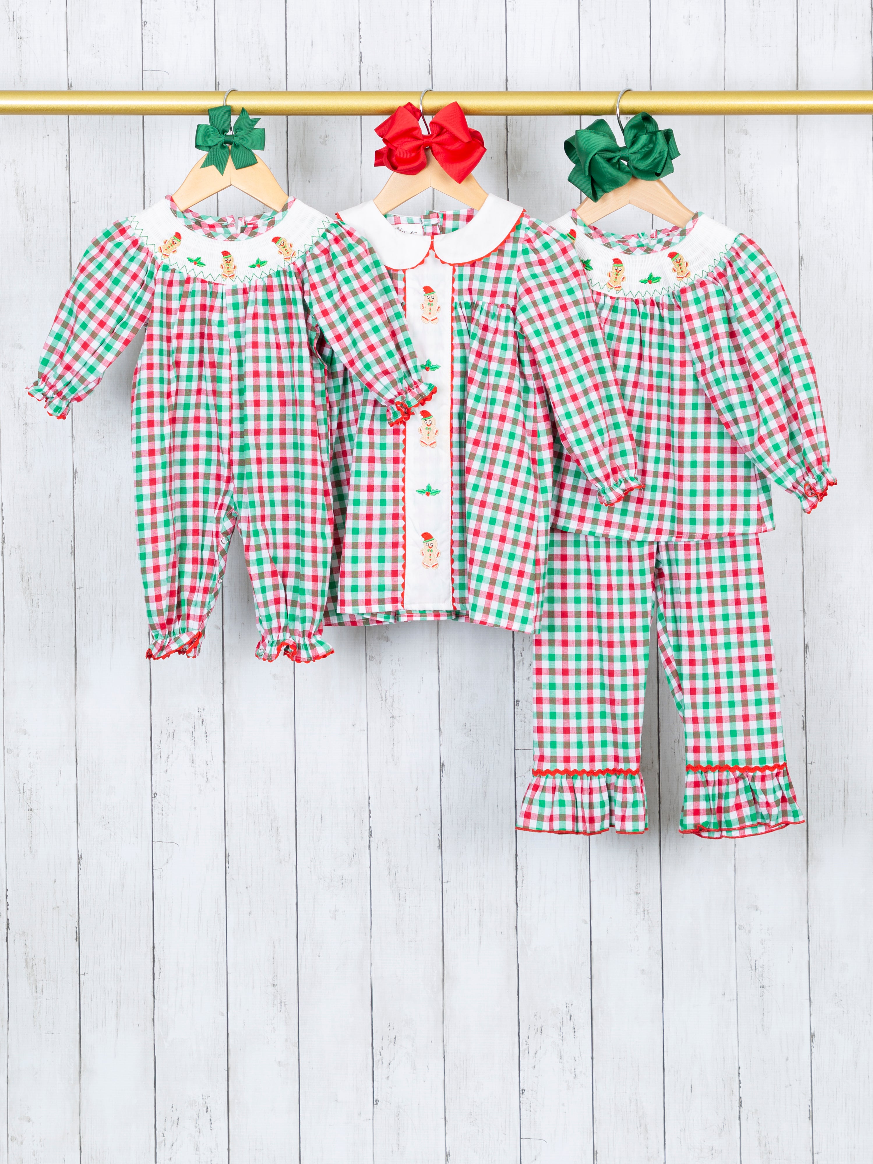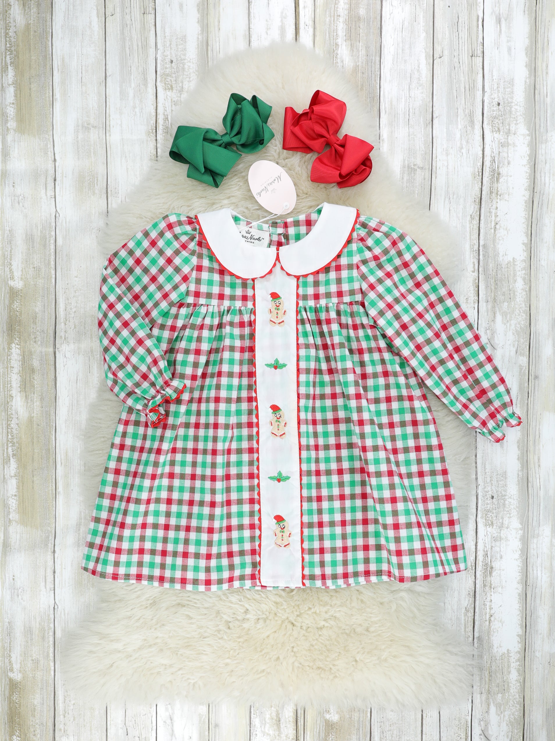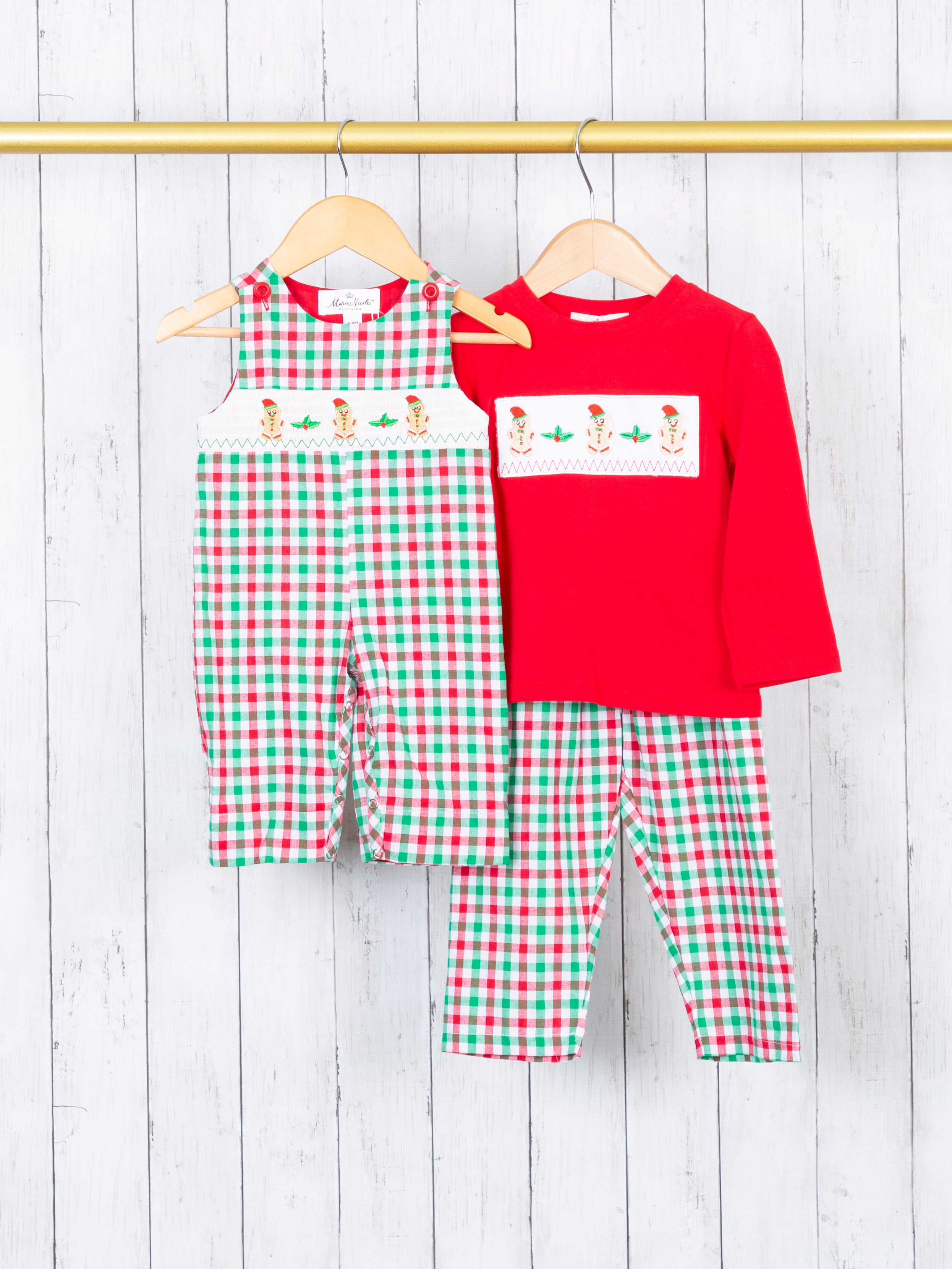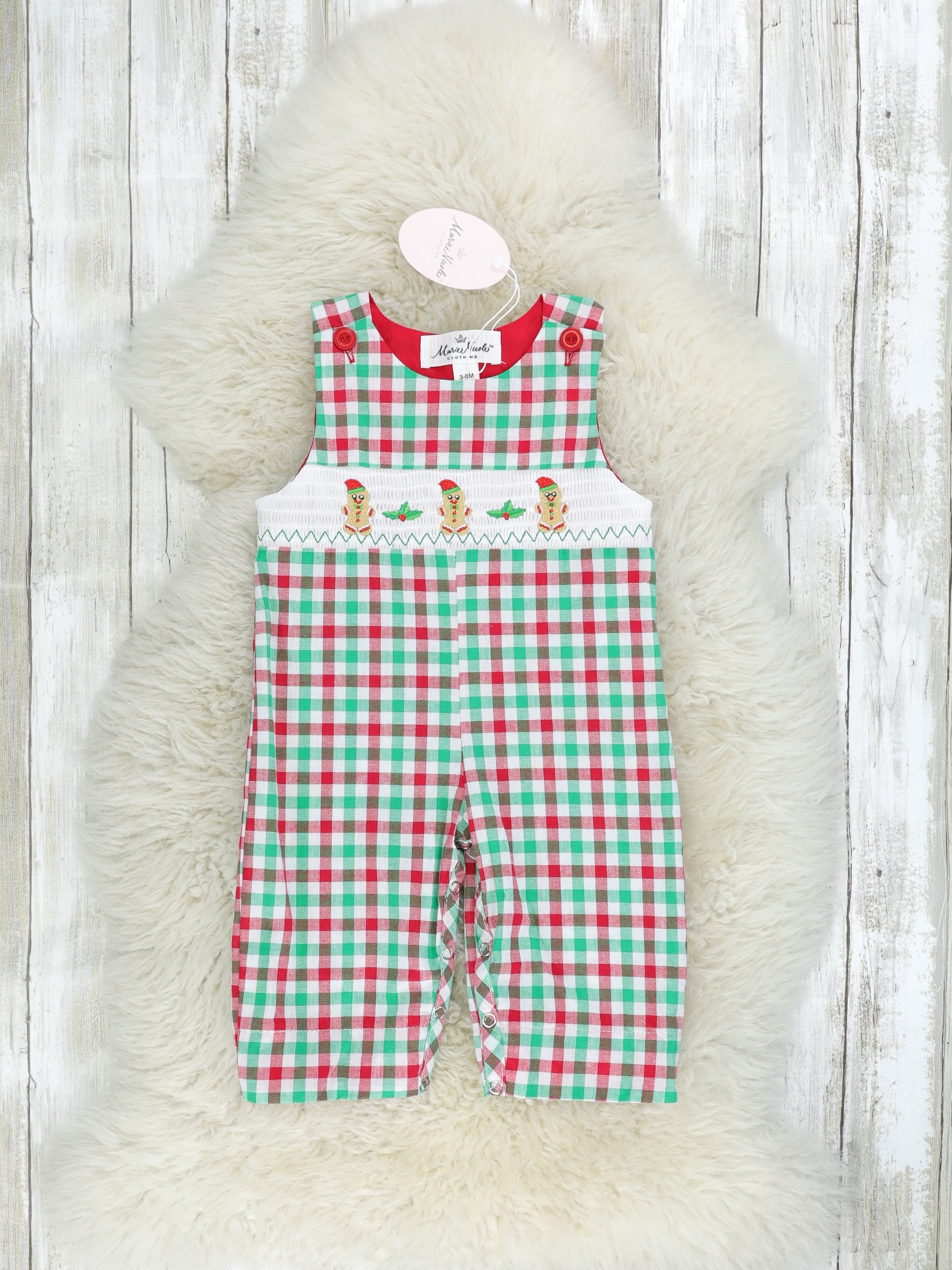 Red & Green Gingerbread Smocked Ruffle Outfit