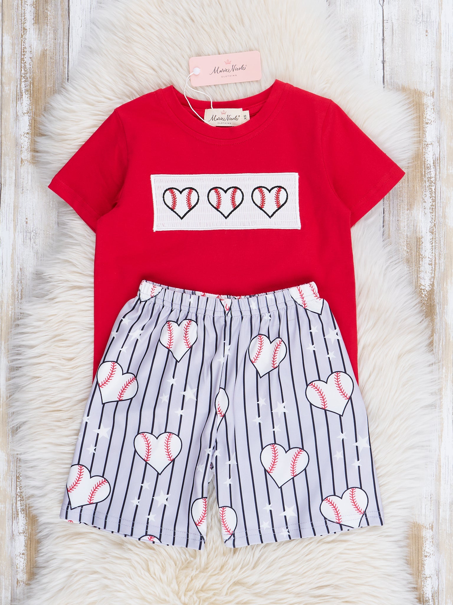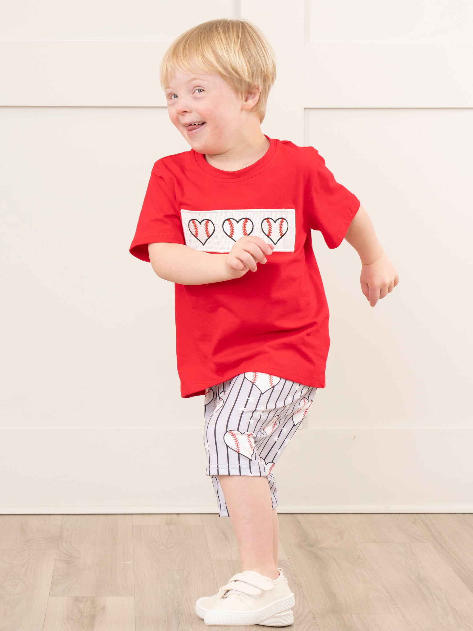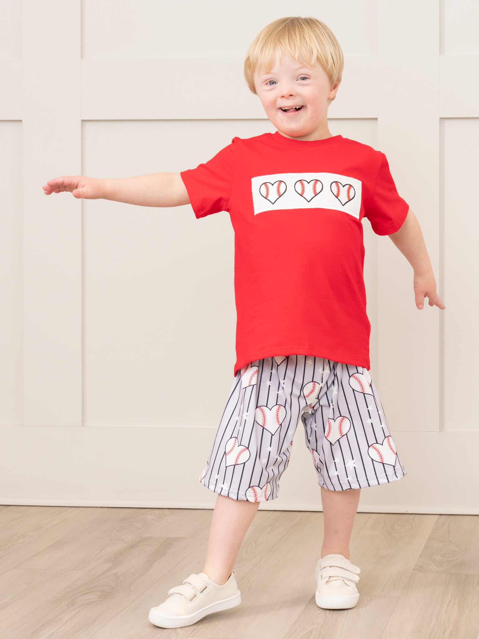 Red & Grey Stripes Smocked Baseball Sibling Set