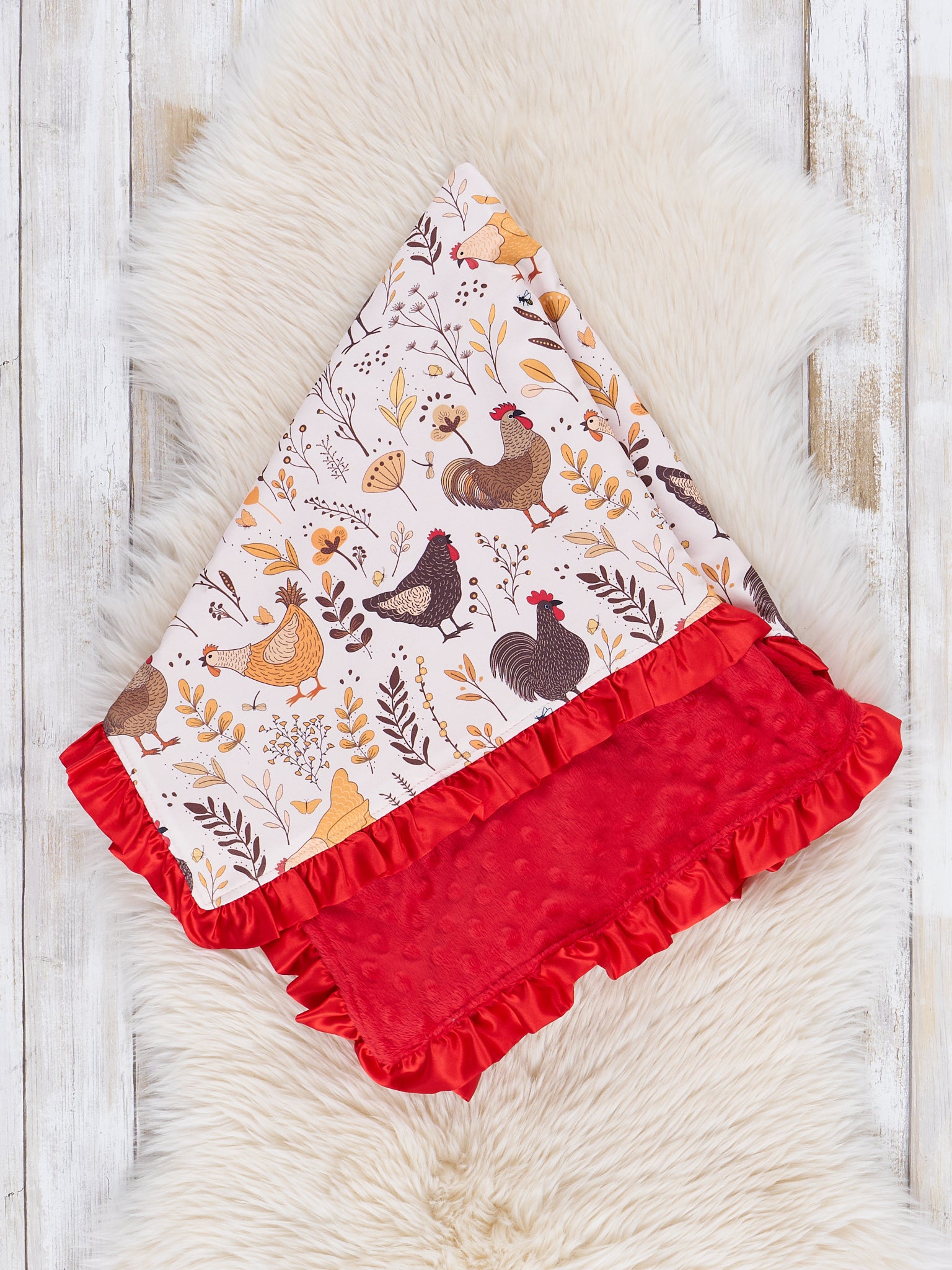 Red Hen Party Ruffle Minky Blanket
