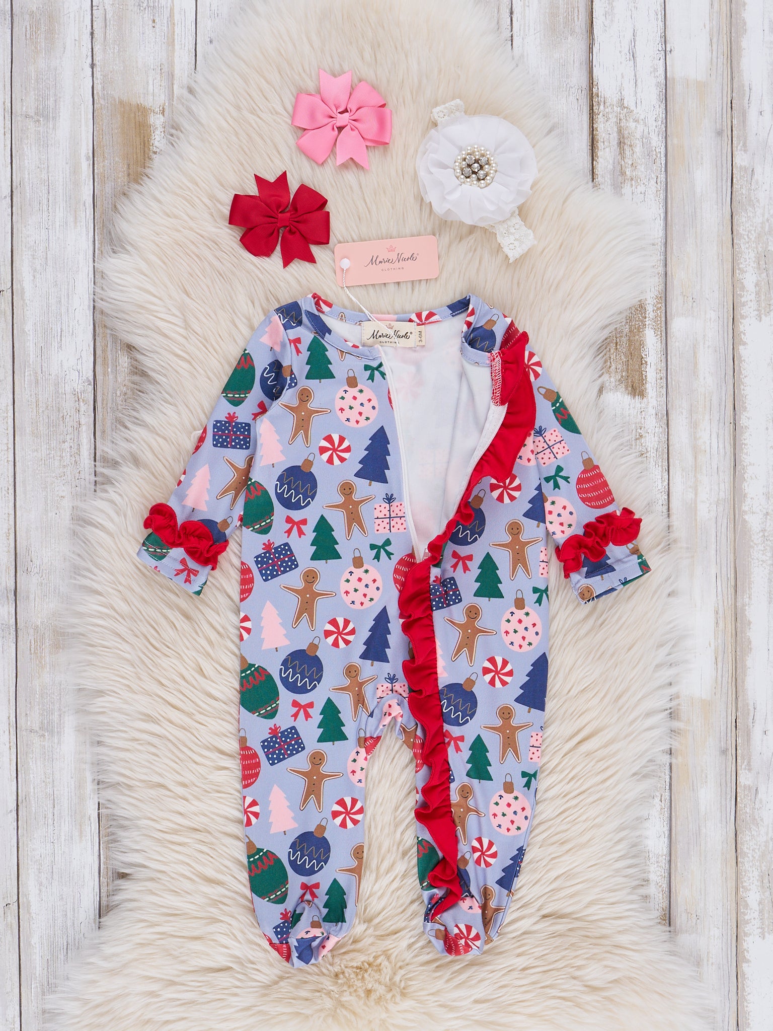Red & Light Blue Holiday Joy Footed Sleeper Pajamas