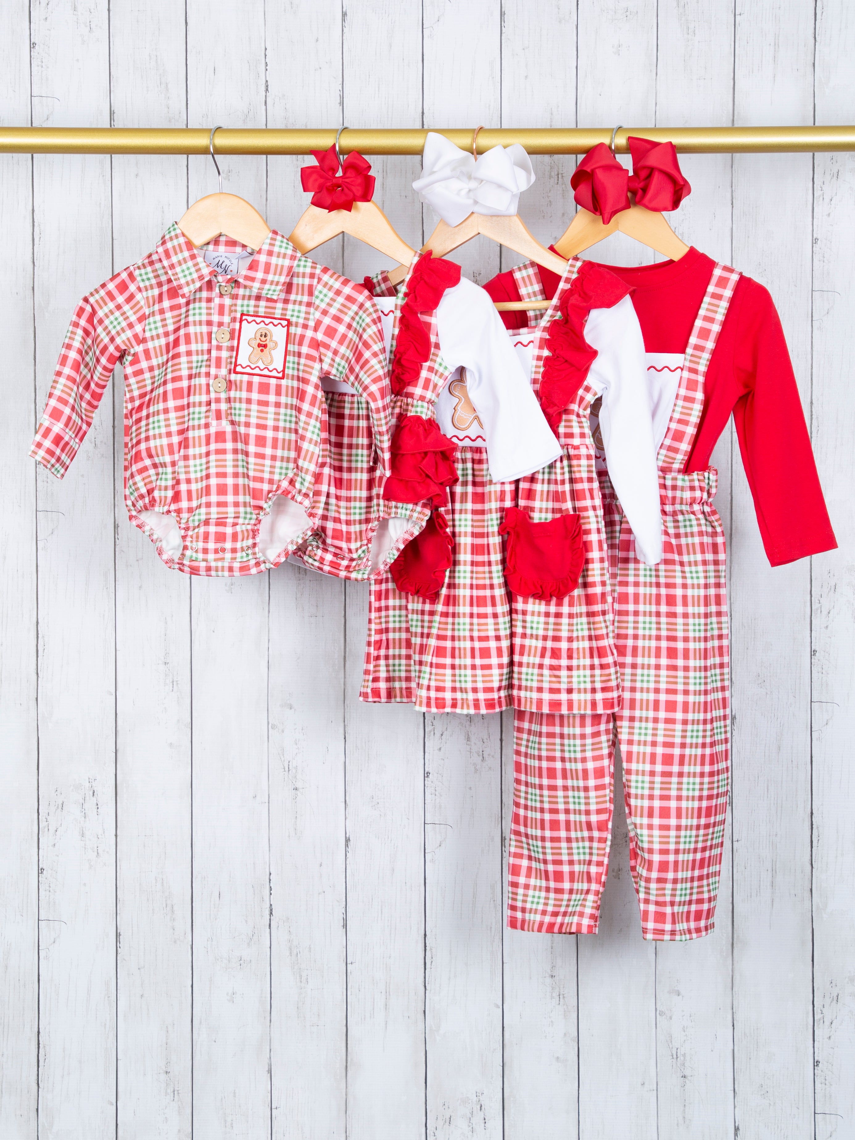 Red Plaid Gingerbread Bubble Ruffle Romper