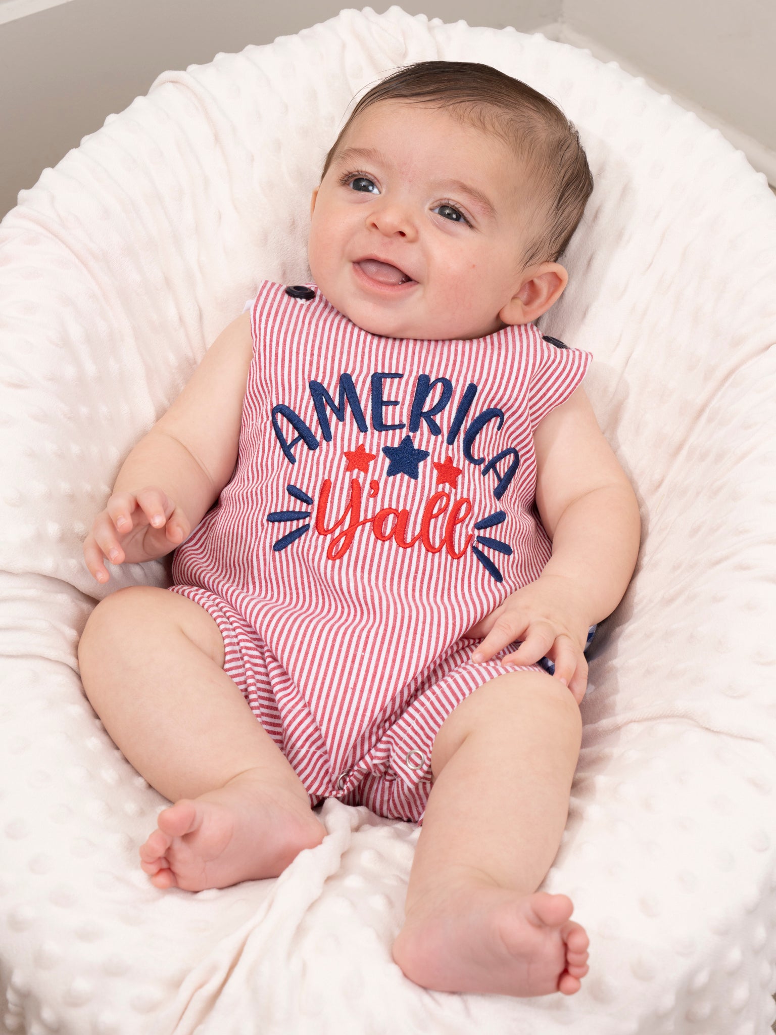Home › Red Seersucker "America, Y'all" Sibling Set