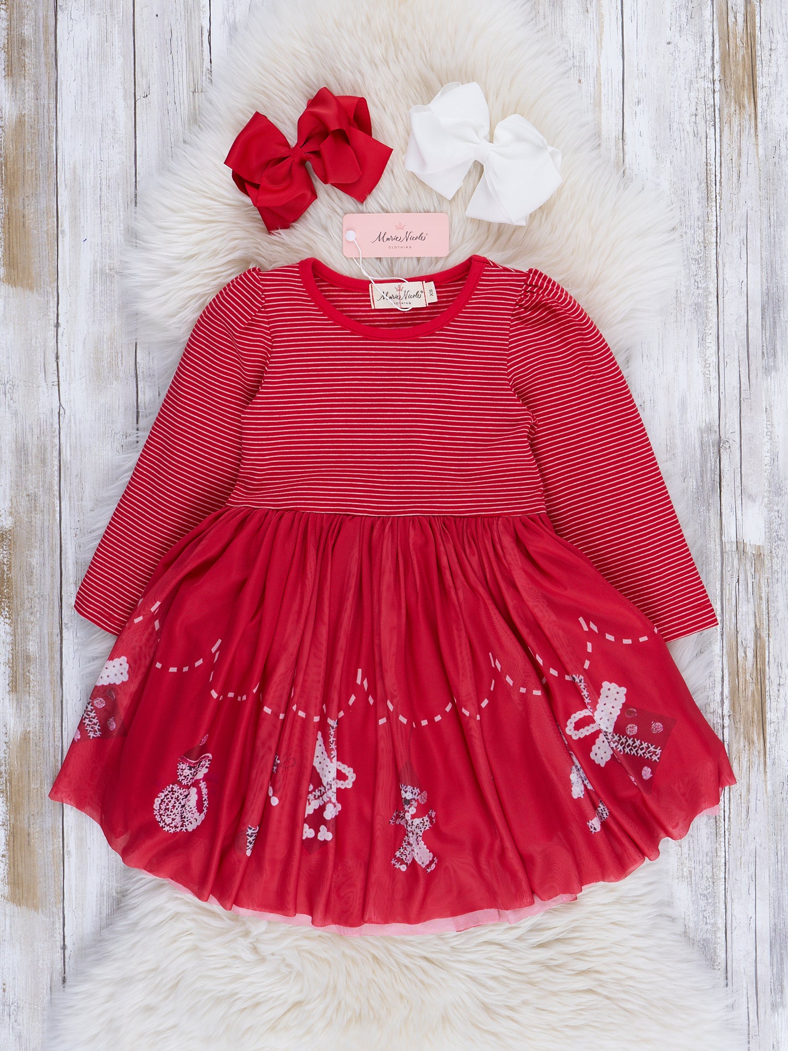 Red & Silver Sparkle Jolly Pleated Peplum Romper