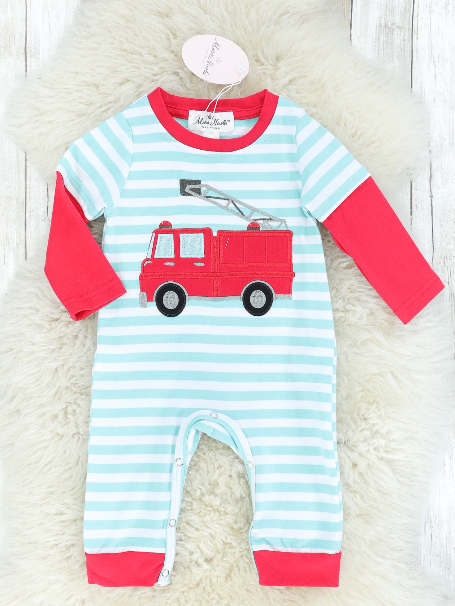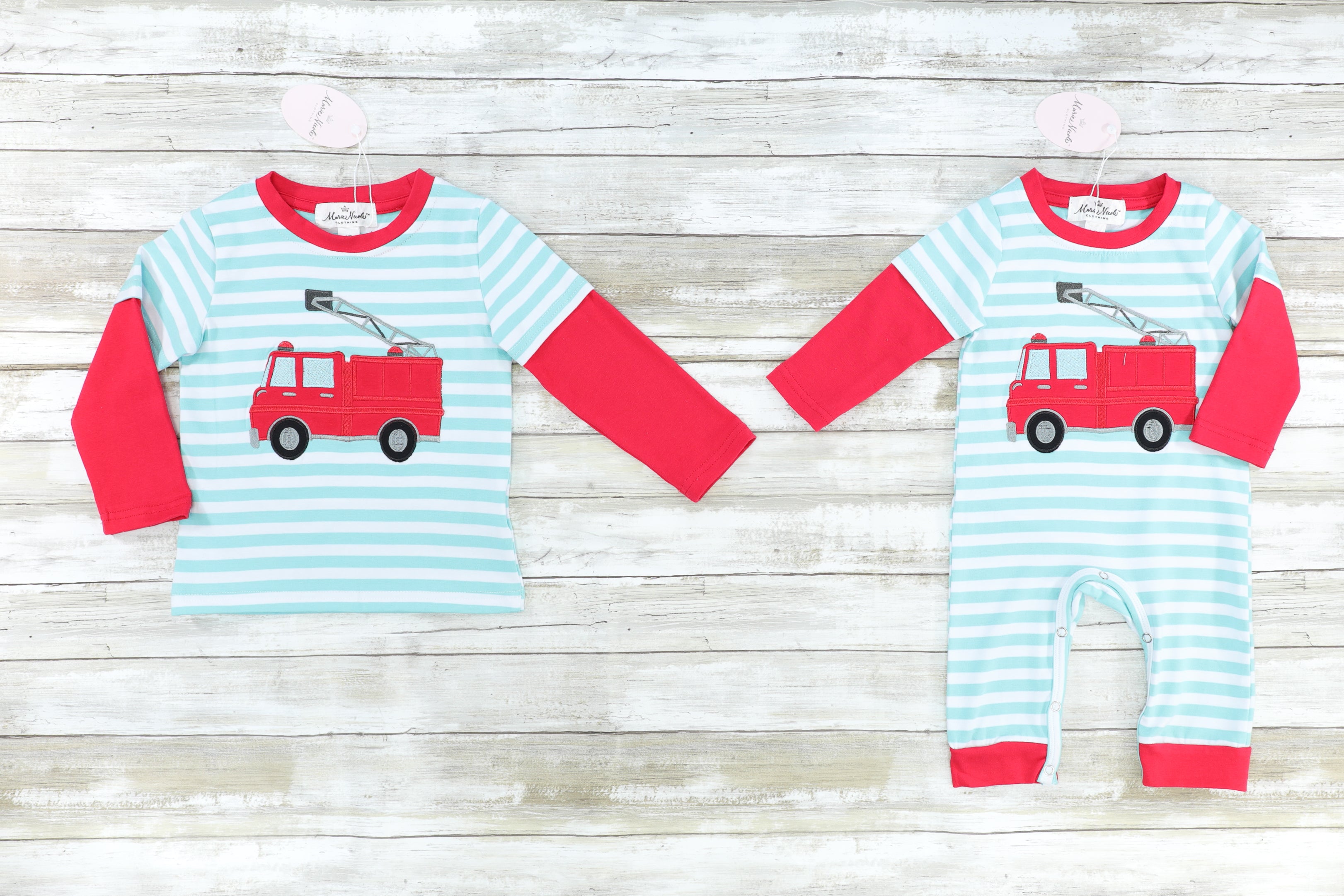 Home › Red & Turquoise Striped Firetruck Brother Set