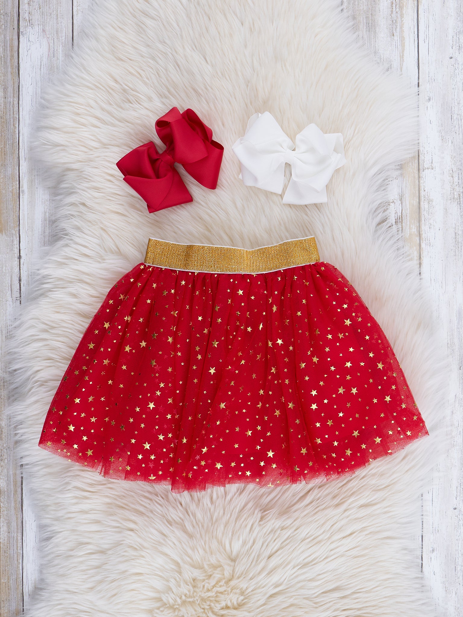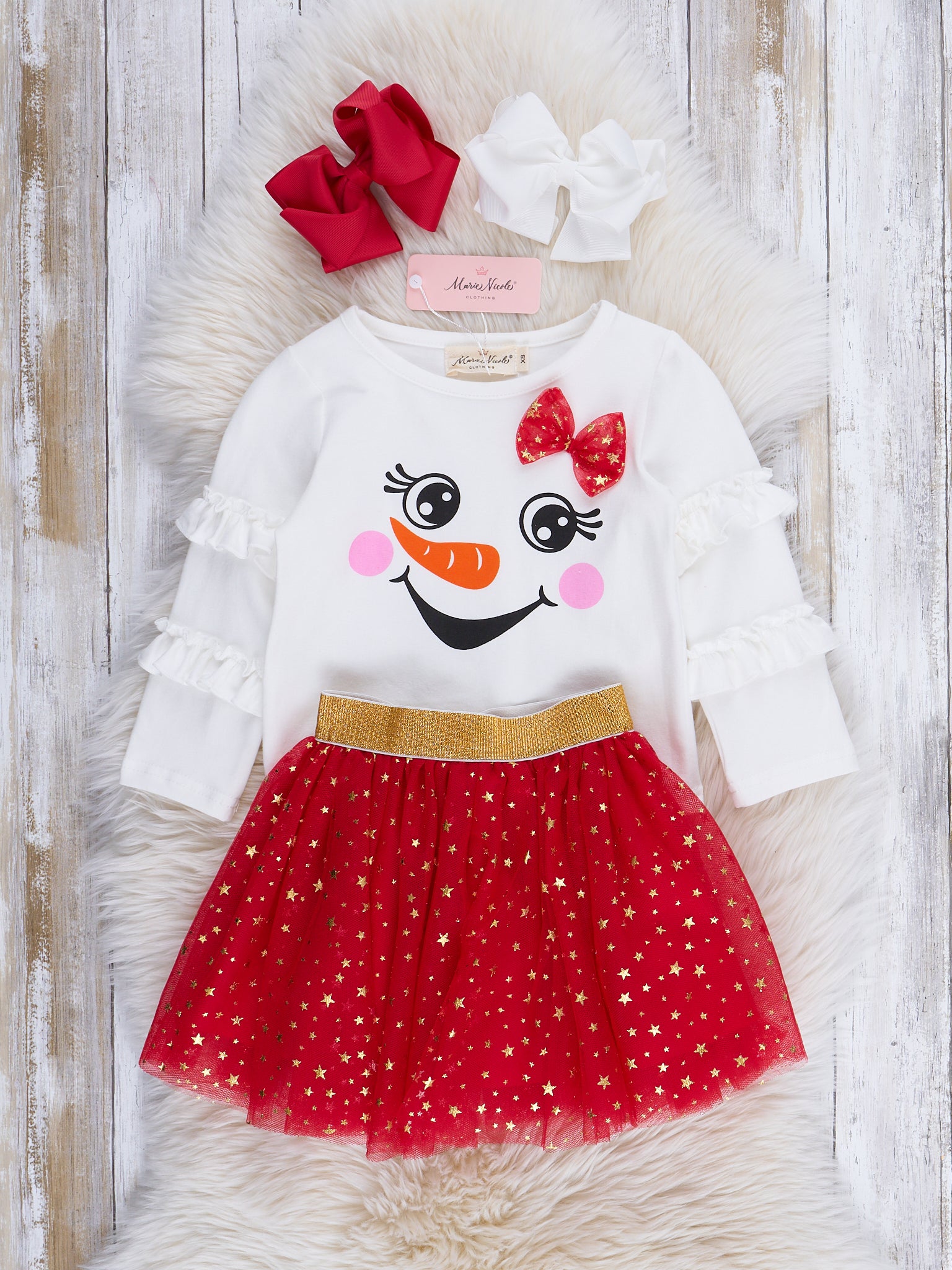 Red & White Snow Girl Sparkle Tulle Sister Set