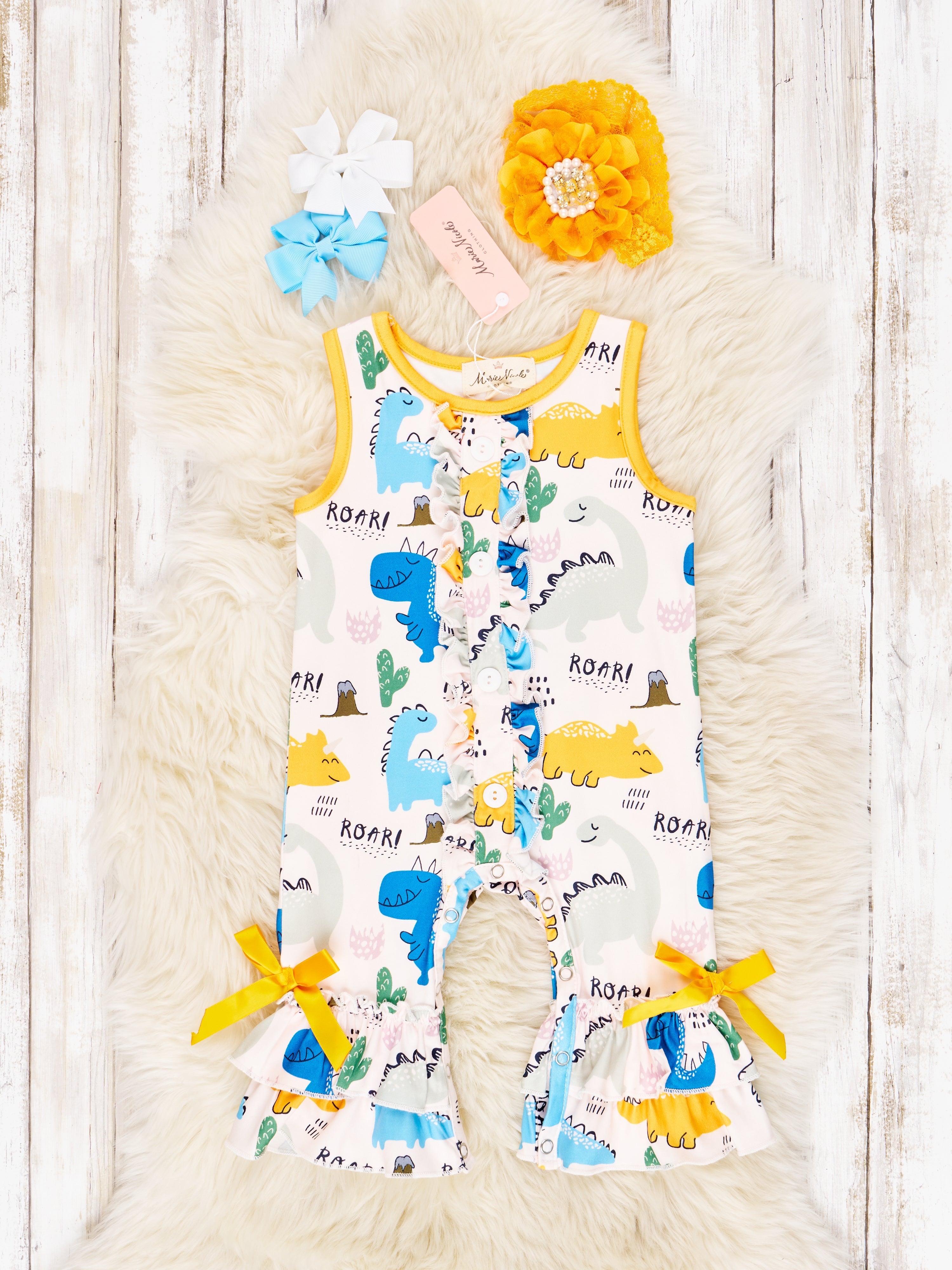"ROAR" Dino Ruffle Romper