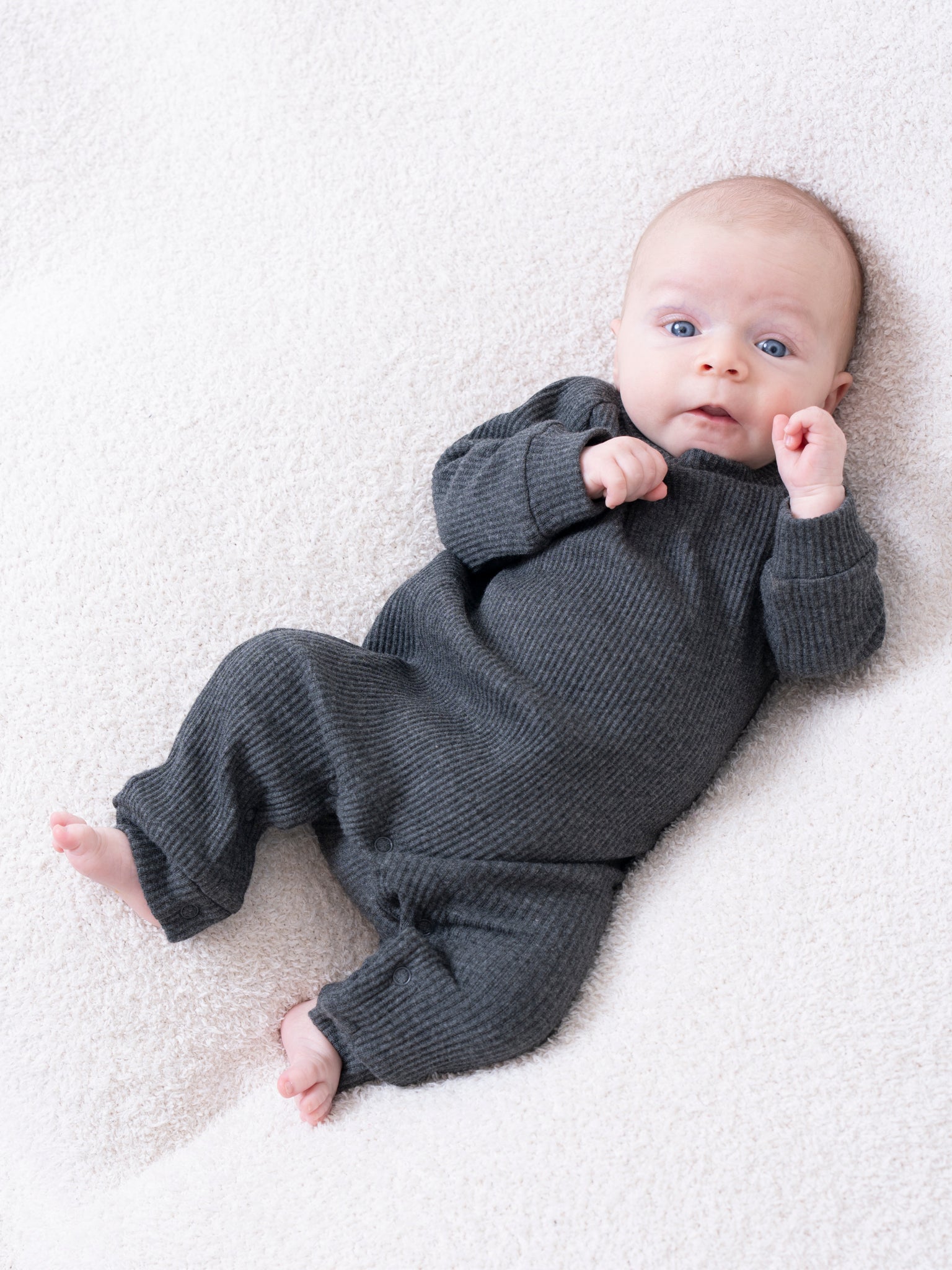 Ready for some fashion-forward fun? Our Ribbed Knit Crew Neck Romper is the perfect choice! Crafted from a buttery-soft ribbed fabric, this piece will have your little one looking cute and feeling comfy all in one. Rock on!