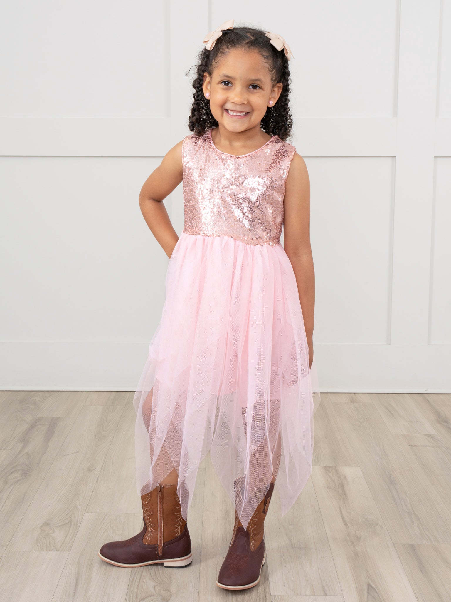 Rose Gold Tulle Sequin Dress