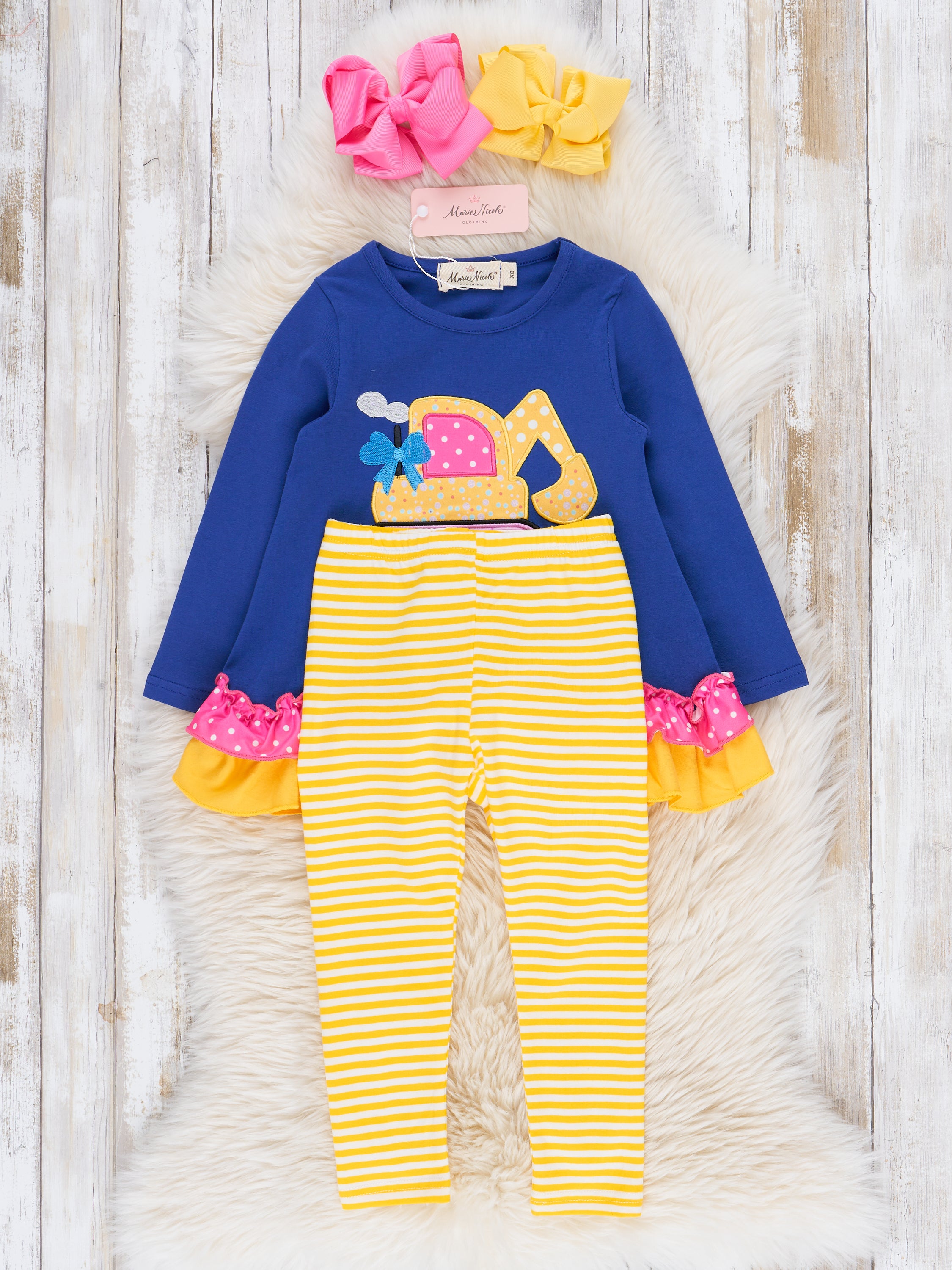 Royal Blue & Yellow Excavator Ruffle Outfit