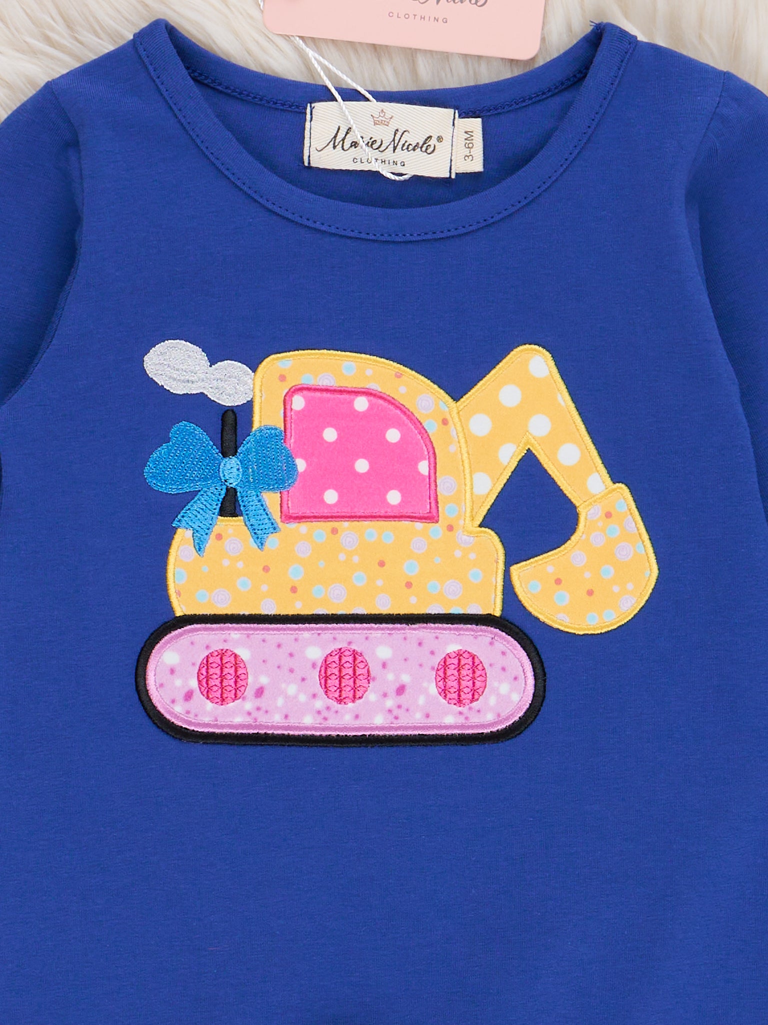 Royal Blue & Yellow Excavator Raglan Romper