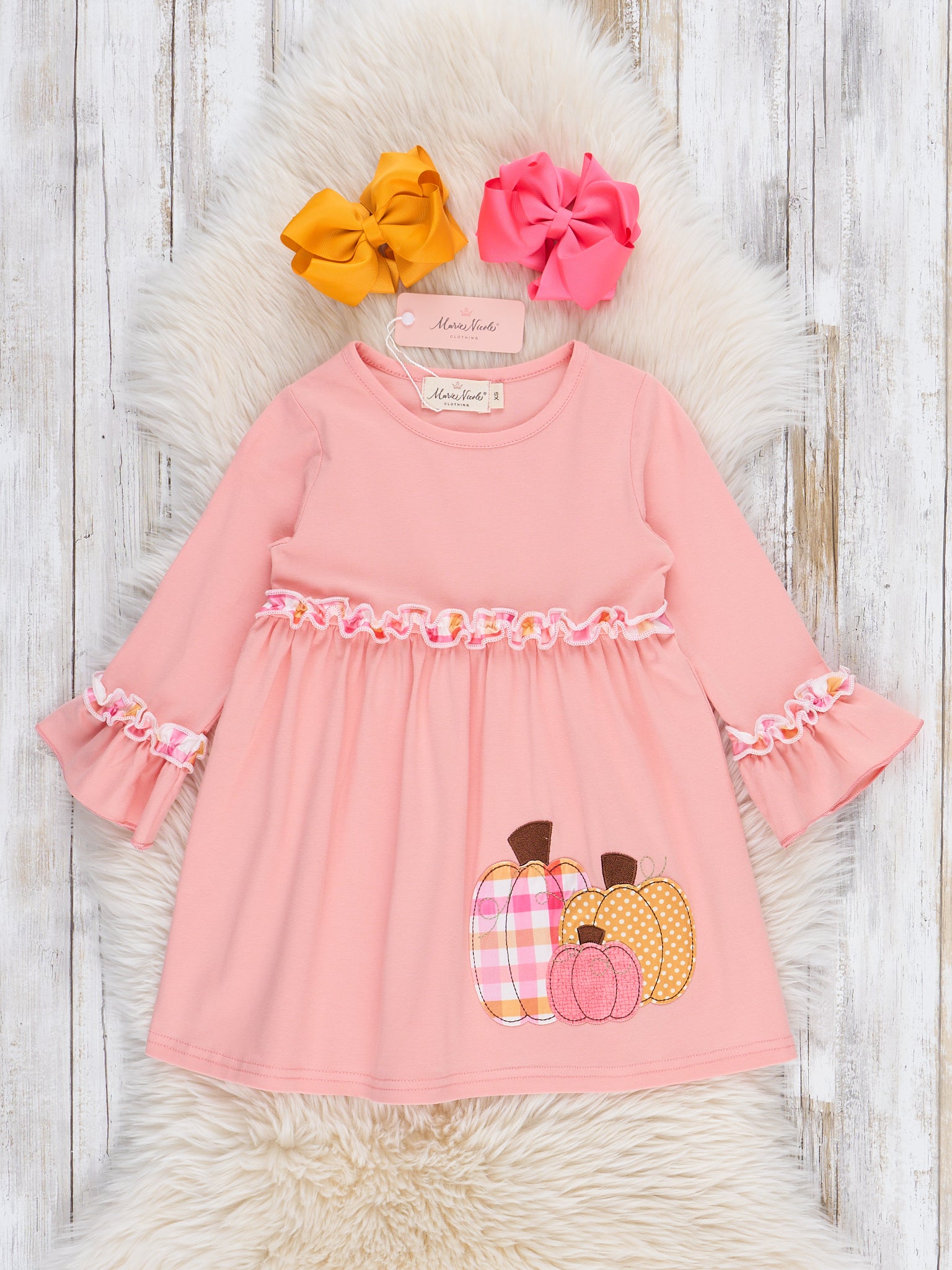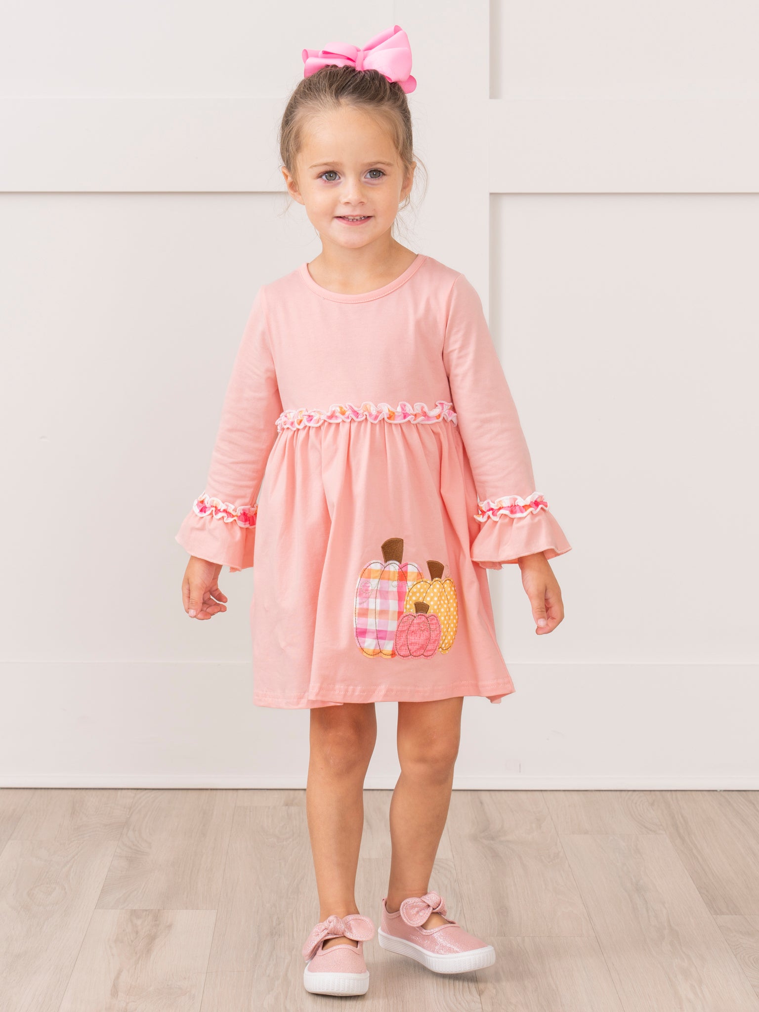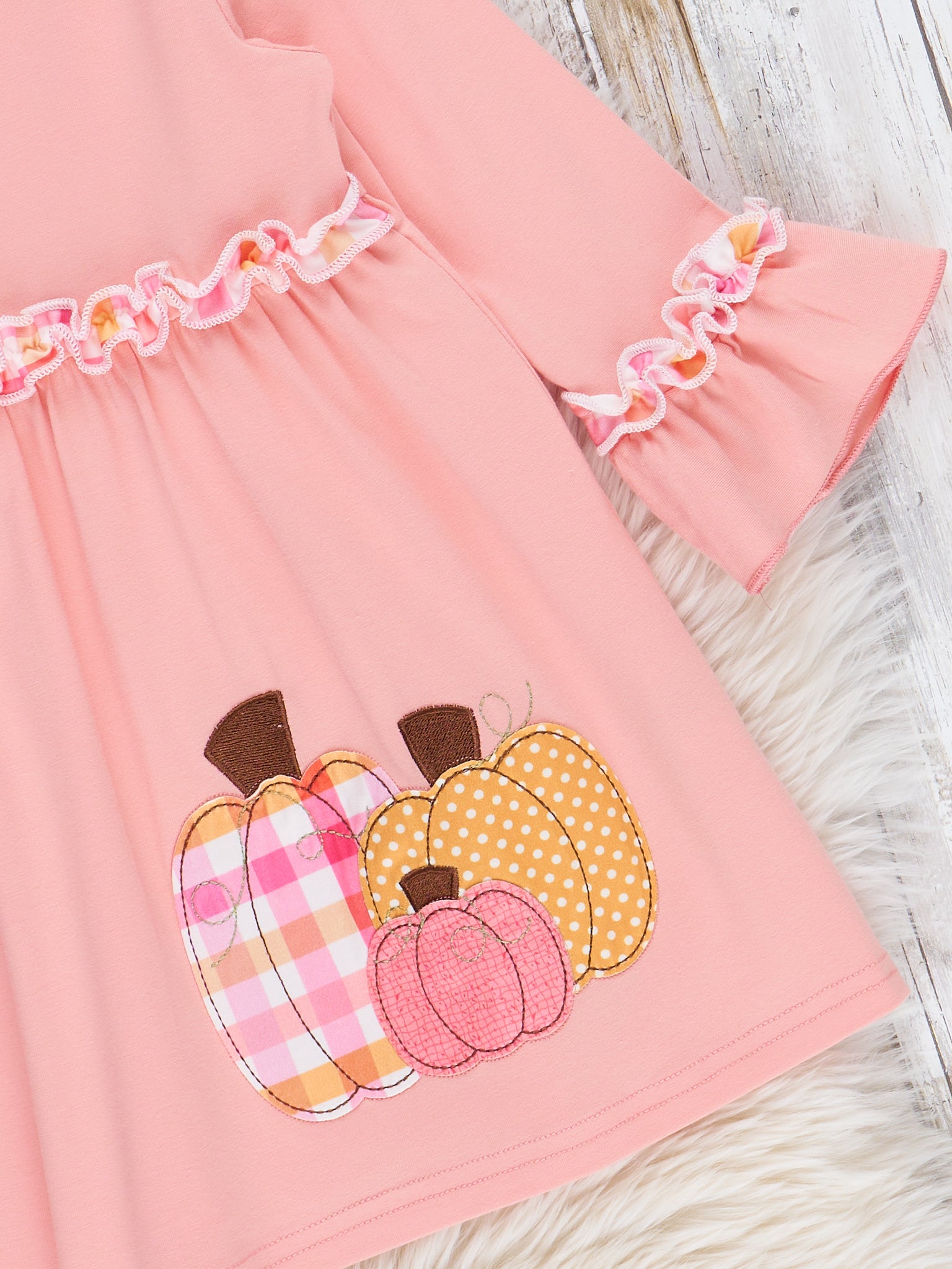 Salmon Pumpkin Plaid Ruffle Dress