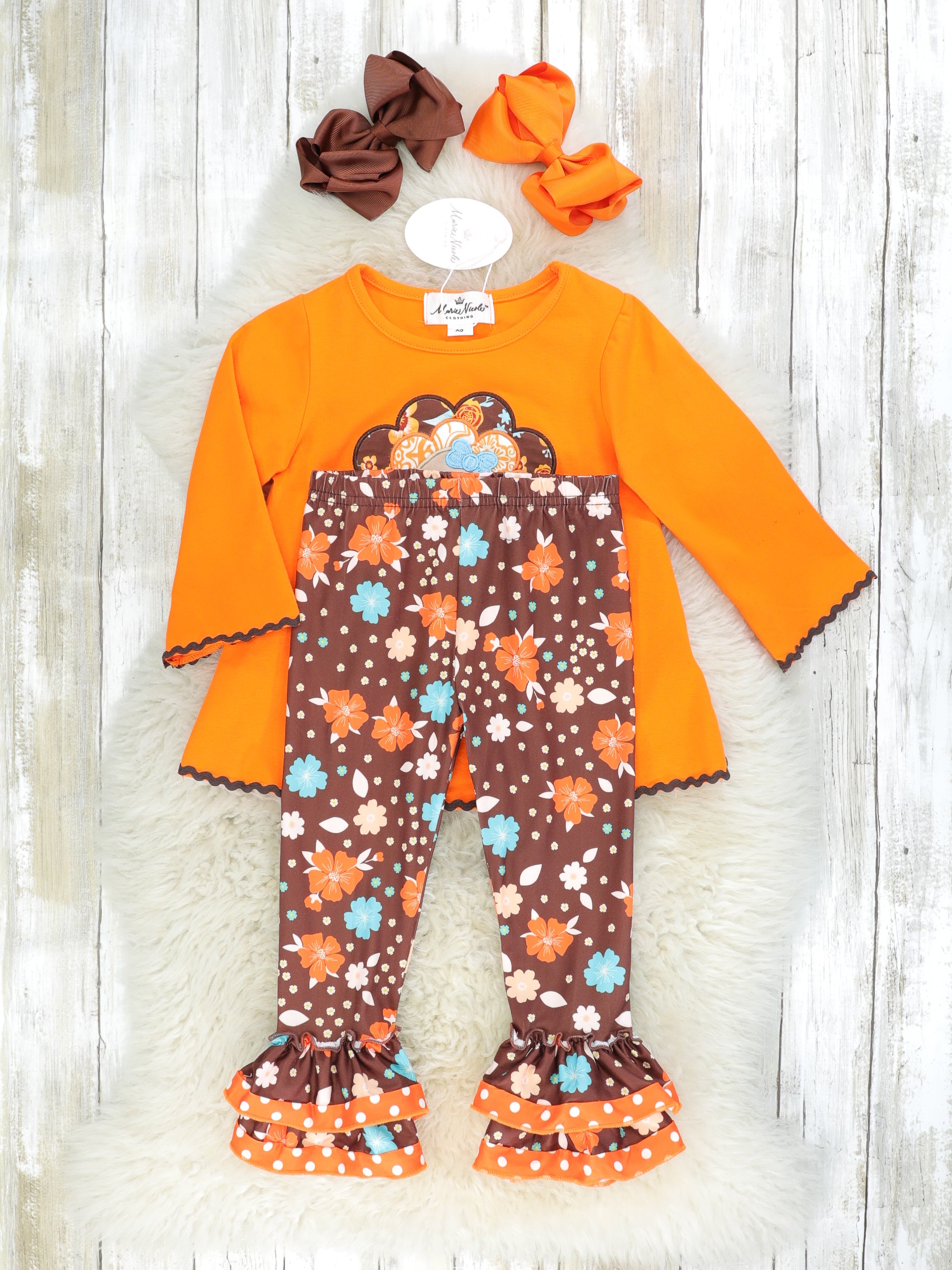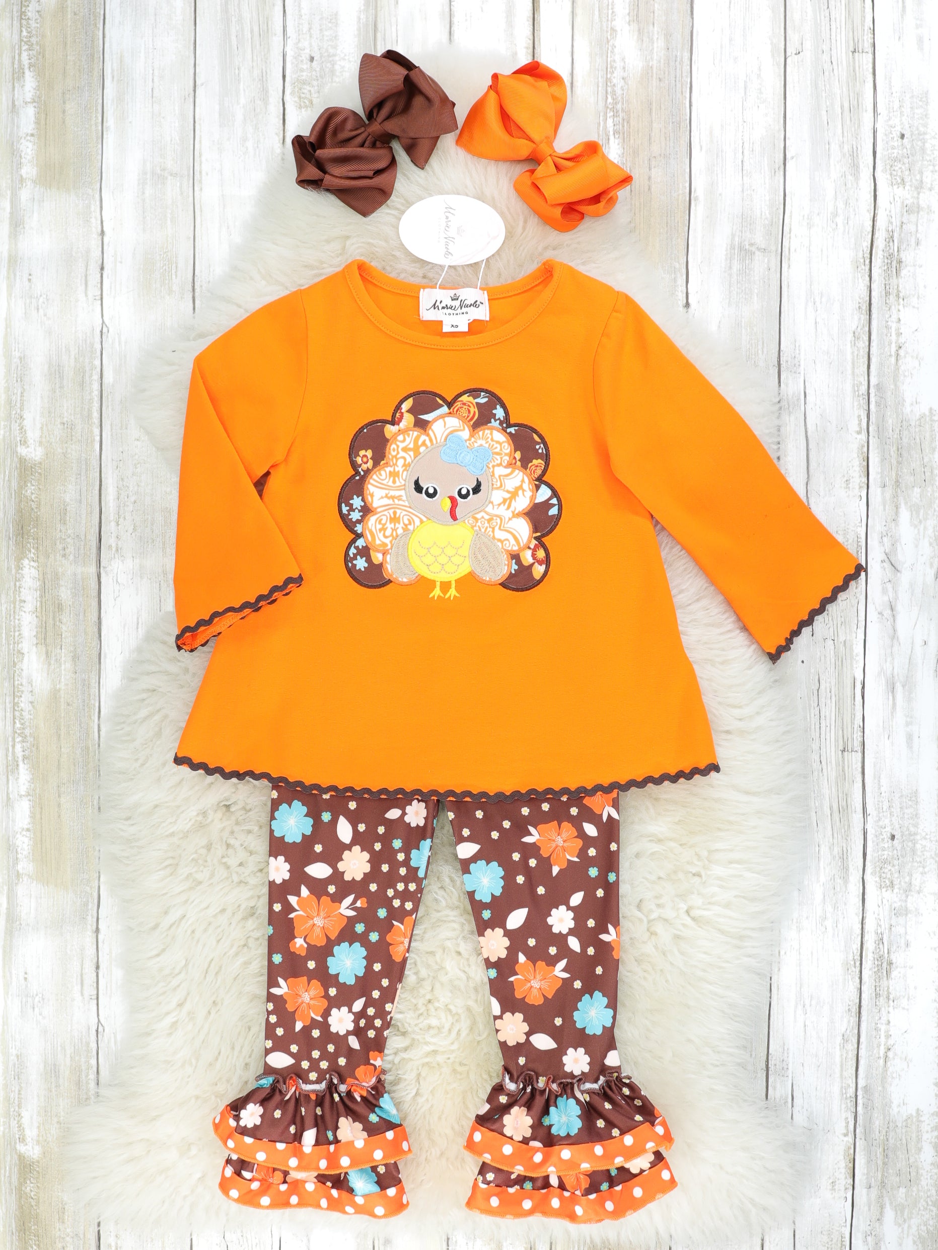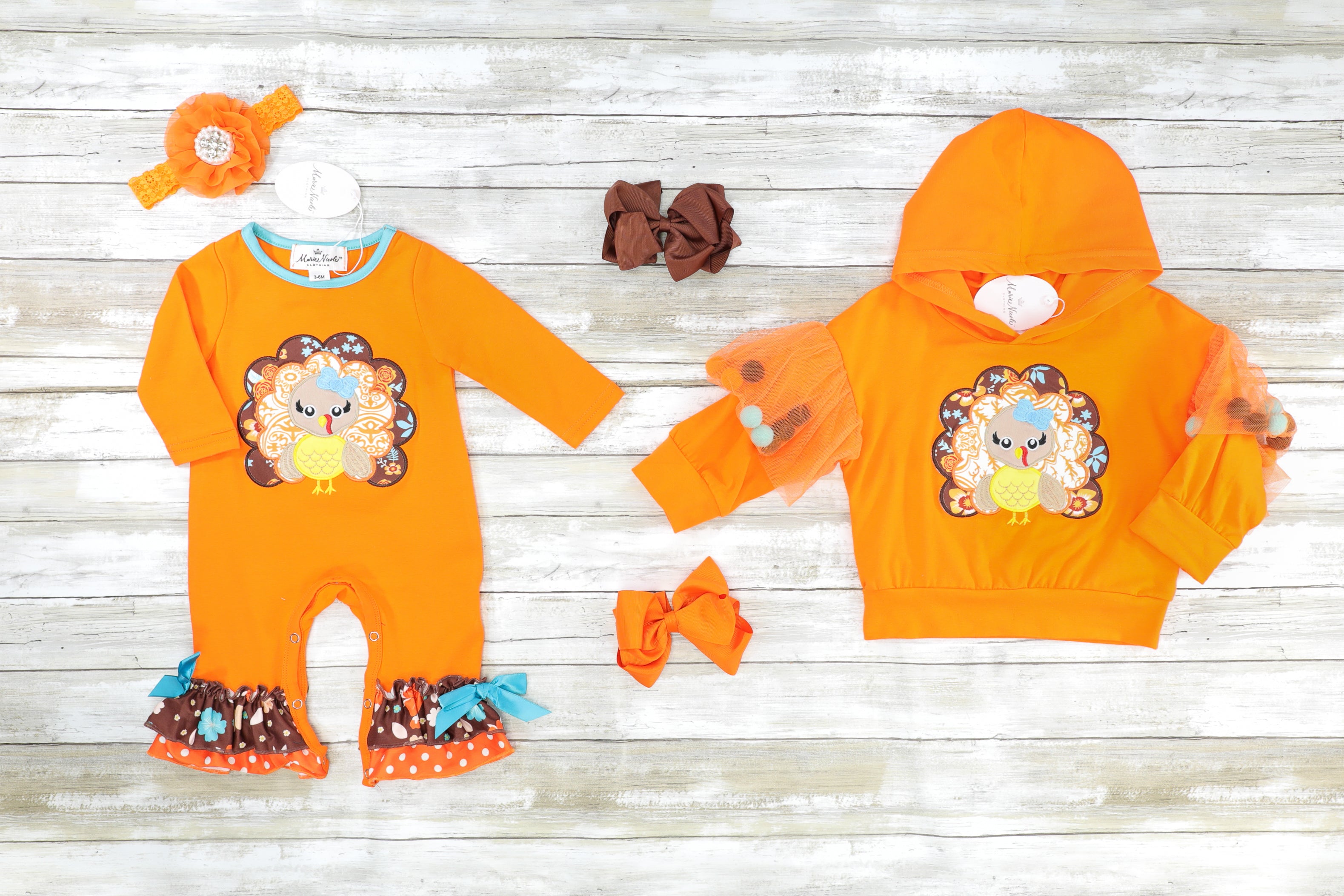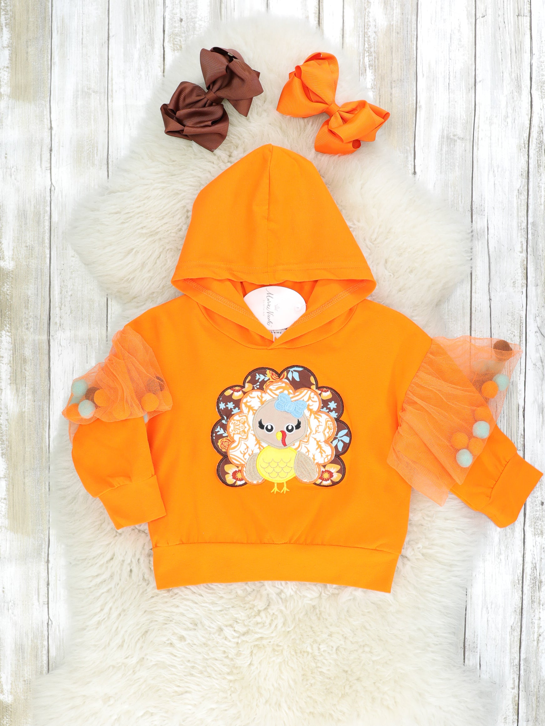 Sassy Floral Turkey Tulle Pom Pom Hoodie