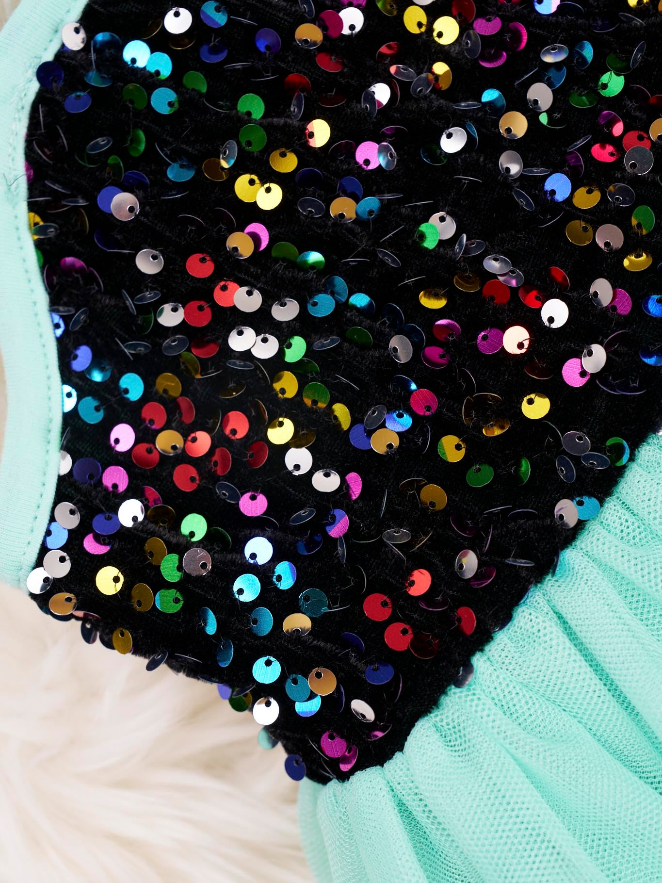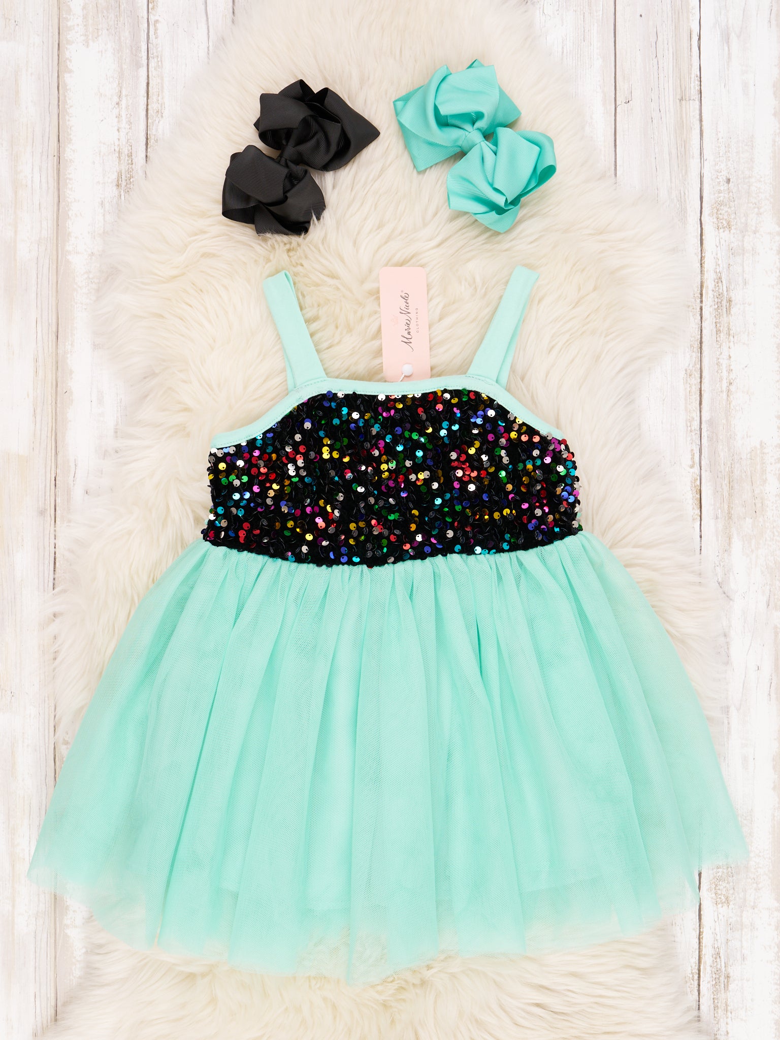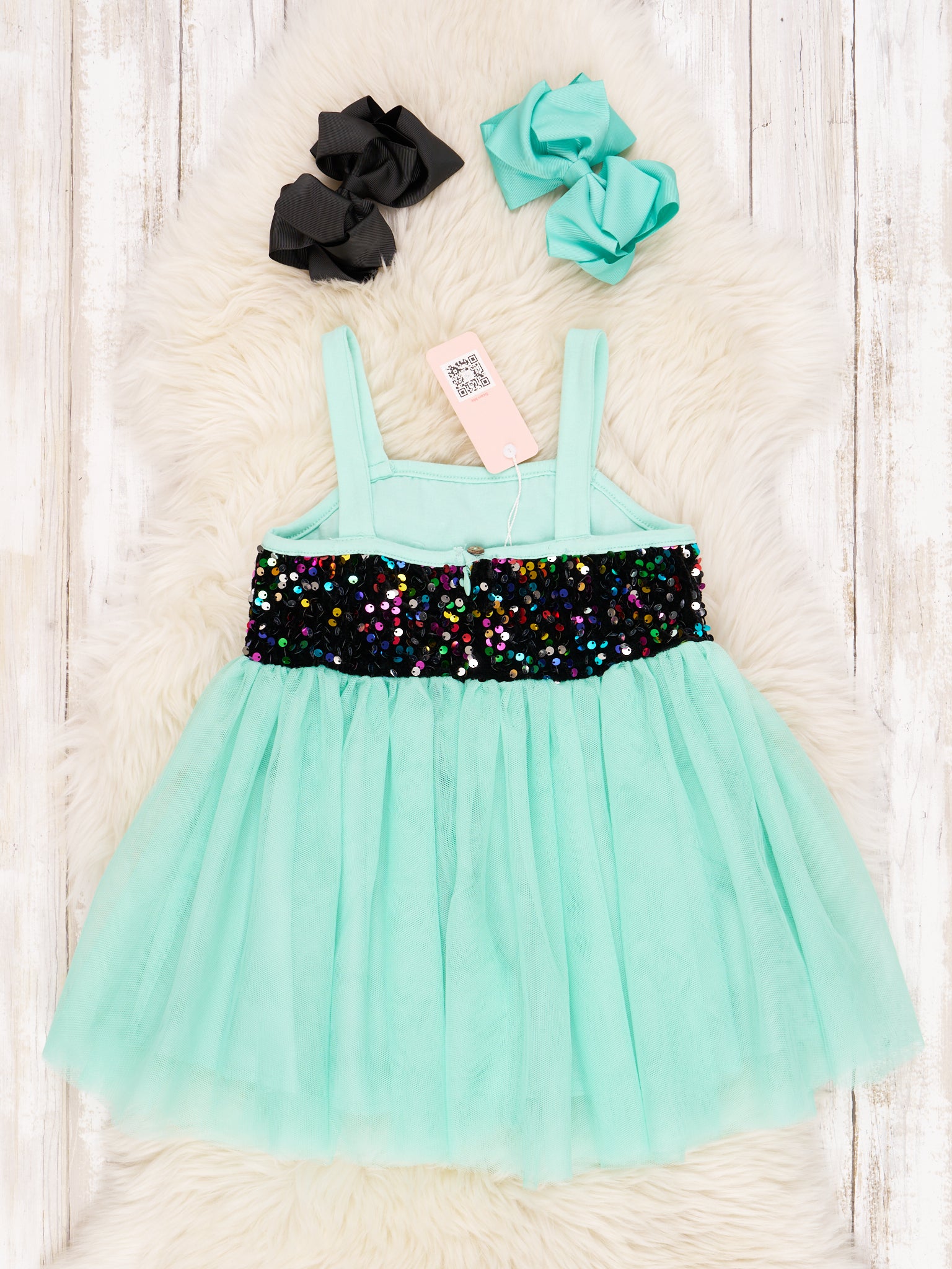 Black & Mint Sequin Tulle Tank Dress