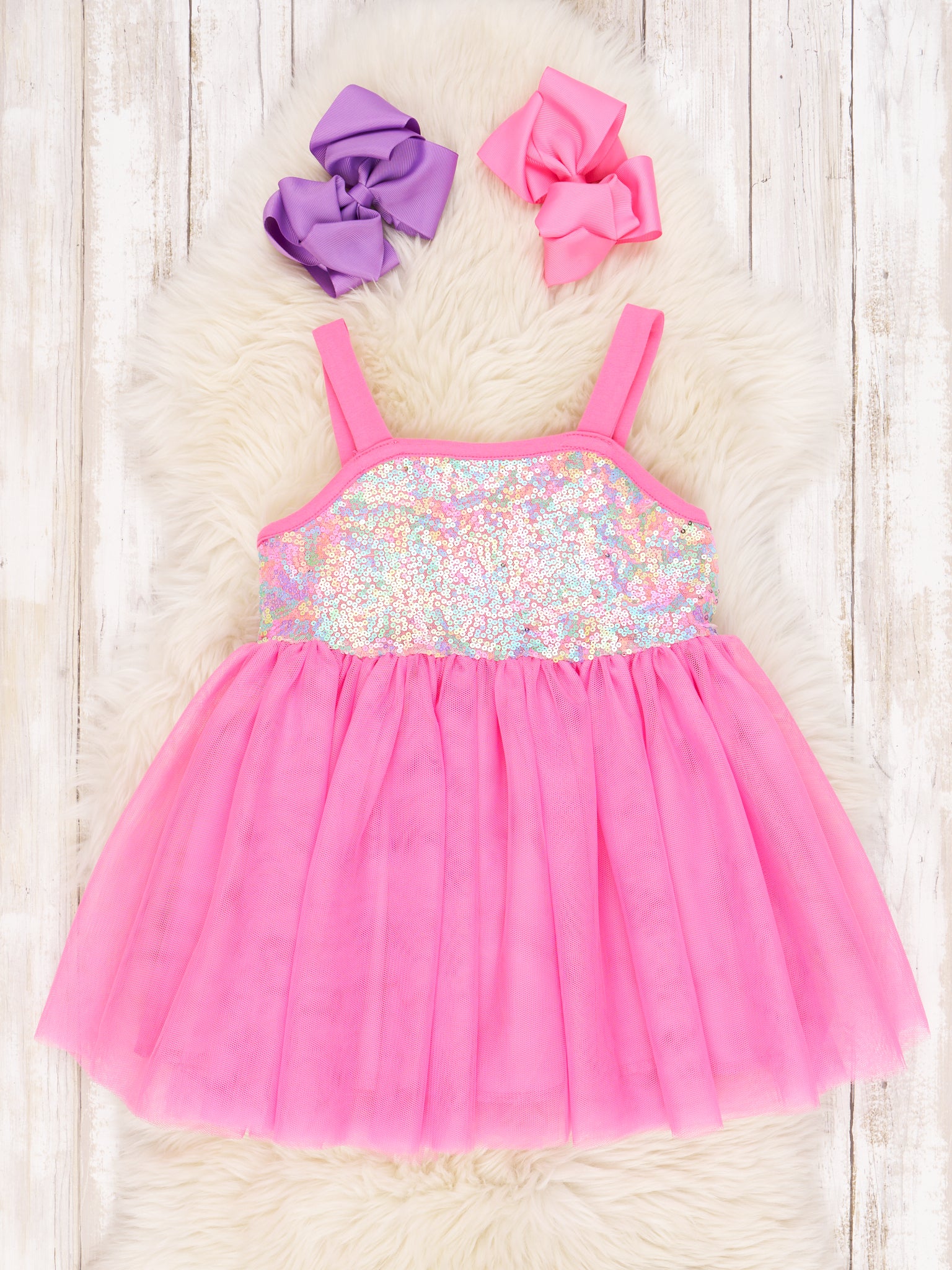 Pink Sequin Tulle Tank Dress