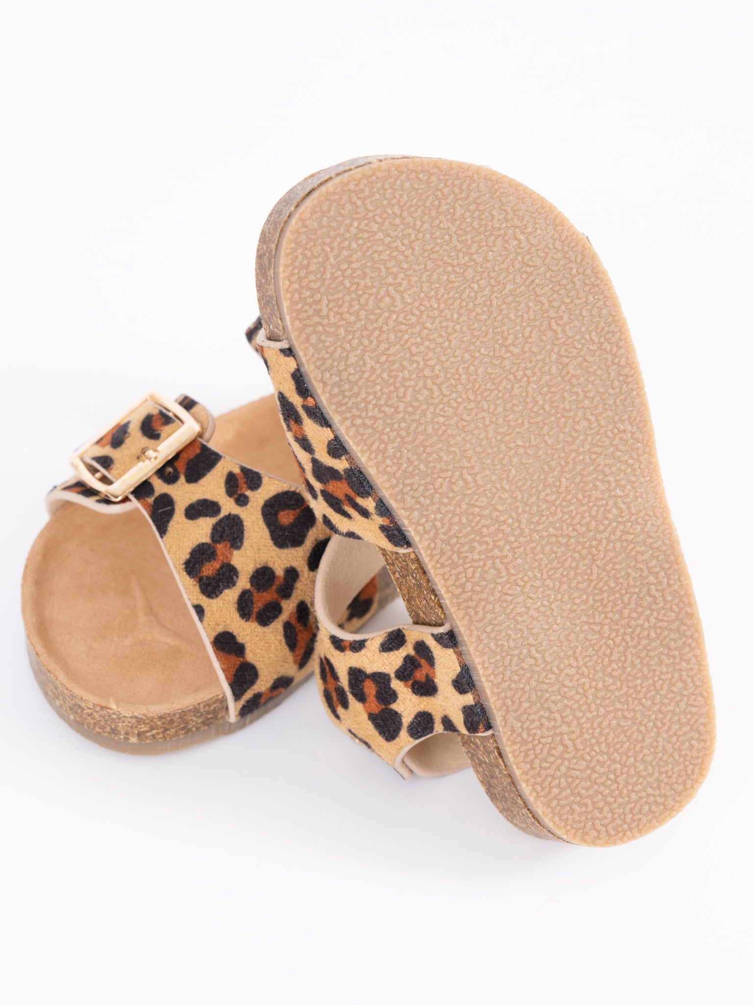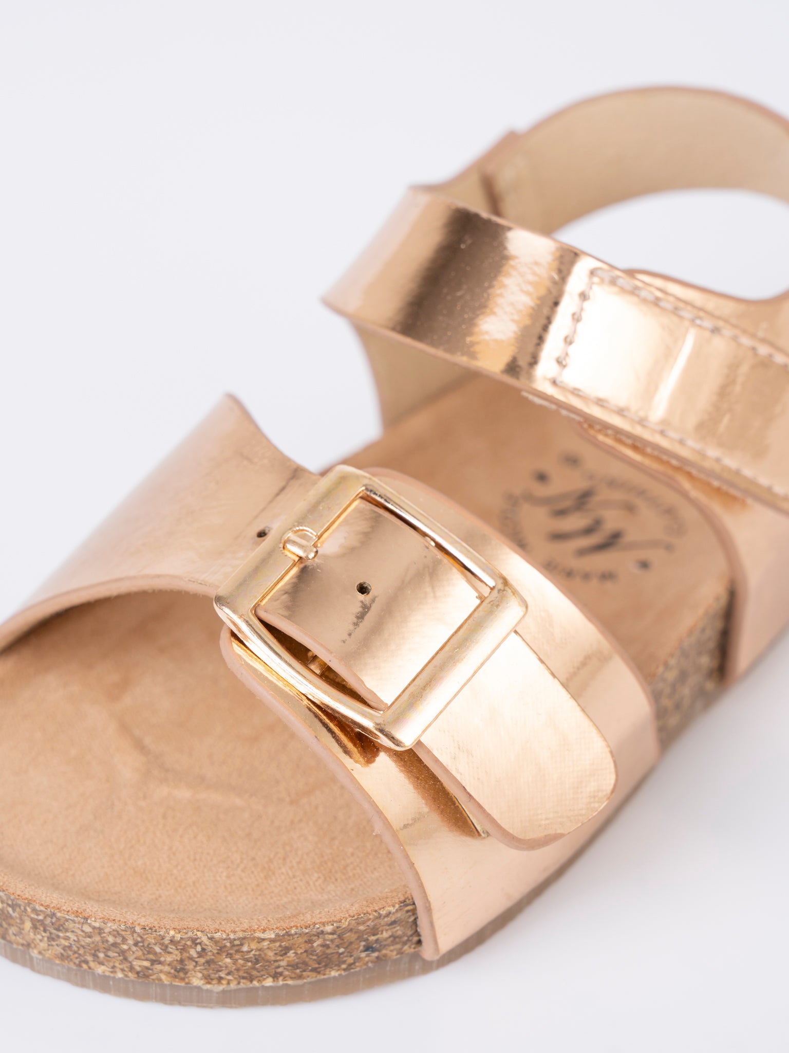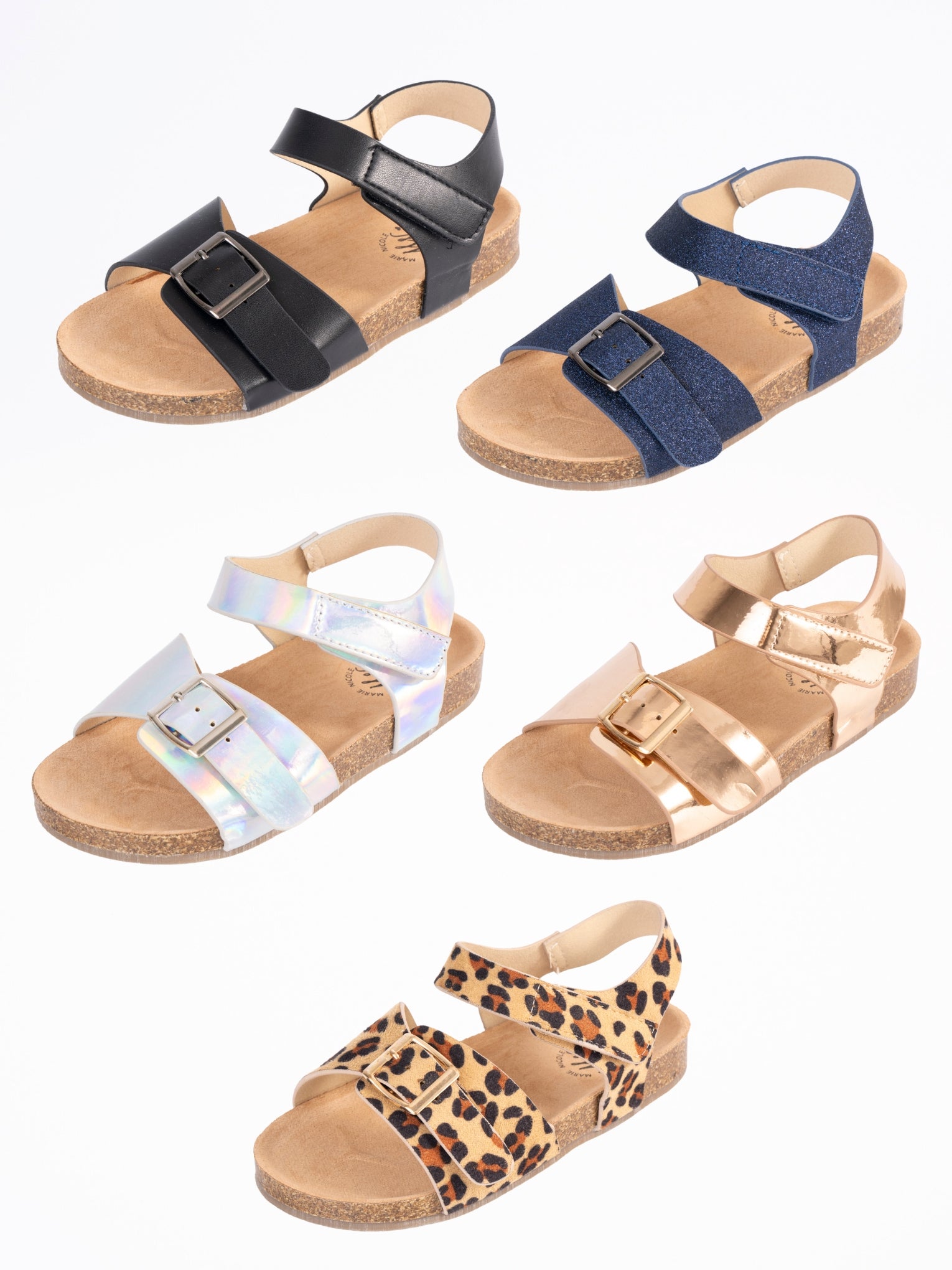 Step into style with these Buckle Front Sandals! Their unique buckle front strap detail and velcro ankle strap provide a perfect fit while their comfortable cork sole keeps your little one's feet happy all day long. Perfect for any fashion-forward girl looking to make a statement.