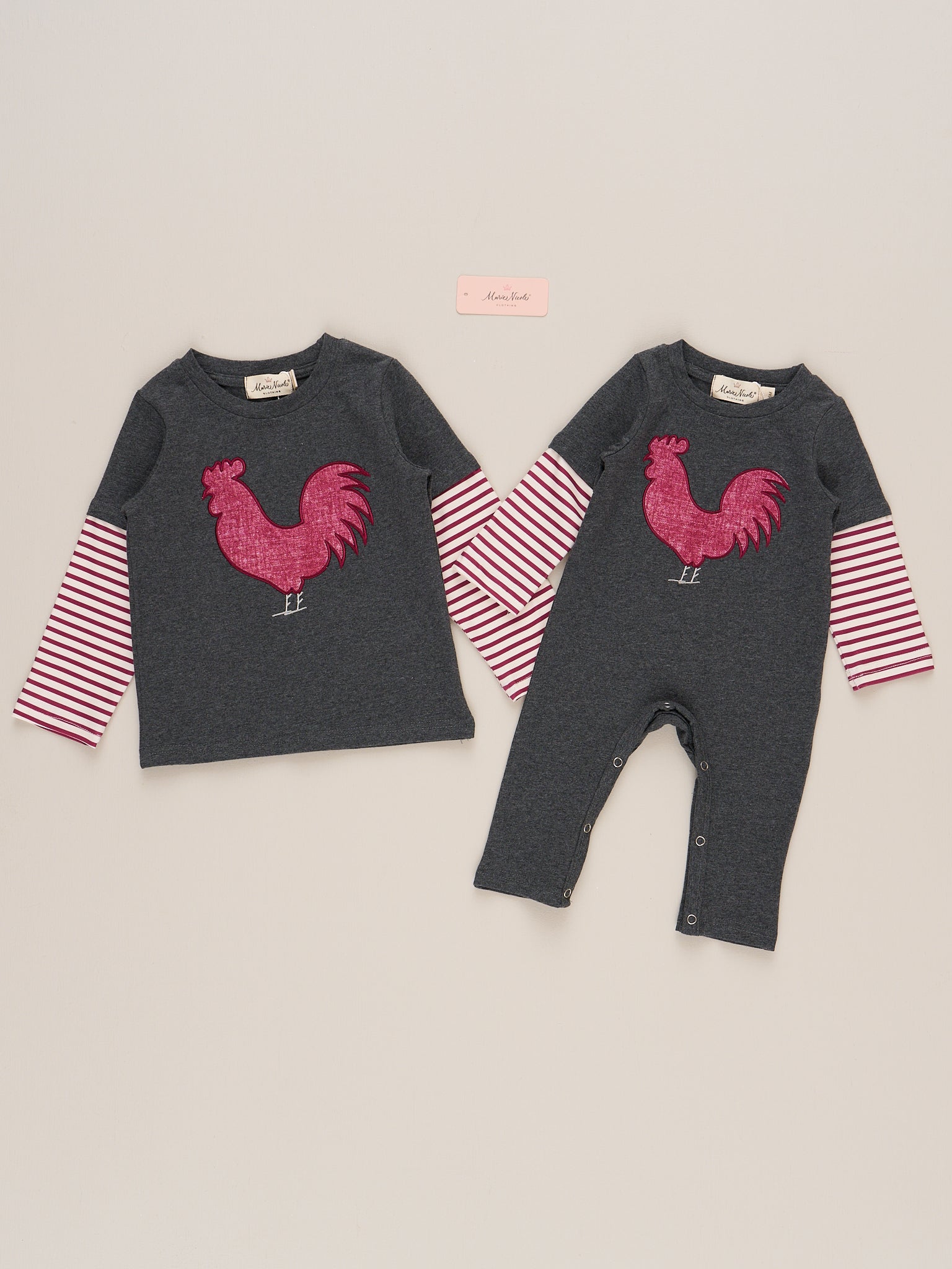 The Striped Little Rooster Romper is a charming and playful choice that’s perfect for everyday adventures and farmyard fun. Featuring bold stripes and an adorable rooster motif, this romper from Marie Nicole Clothing blends rustic charm with cozy comfort. Made from soft, breathable fabric, it’s ideal for playtime, family outings, and picture-perfect moments.