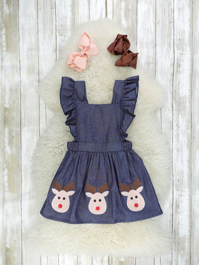 With this ravishing reindeer set, it is love at FURst sight! This outfit features a white top & a chambray overall dress with flutter sleeves, an elastic waistband, & reindeer appliqués.