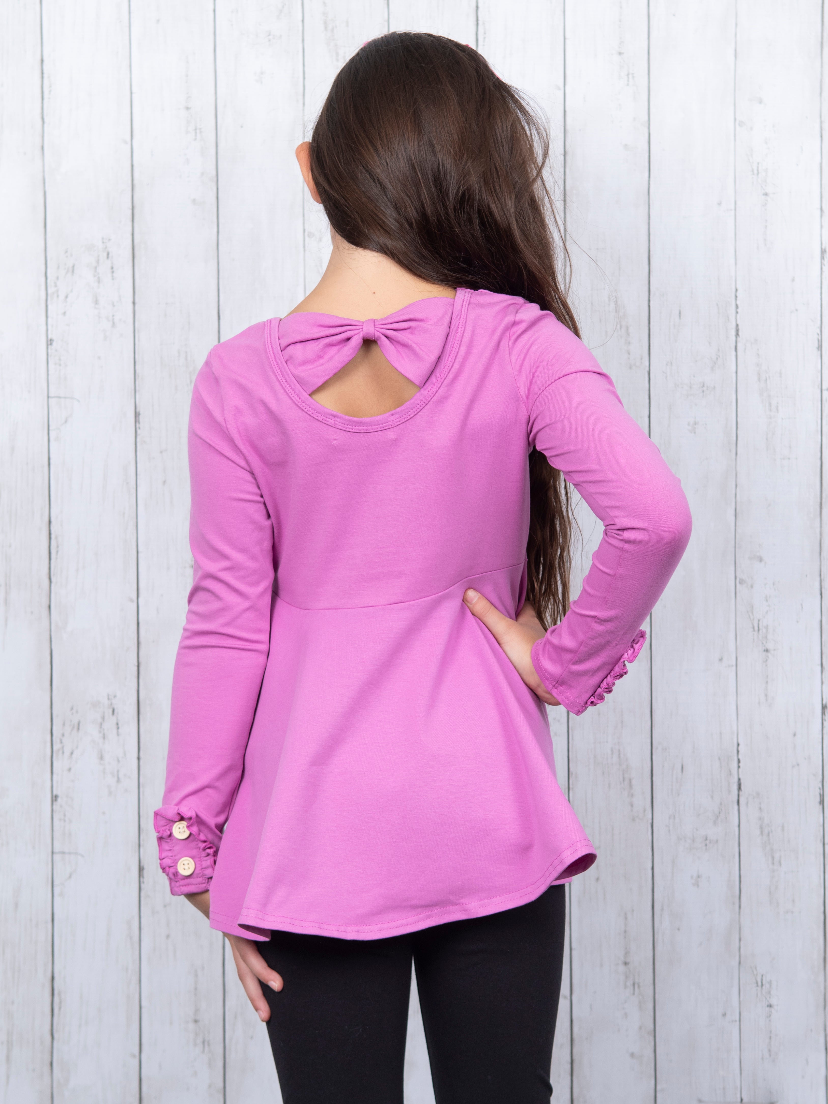 Cotton Bow Back Button Ruffle Sleeve Peplum Top - Light Colors