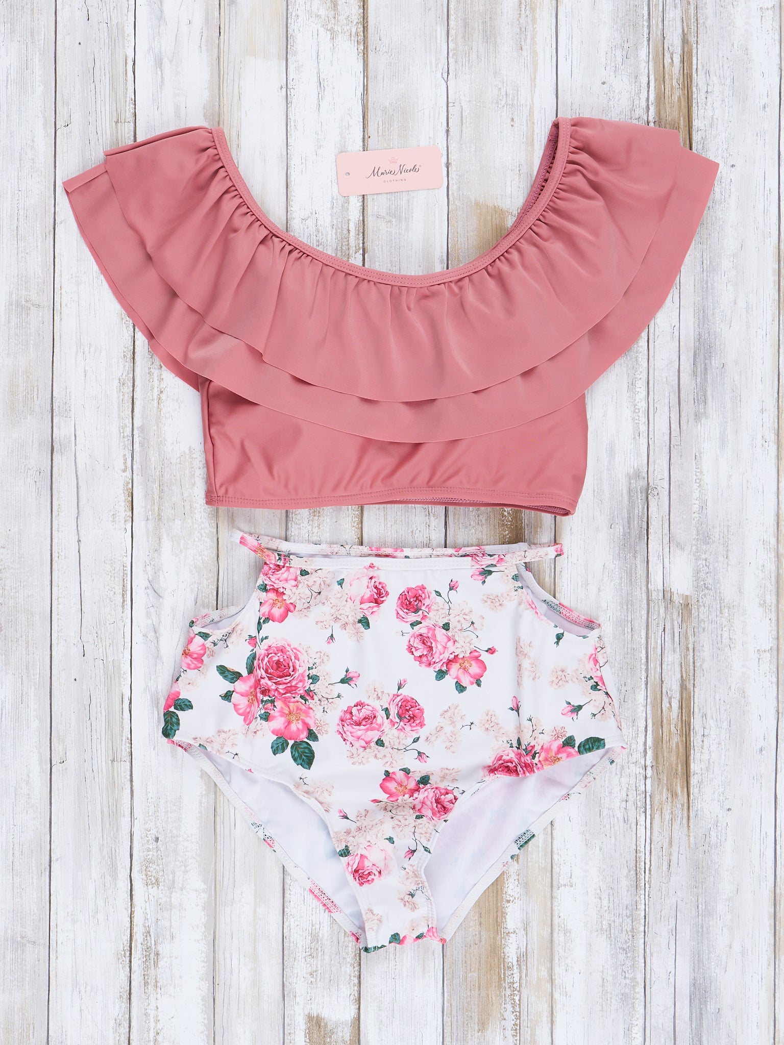 Mom & Me Mauve Rose Ruffle Swimsuit