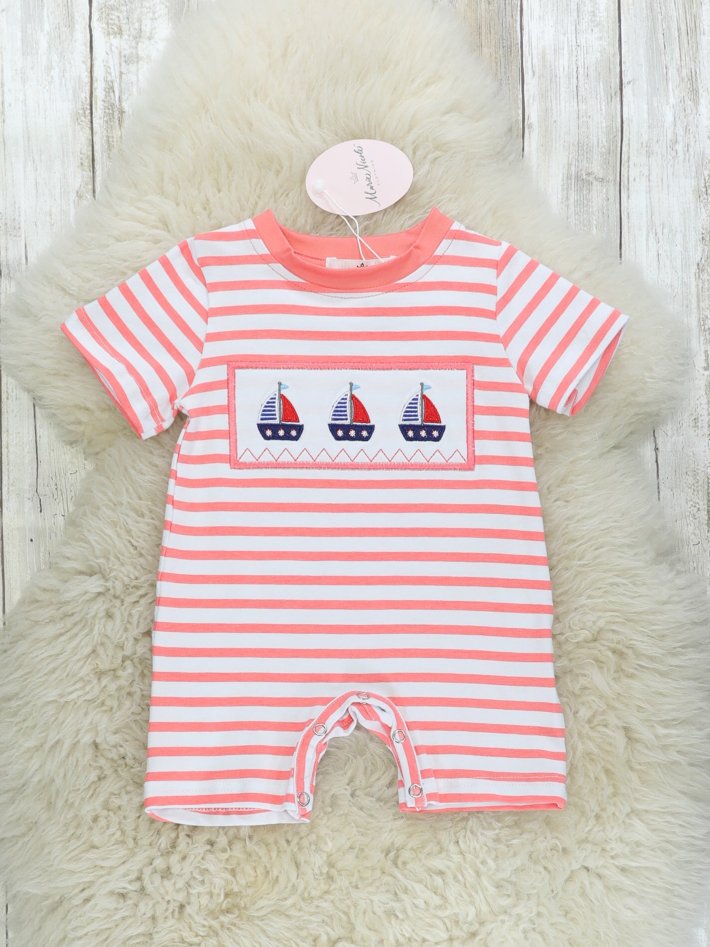 Coral Sailboat Smocked Romper