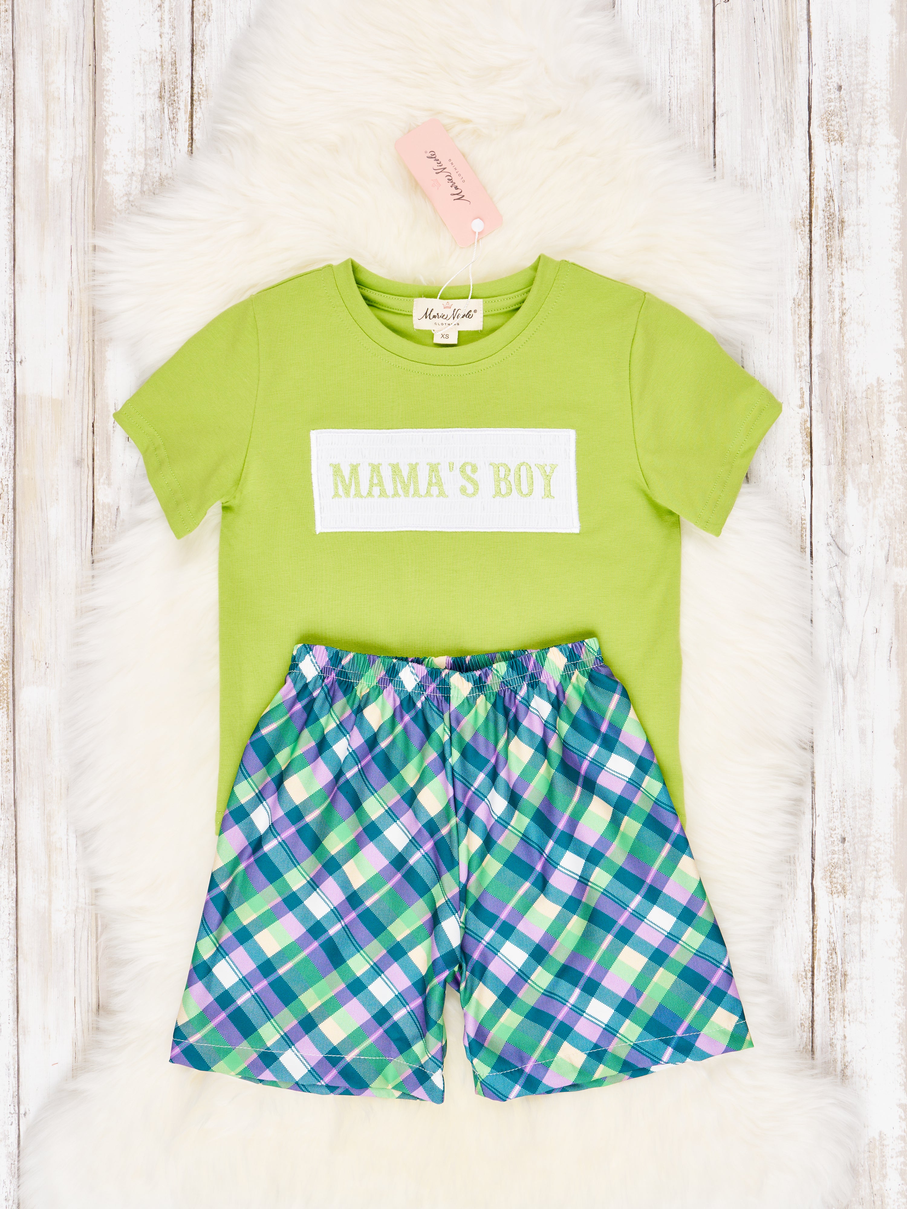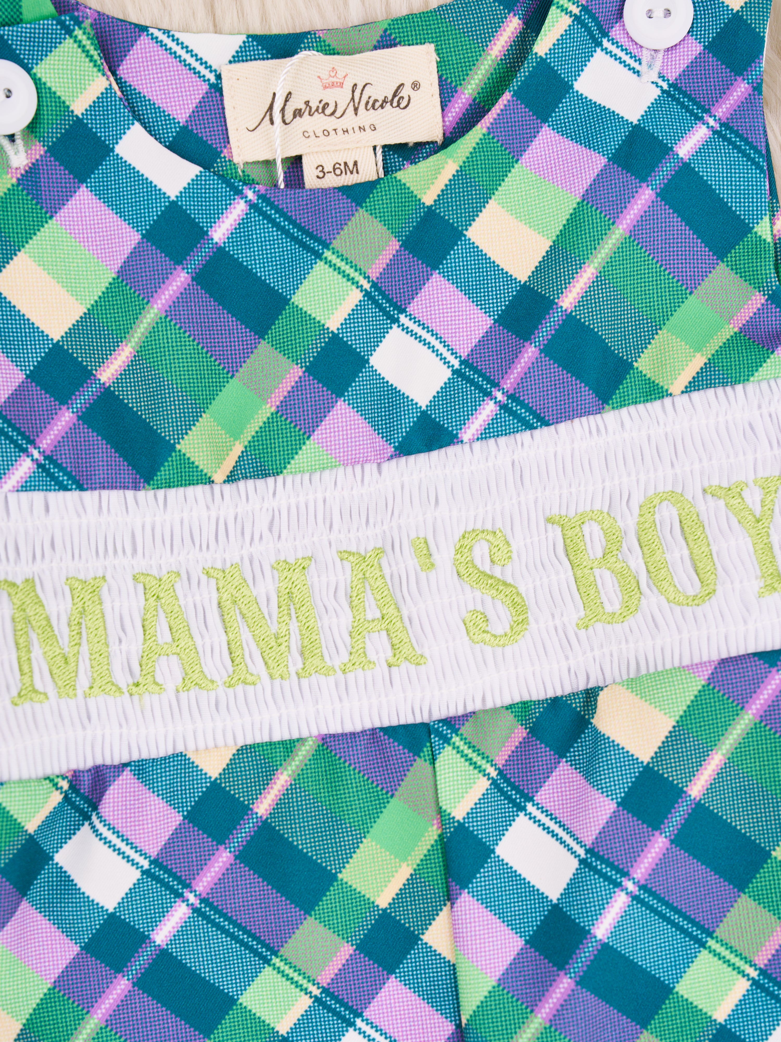 Home › Smocked Plaid "Mama's Boy" Brother Set
