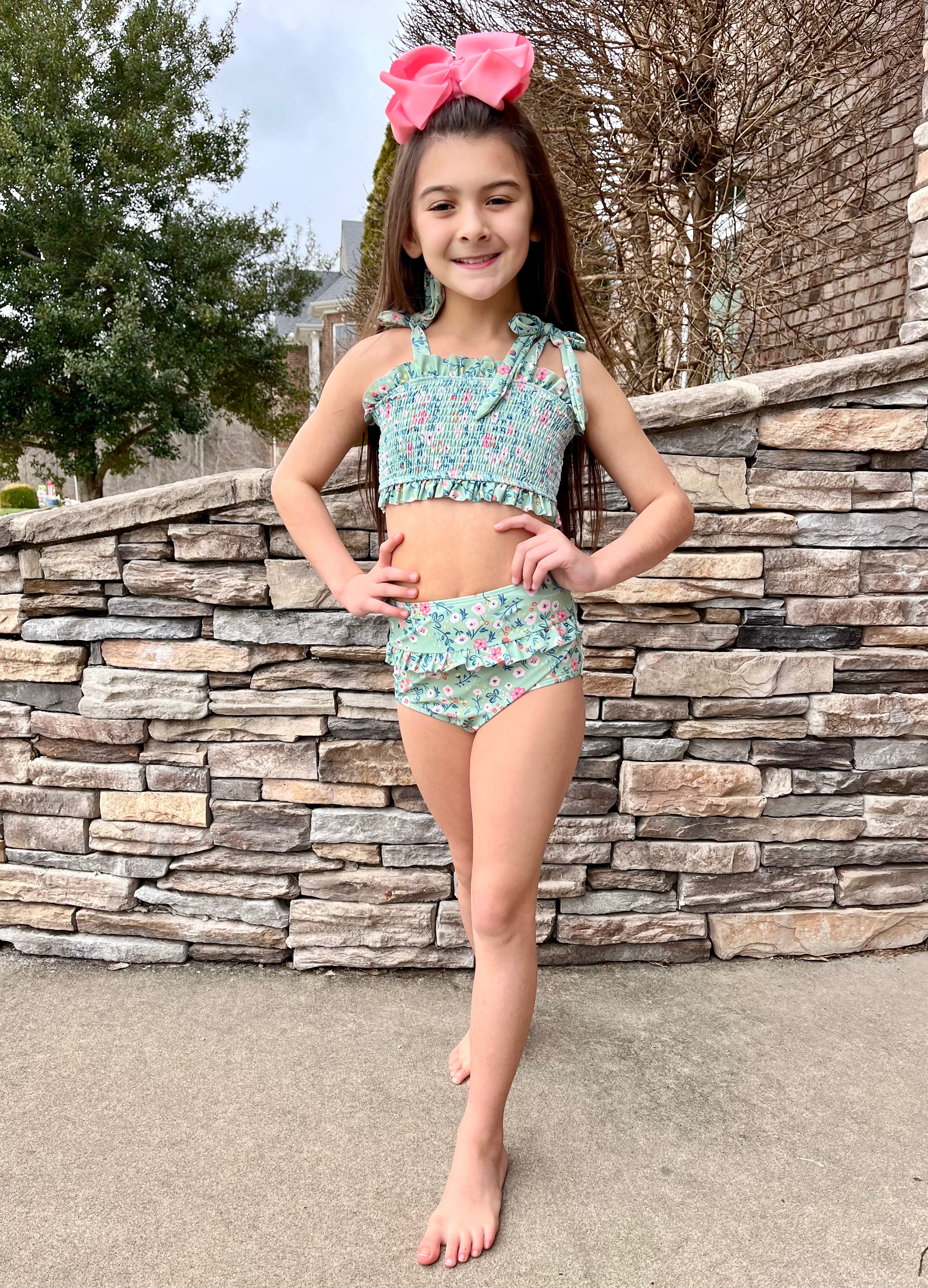 Sage Smocked Poppy Tie 2-Piece Swimsuit