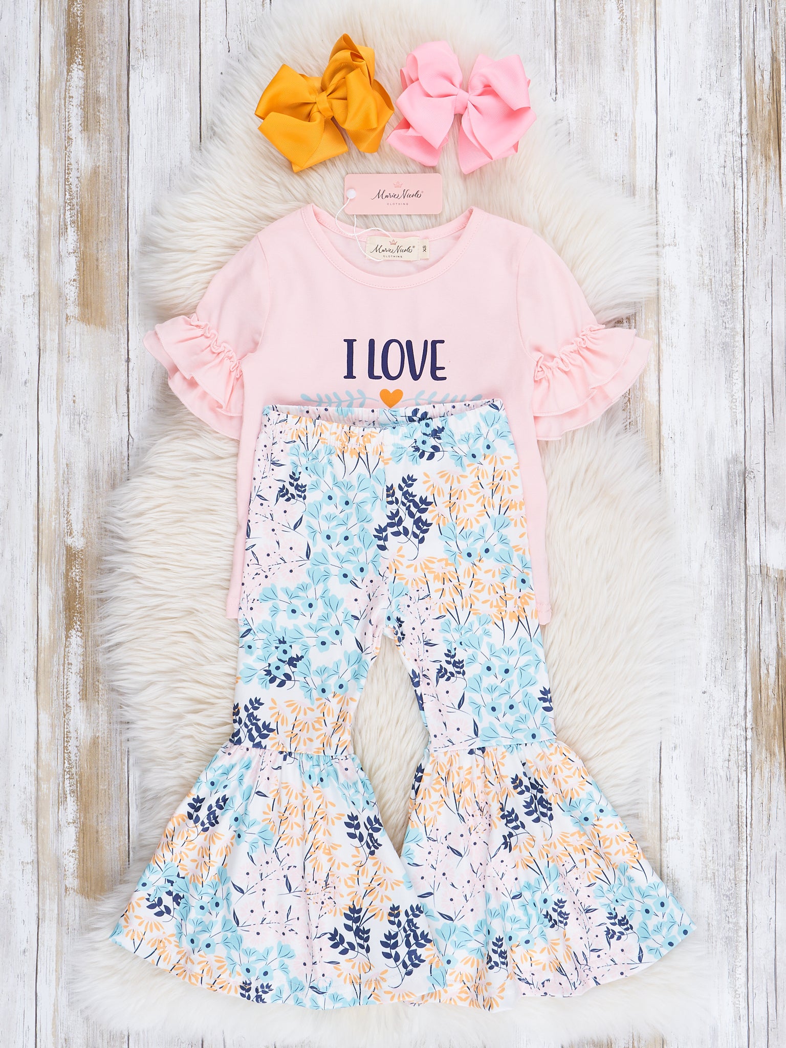 Soft Pink "I Love Mom" Bell Bottom Outfit