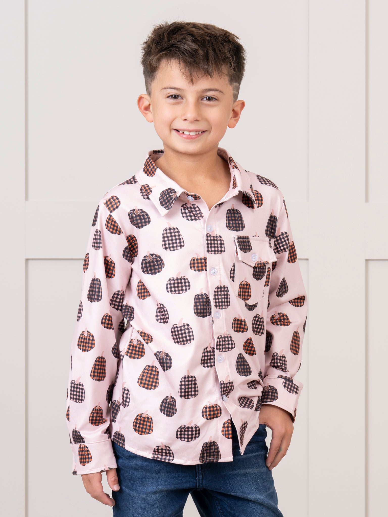 Soft Pink Plaid Pumpkins Button Up Shirt