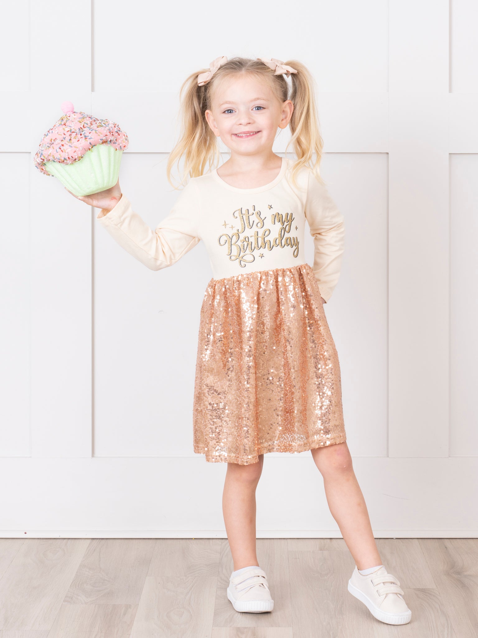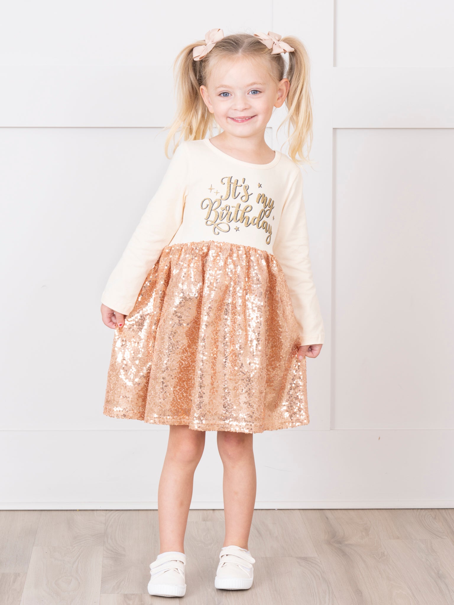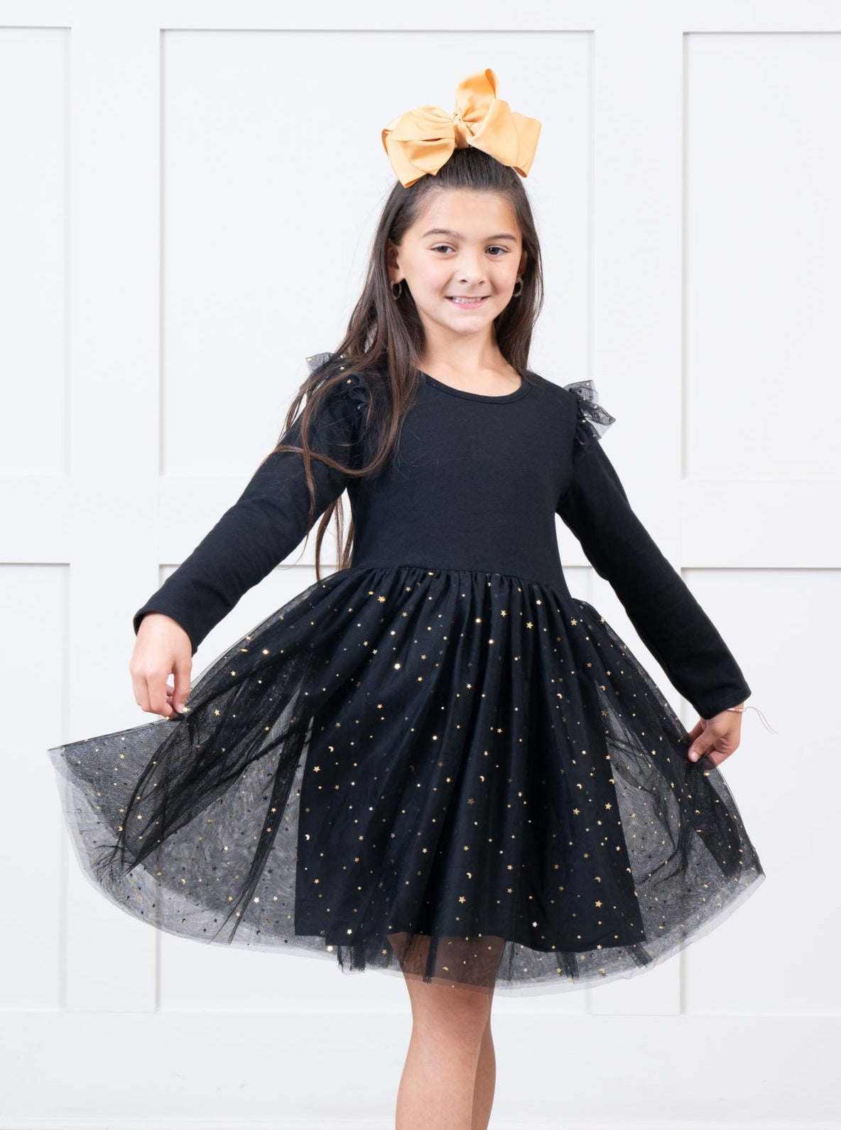 Gold Sparkle Party Long Sleeve Tulle Dress